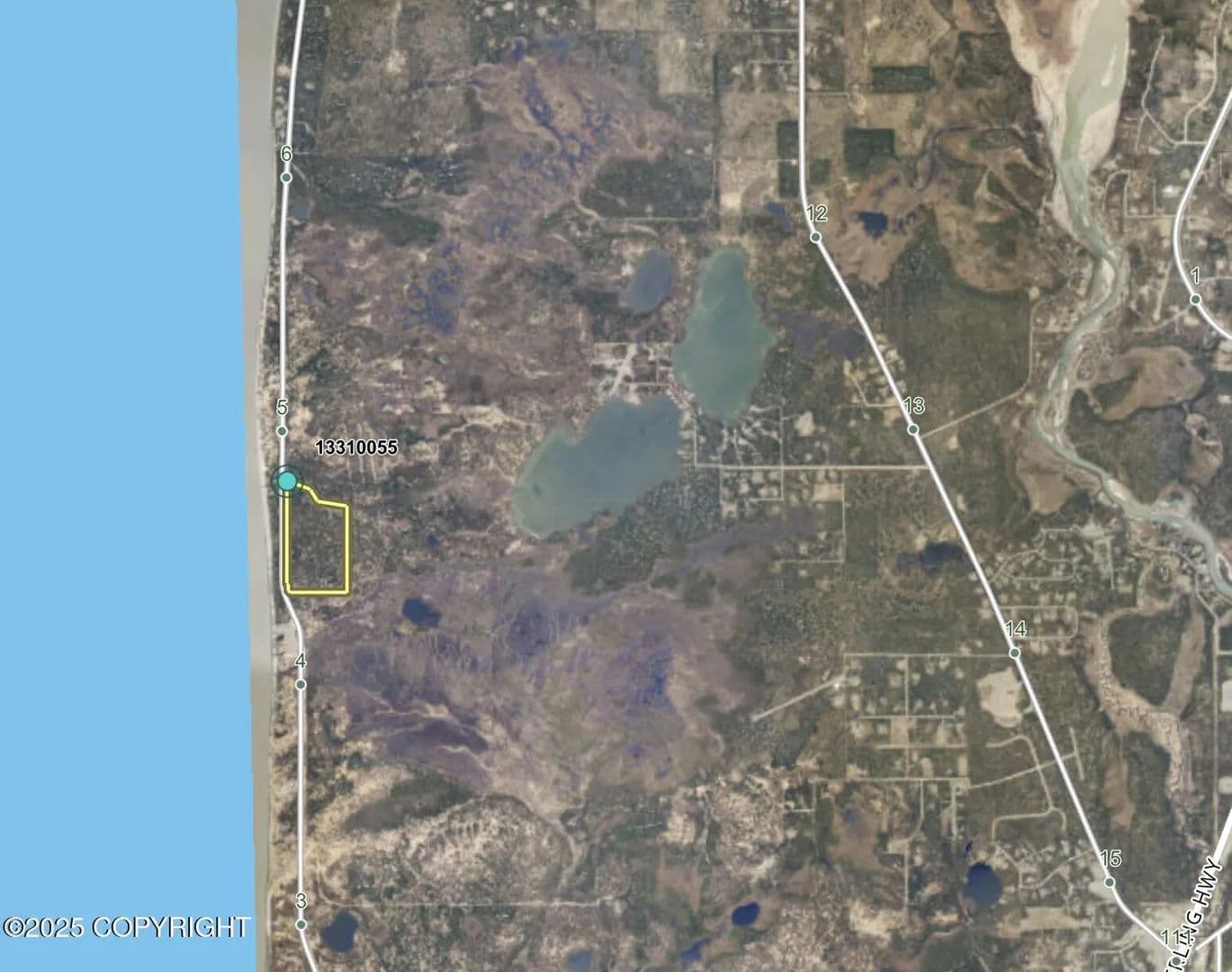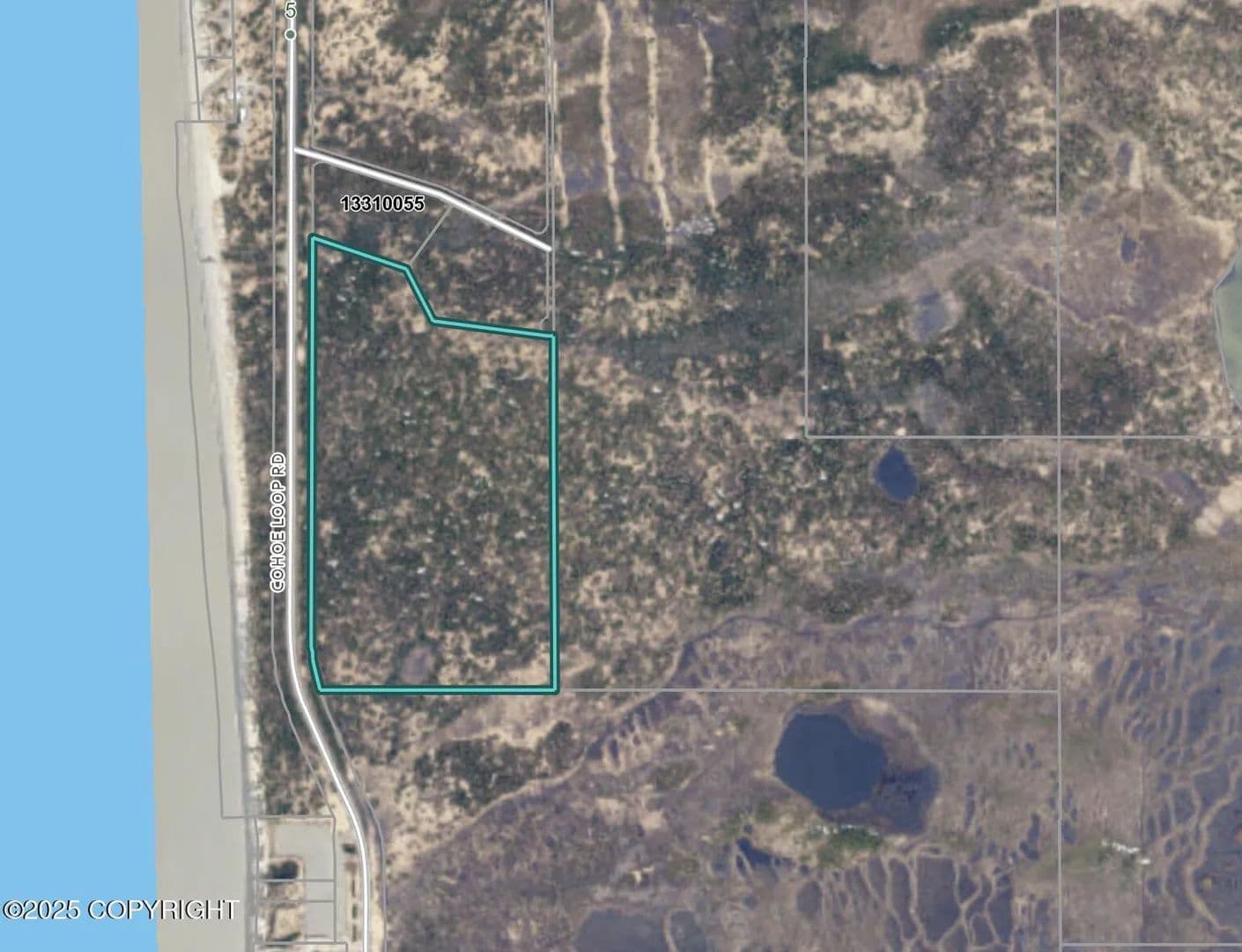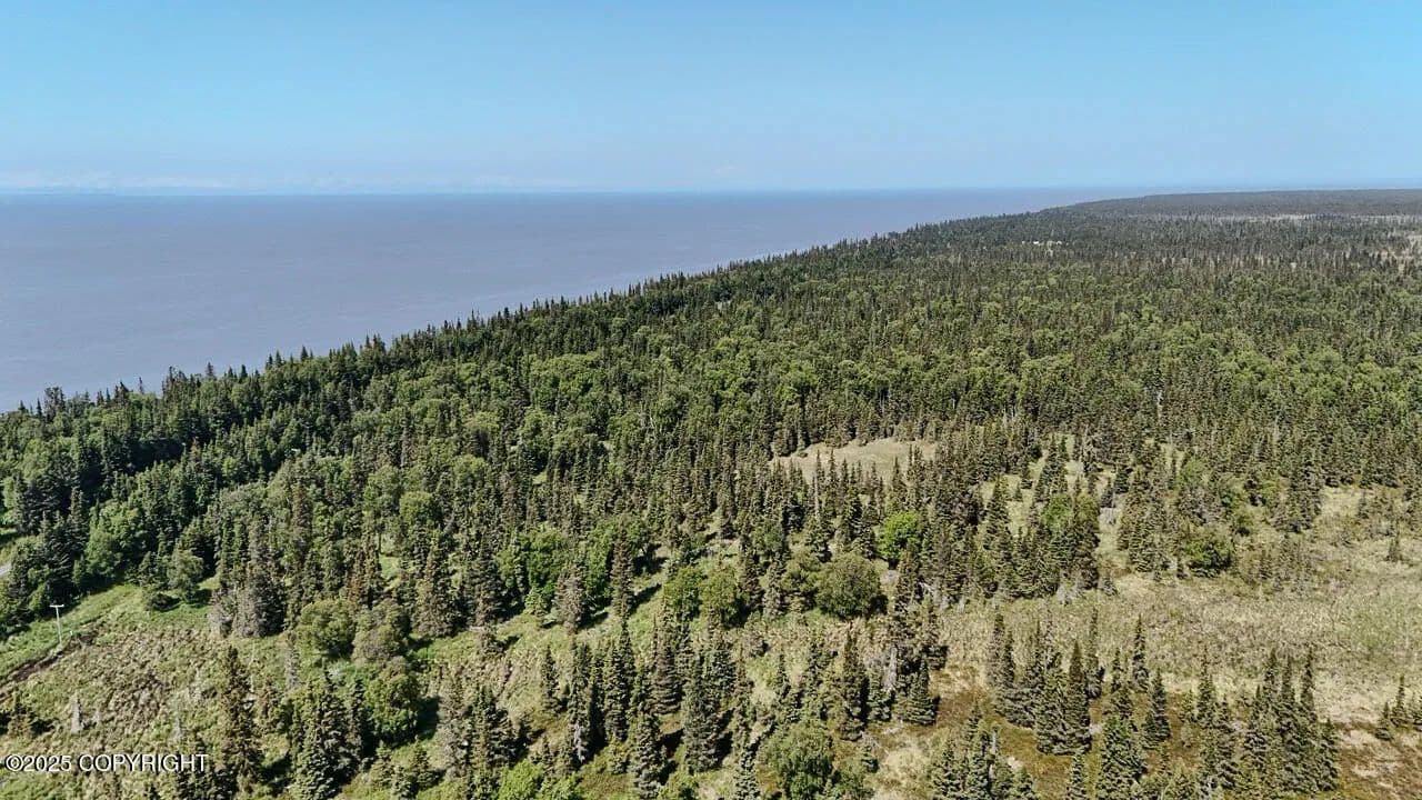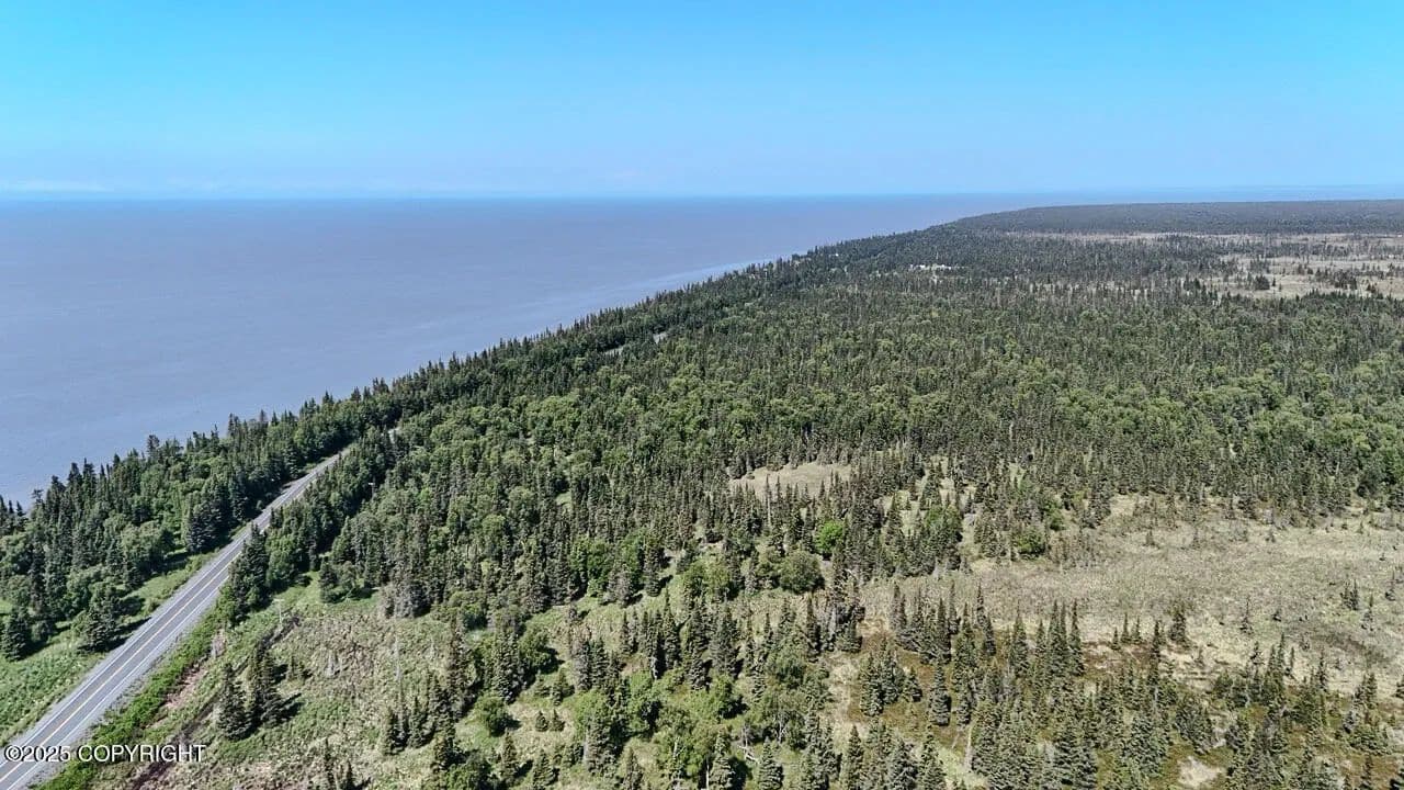 59.83 acres of private land ready for development directly across the street from the inlet bluff! Multiple beach accesses just a few minutes away! Large trees and lots of moose. Electricity adjacent to lot. See separate listing for additional 2 lots(13.93 acre) on the adjacent north end, 73.76 acres total: MLS 25-7654