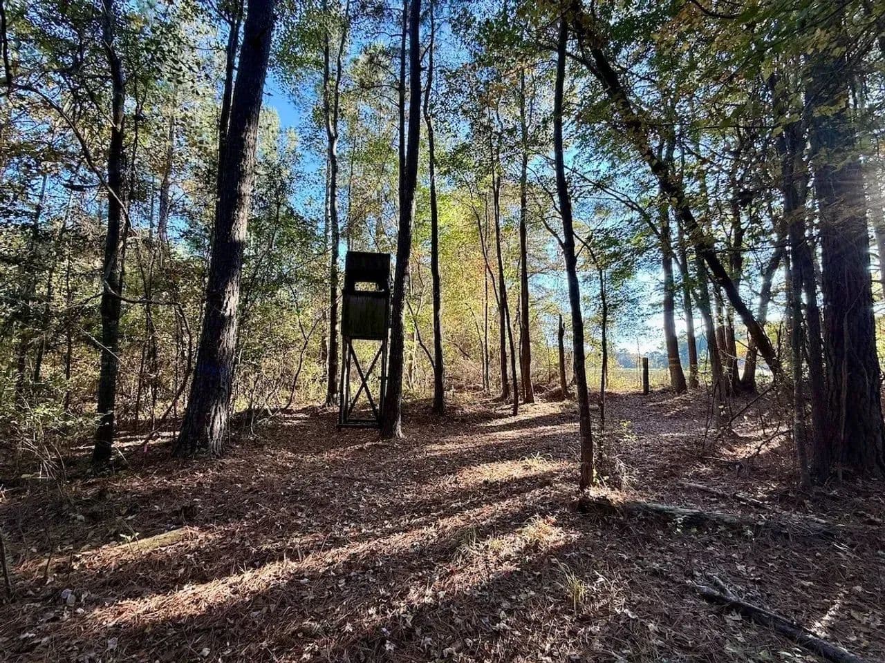 There is a nice box stand on the Southeastern corner of the property that sites on the elbow of the perimeter paths overlooking a section that mainly has mature white oaks. This prime vantage point borders a productive row crop field, providing excellent opportunities for hunting whitetail deer, turkey, and small game. A small 0.1-acre pond adds to the charm, creating a natural habitat for wildlife and a peaceful setting for relaxation or fishing.