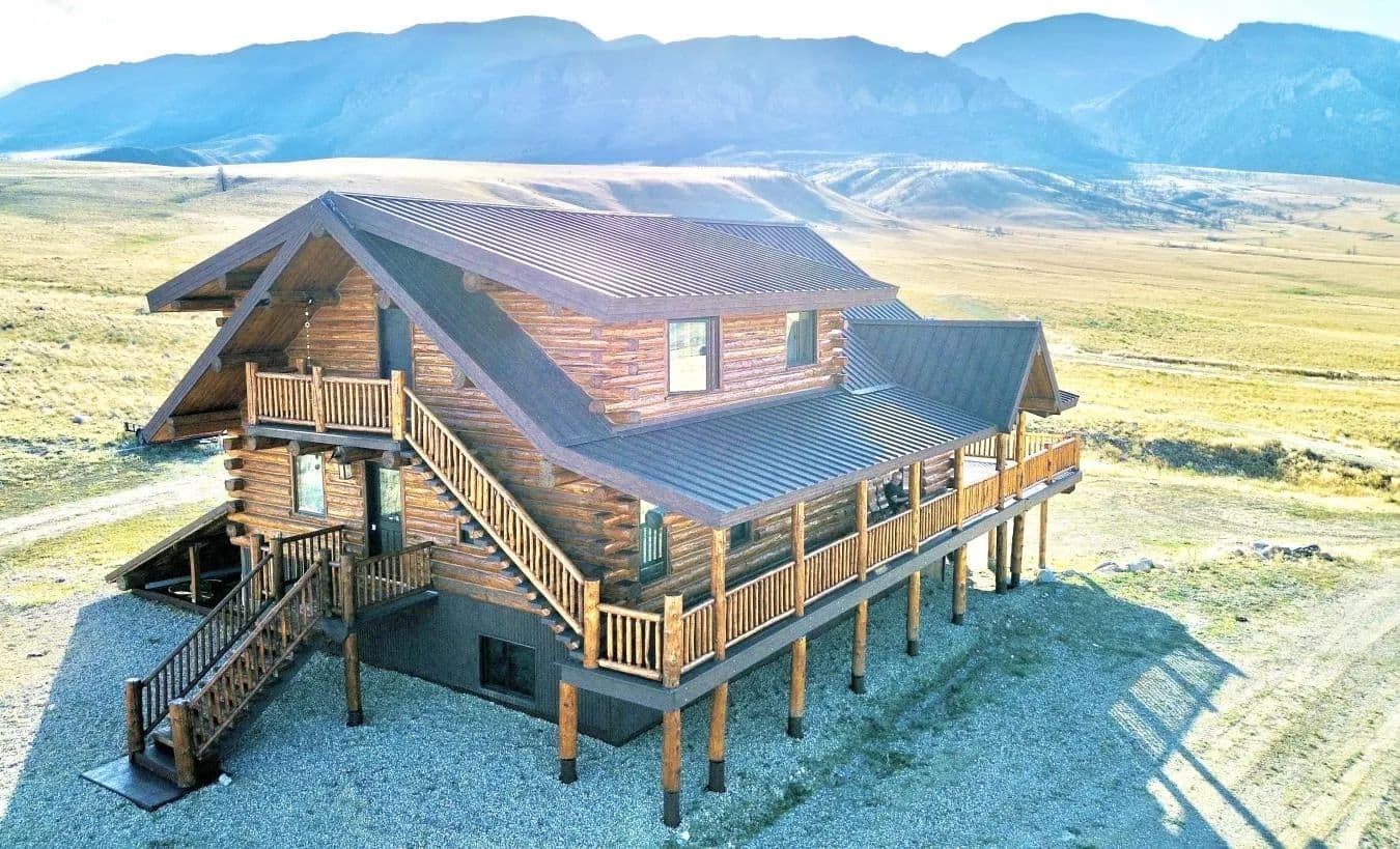 This luxury mountain log home is tucked against the breathtaking Beartooth Mountains and sits on 20 private acres with direct National Forest access and bordering BLM land. Built with quality and care, this custom log home is what Montana dreams are made of. Well suited for a recreational getaway, hunting property, corporate retreat, or full-time mountain home living. This beautiful log home features 4 bedrooms, 2.5 bathrooms, and 2,647 square feet across three levels. The lodge-style layout includes a vaulted great room with expansive windows, mountain views, and a floor-to-ceiling stone fireplace. A custom-built kitchen flows into the dining area, making it easy to gather and entertain. High-end finishes include granite countertops, hammered copper sinks, sliding barn doors, and tile flooring throughout. Step outside onto the oversized deck facing the mountains that will stop you in your tracks, every single time. This off-grid luxury home is powered by well-designed solar generator, and battery systems that operate seamlessly for everyday living. An attached two-car garage offers room for vehicles, side-by-sides, snow machines, and gear. Located about an hour from Yellowstone National Park, Billings, MT, and Cody, WY, this Montana luxury property provides access to dining, rodeos, festivals, skiing, and year-round outdoor