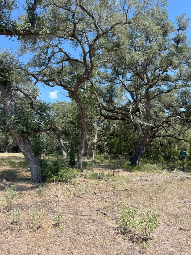 RV hook up nestled in the woods above the creek area with electricity/water in place. North fork of the Lavaca River meanders through the middle of the ranch encompassed by large heritage oak trees and towering pecan trees creating a forest of shade and a natural habitat for wildlife.