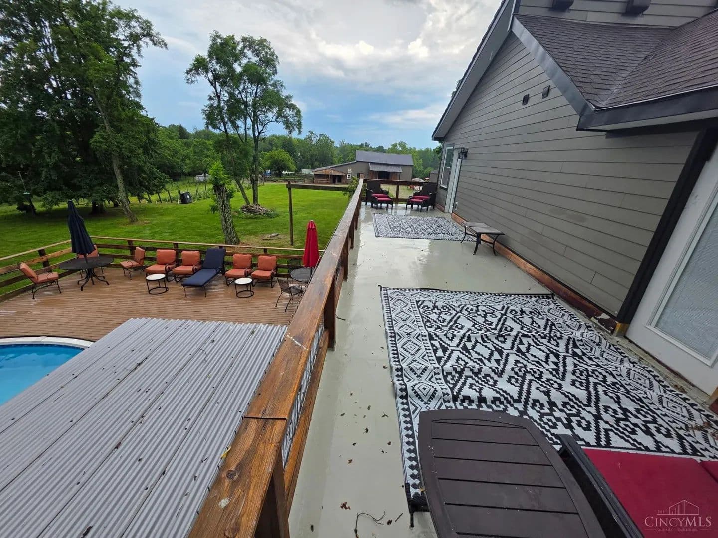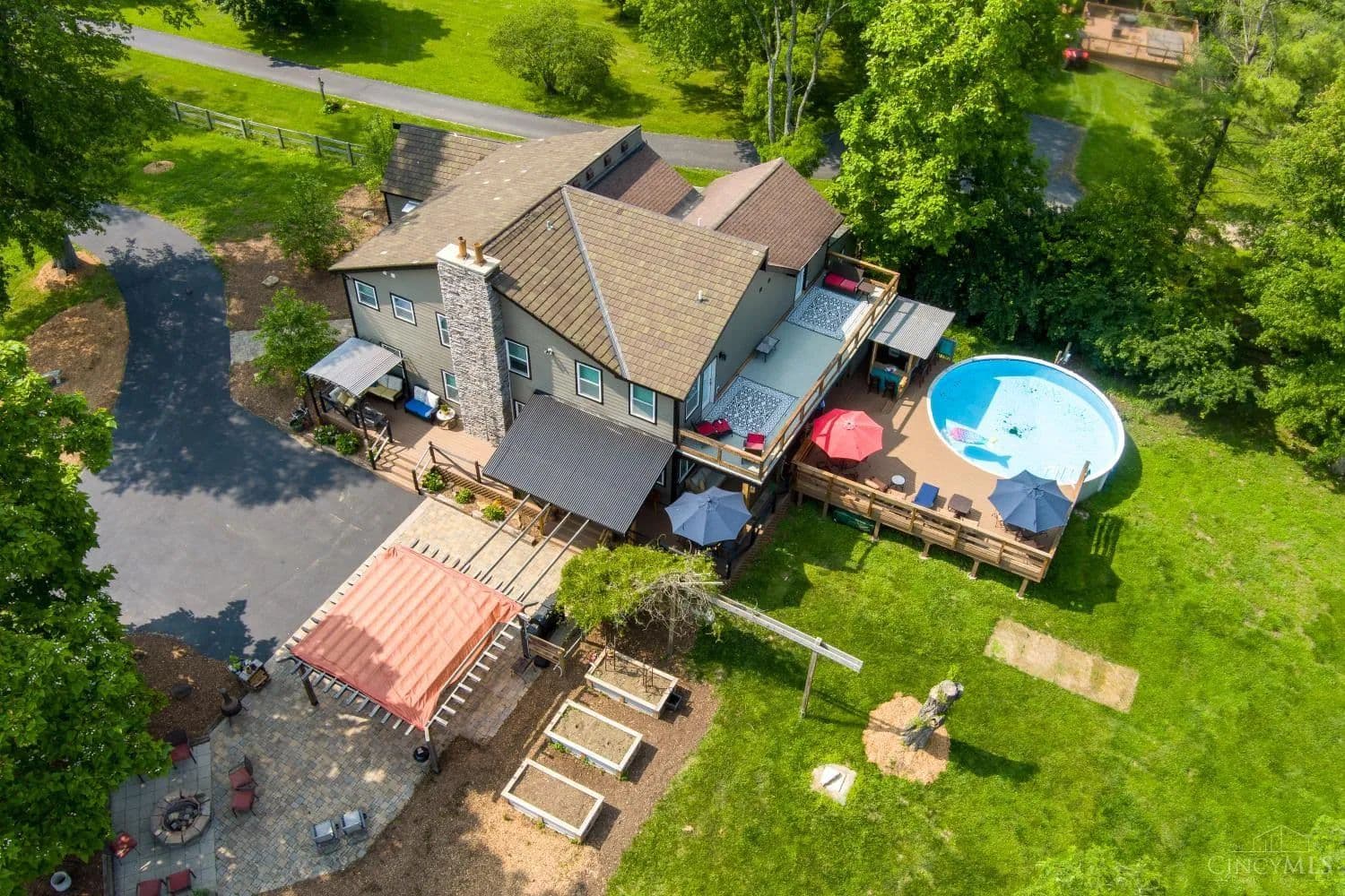 Welcome to you own private oasis! This beautiful unique 4 bed/4-1/2 bath modernized and expanded farmhouse has over 4163 sf with new addition that could be MIL or primary suite! Structures include 4 car garage, 2 barns, and addition that is currently a workout room. 15.667 fully fenced acres has 6 separate pastures including back area wooded along with a creek and fishing pond. Vineyard planted in 2023 with grape vines. Recent improvements include painting of all structures including house, new roof on wooden barn, stained decks/porches, driveway seal, gravel, and pressure washing barn interiors and paint. Above ground pool with cabana, fire pit, gazebo, and wrap around porch make for excellent entertaining spaces. Close to 71, Caesar's Creek, and the Little Miami River! Too much to list! See Today! Coming soon! Agent related to sellers
