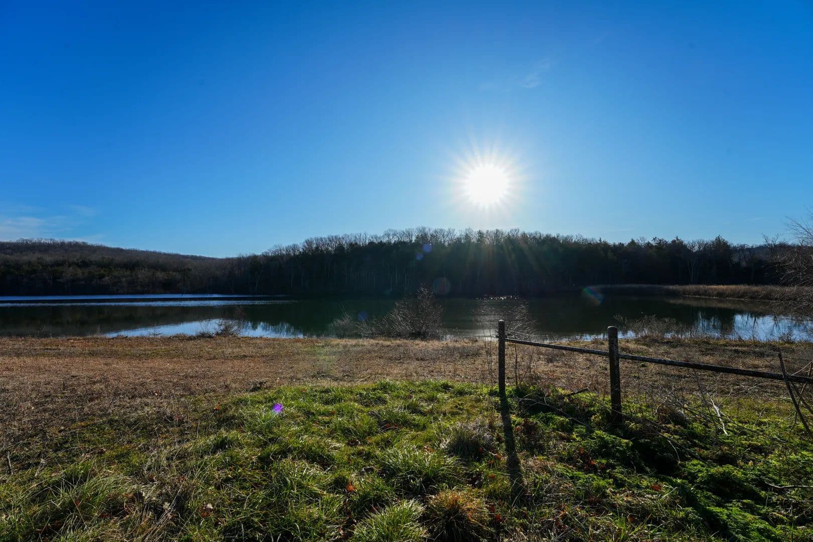 Lake is secluded and timber-lined—excellent waterfowl hunting potential