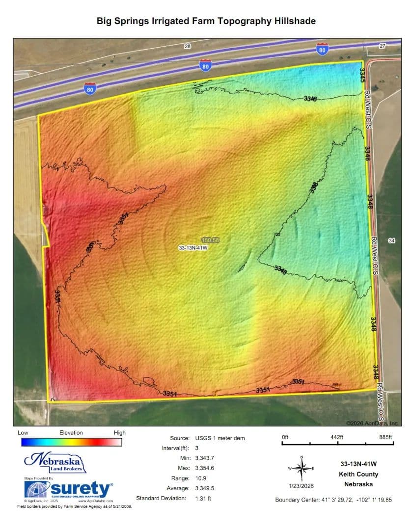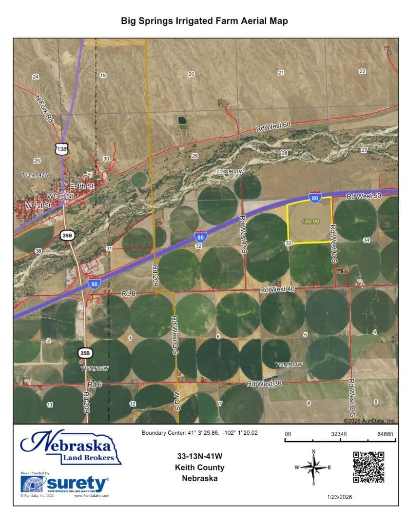 LOCATION: The pivot irrigated farm is located in southwestern Keith County, on Road West O South. This is 4 miles east of the I-80 Exit at Big Springs, NE.