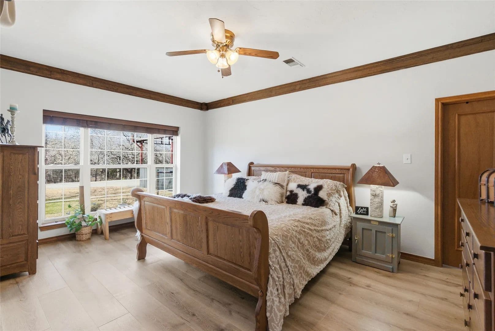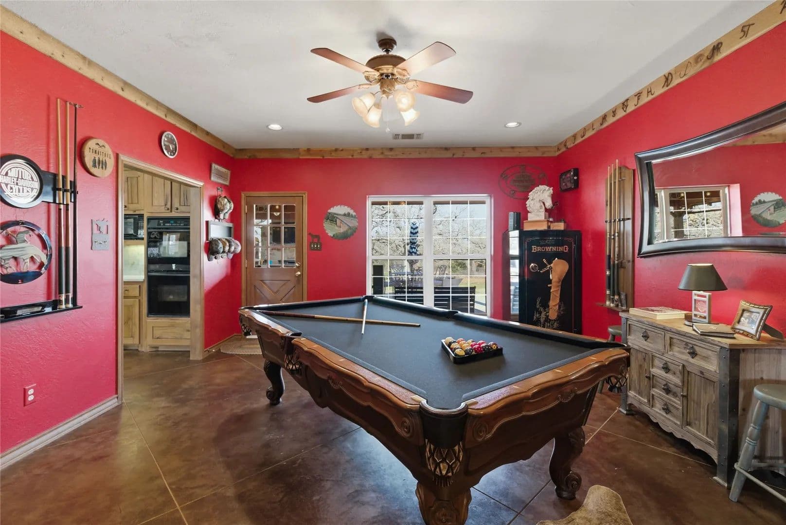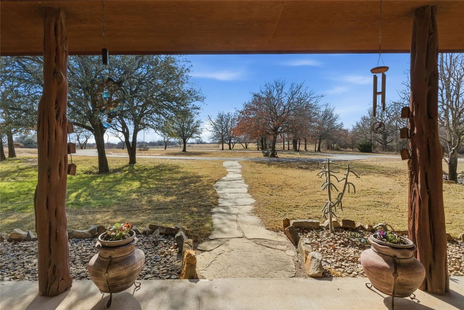 Set beyond a winding drive that meanders through rolling pastures, this breathtaking 40-acre ranch unfolds as a true Texas sanctuary. The custom stone ranch house is thoughtfully positioned to take in the land, wide-open skies, scattered mature trees, and the kind of quiet that lets you exhale the moment you arrive. The heart of the home is a stunning updated kitchen anchored by a massive taj mahal quartzite island & copper farmhouse sink, flowing seamlessly into a spacious dining area with a recessed ceiling & wood-burning stove. The living area & open office space continue creating a warm, connected layout filled with natural light. A generous game room offers flexible space for hobbies, fitness, or gatherings. The primary suite is a private retreat with a serene, spa-like bath & a custom closet featuring a private vanity. 2 guest rooms on the main level share a Hollywood bath, while a fourth bedroom upstairs functions beautifully as a secluded guest suite with its own ensuite bath. Throughout the home, custom western metal lighting, incredible custom cabinetry, fabulous wood doors, cowhide transoms, & branded trim add distinctive character & craftsmanship to this home. Incredible outdoor living area, with stone wood-burning fireplace, vaulted ceiling, & spa, overlooks the backyard & surrounding trees, creating a natural extension of the home and an ideal spot for morning coffee & evenings under the stars. The property is complete with a 30x50 insulated shop w electricity, great for parking all your toys! 2well houses w implement parking & storage. 2 stall shedrow. The older BarnMaster, currently used as a workshop & feed room, was once a 2nd residence as it features a kitchen & bath needing TLC. Wooded trails & the gorgeous stock tank invite exploration. Lush coastal Bermuda grass. Private, peaceful, & beautifully positioned, this remarkable ranch offers the best of country living, just 31 miles from downtown Fort Worth & 52 miles from DFW International Airport.