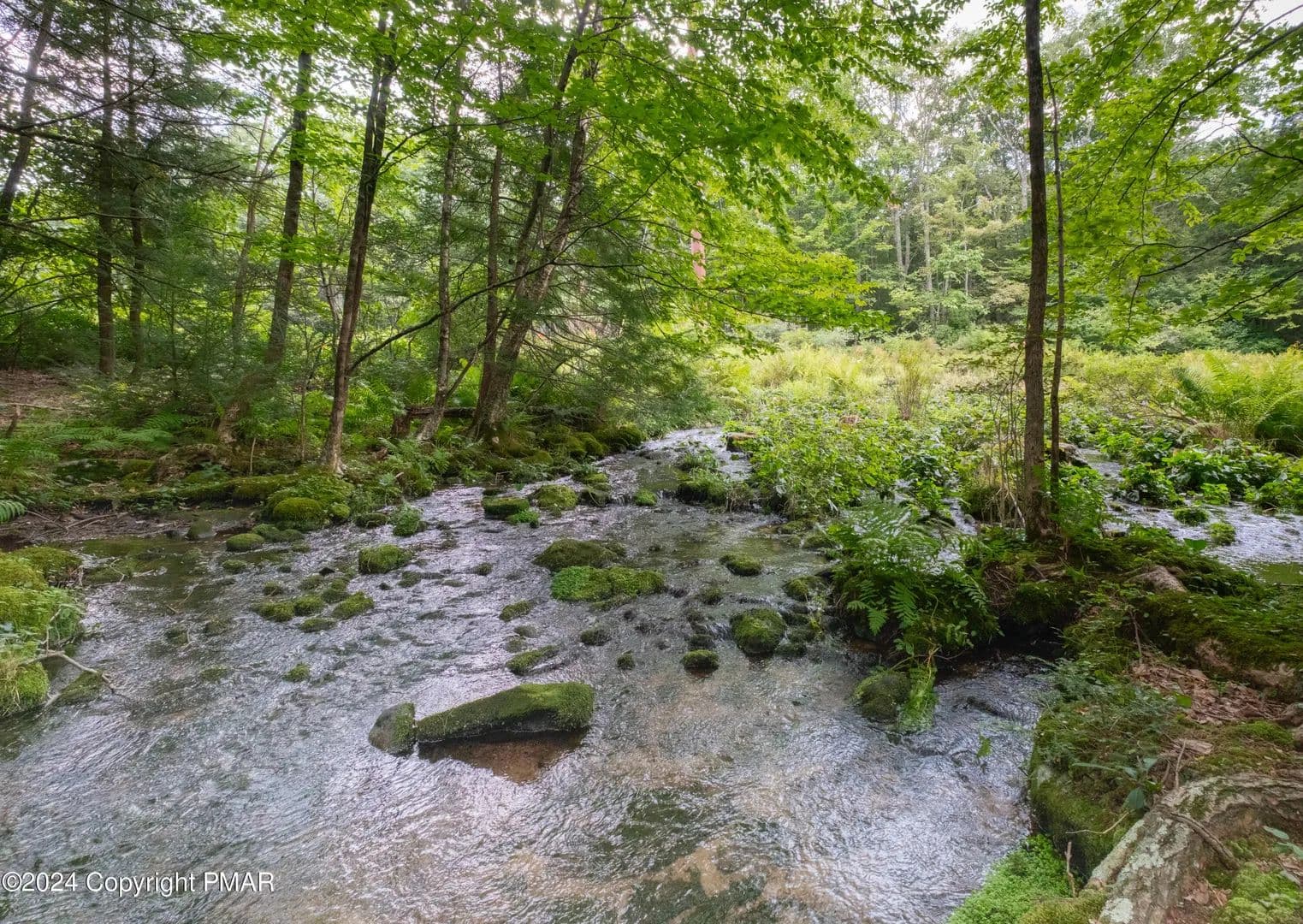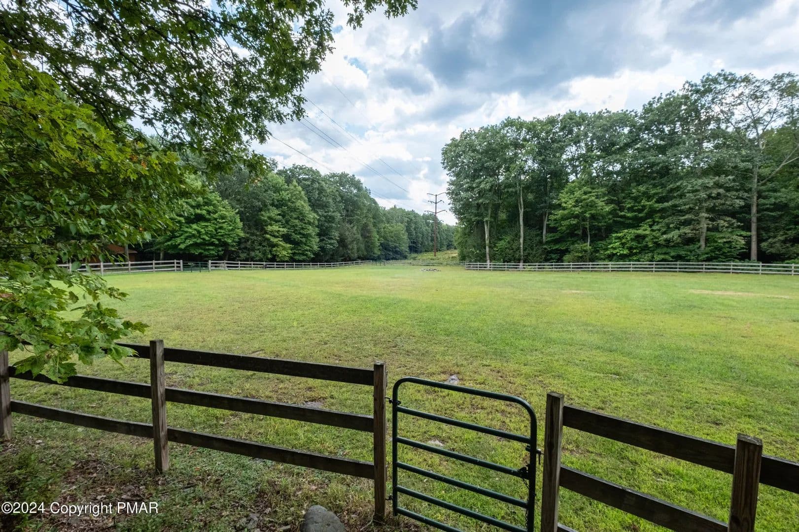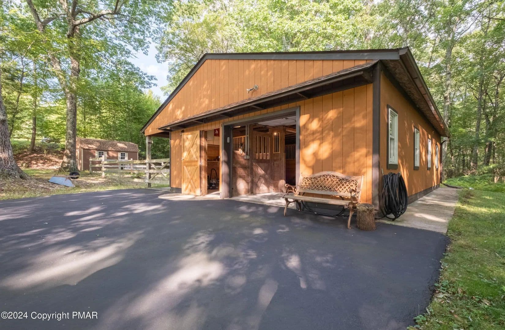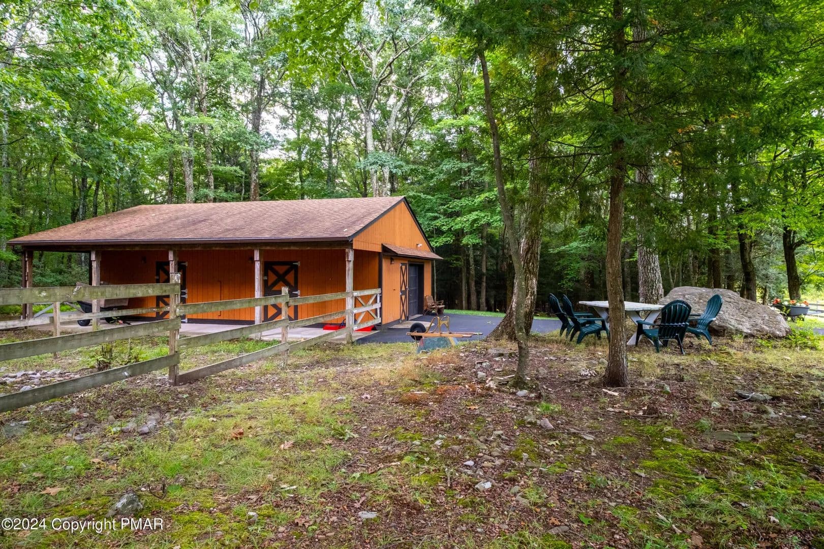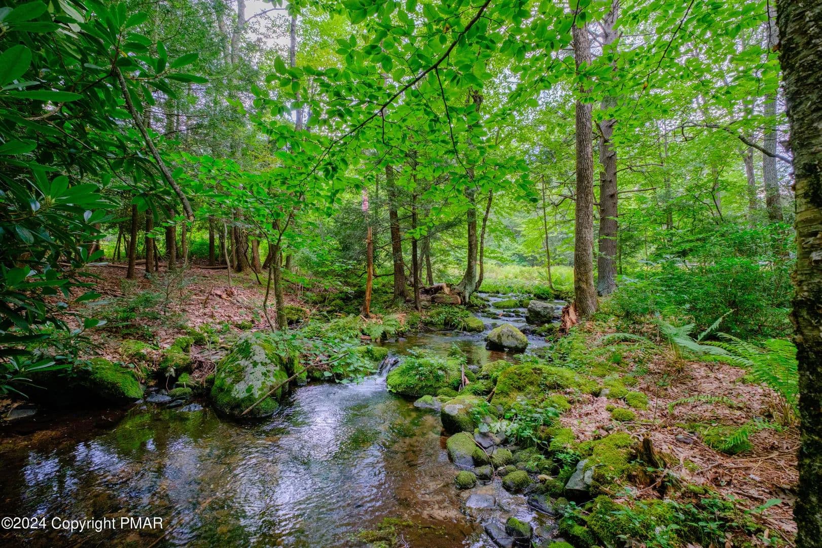 Escape to this 10.33 acres Serene Pocono Mountain Estate, perfect for Horse Enthusiasts and nature lovers! This stunning property boasts a horse stable, riding pastures, hiking trails, all nestled next to STATE GAME LANDS-*FEATURES*- Horse stable with 2 stalls and tack room- 2 acre Riding pastures and trails for endless horseback riding- Trout Stream and hiking trails for exploration and relaxation- Private and secluded setting with breathtaking mountain views-Spacious 2-bedroom, 1,1/2-bathroom home with hardwood floors, stone propane fireplace in Living room and wood burning Fireplace in Master bedroom for cozy winter nights. Kitchen features large granite counter top with connecting island. Property is approved for CLEAN&GREEN Benefits, Close proximity to Camelback ski resort & Outlet