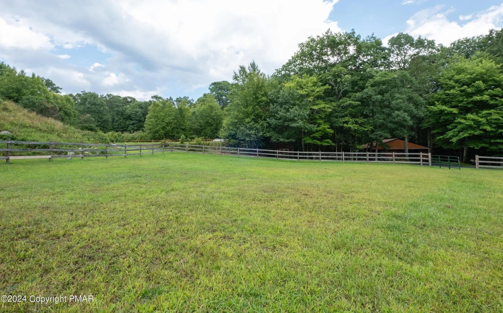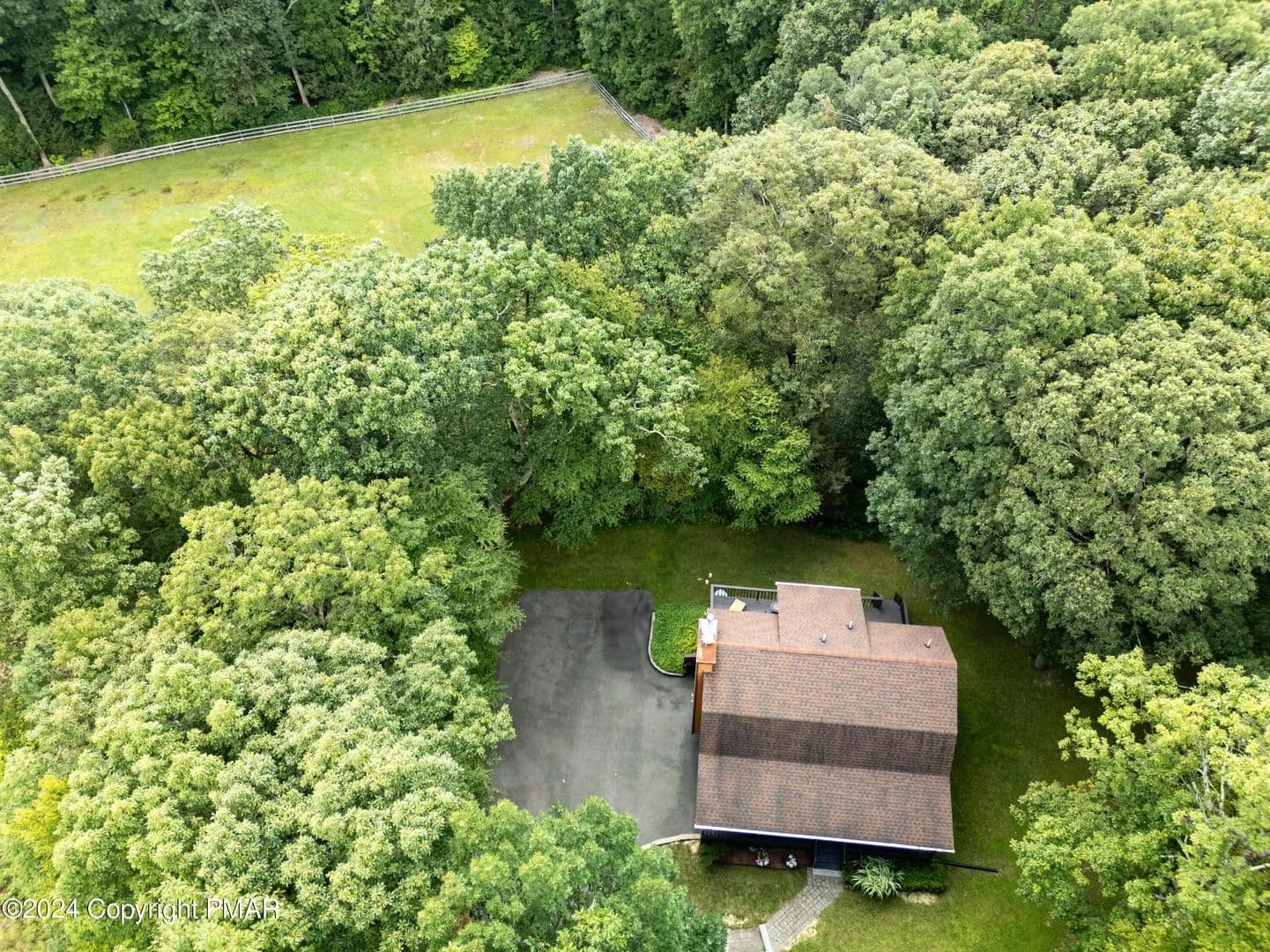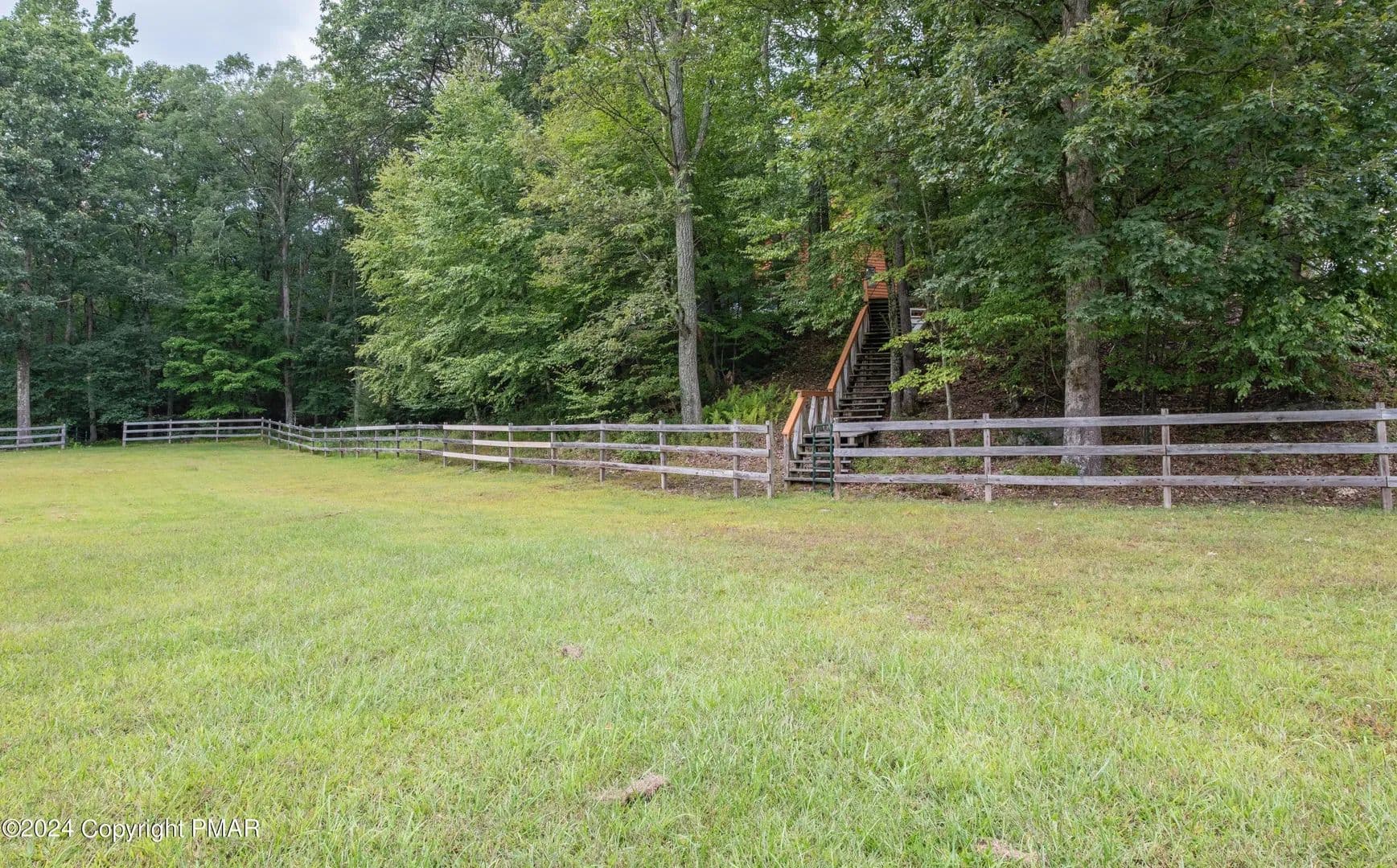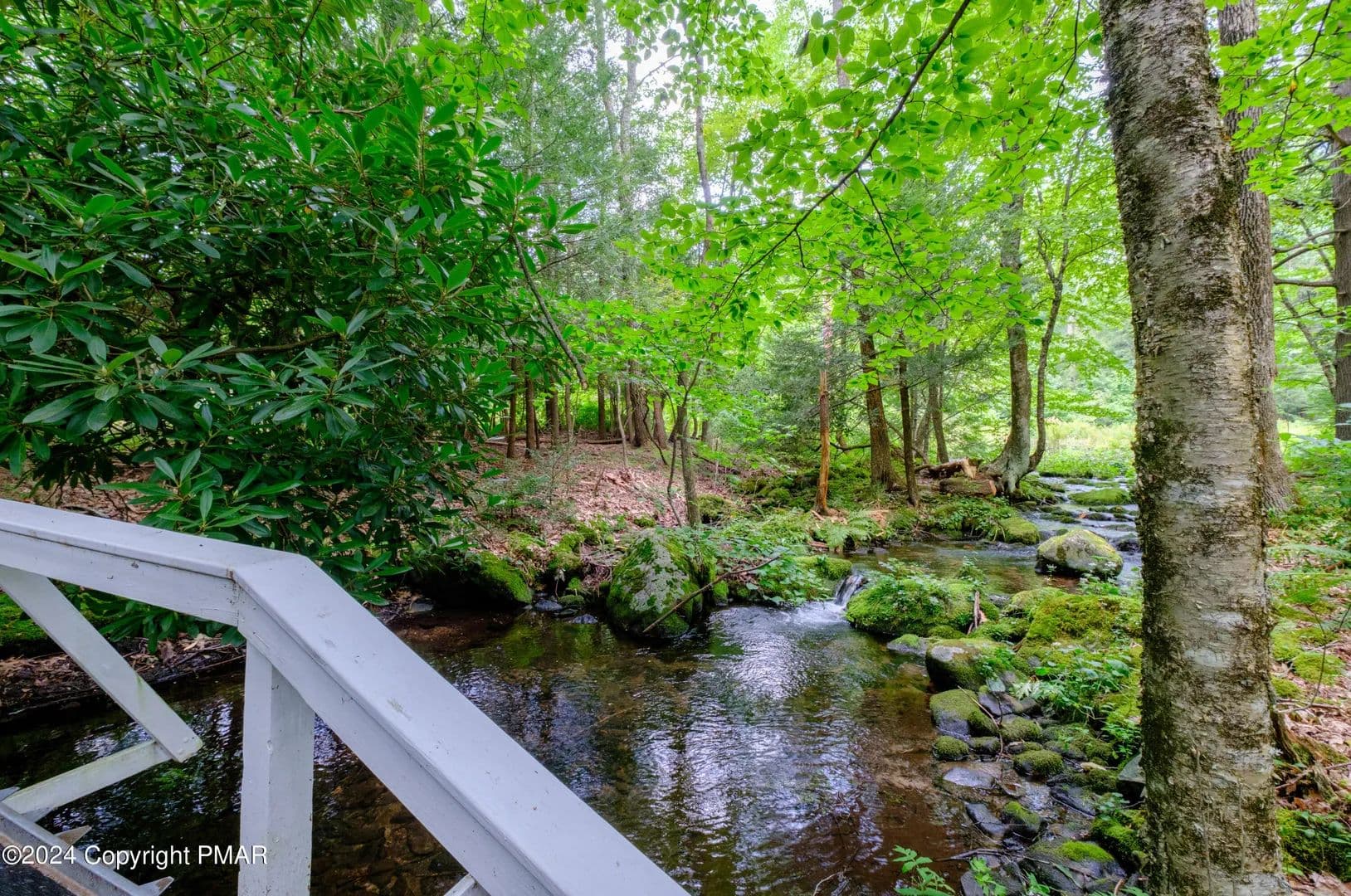 Escape to this 10.33 acres Serene Pocono Mountain Estate, perfect for Horse Enthusiasts and nature lovers! This stunning property boasts a horse stable, riding pastures, hiking trails, all nestled next to STATE GAME LANDS-*FEATURES*- Horse stable with 2 stalls and tack room- 2 acre Riding pastures and trails for endless horseback riding- Trout Stream and hiking trails for exploration and relaxation- Private and secluded setting with breathtaking mountain views-Spacious 2-bedroom, 1,1/2-bathroom home with hardwood floors, stone propane fireplace in Living room and wood burning Fireplace in Master bedroom for cozy winter nights. Kitchen features large granite counter top with connecting island. Property is approved for CLEAN&GREEN Benefits, Close proximity to Camelback ski resort & Outlet