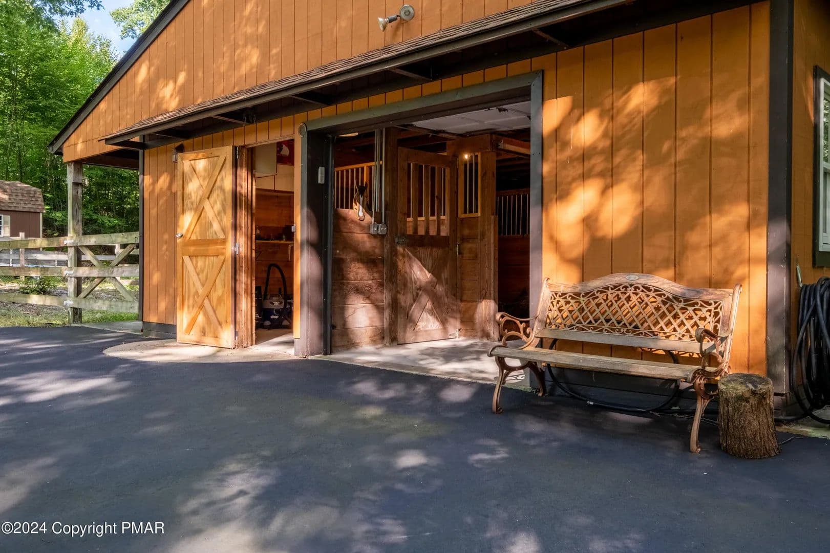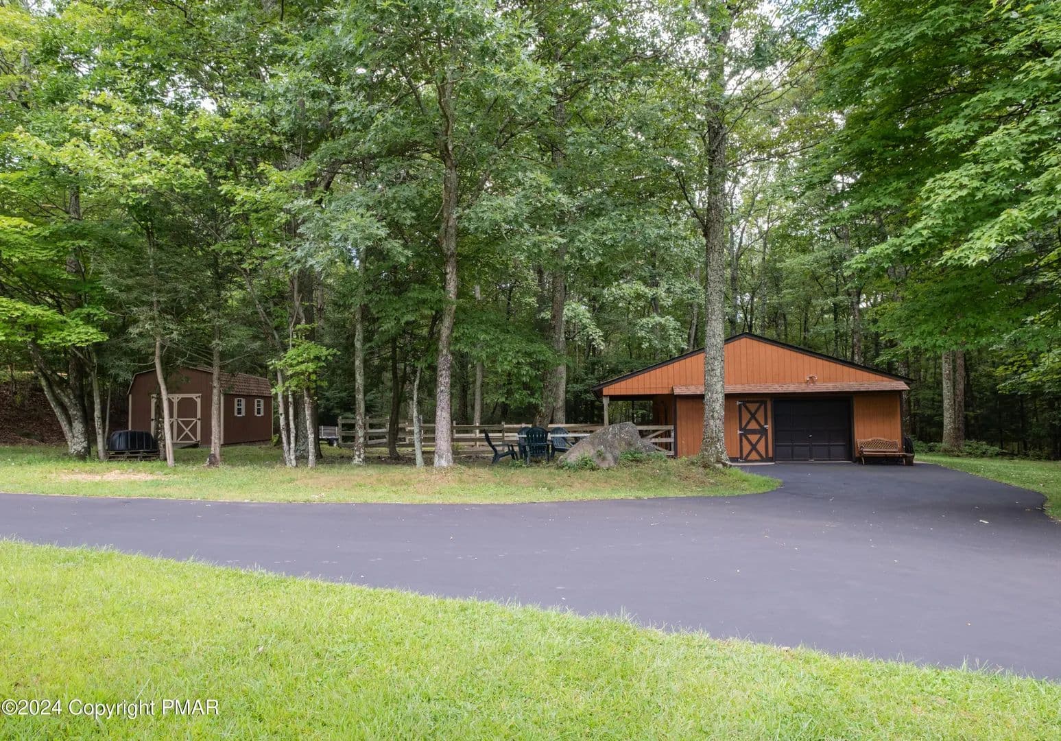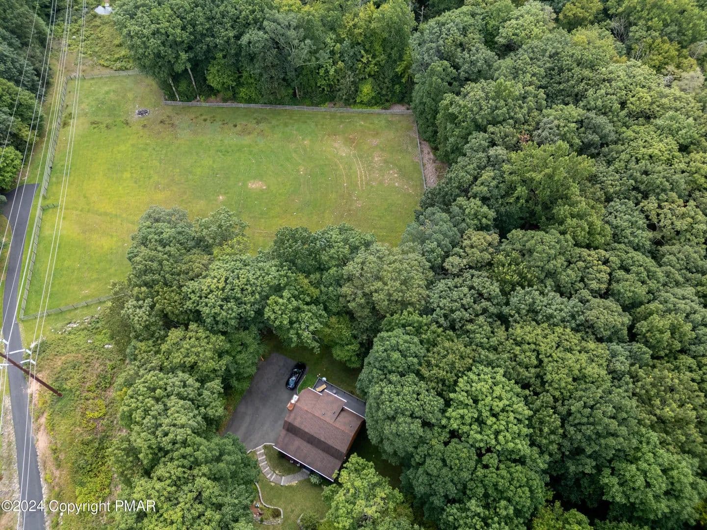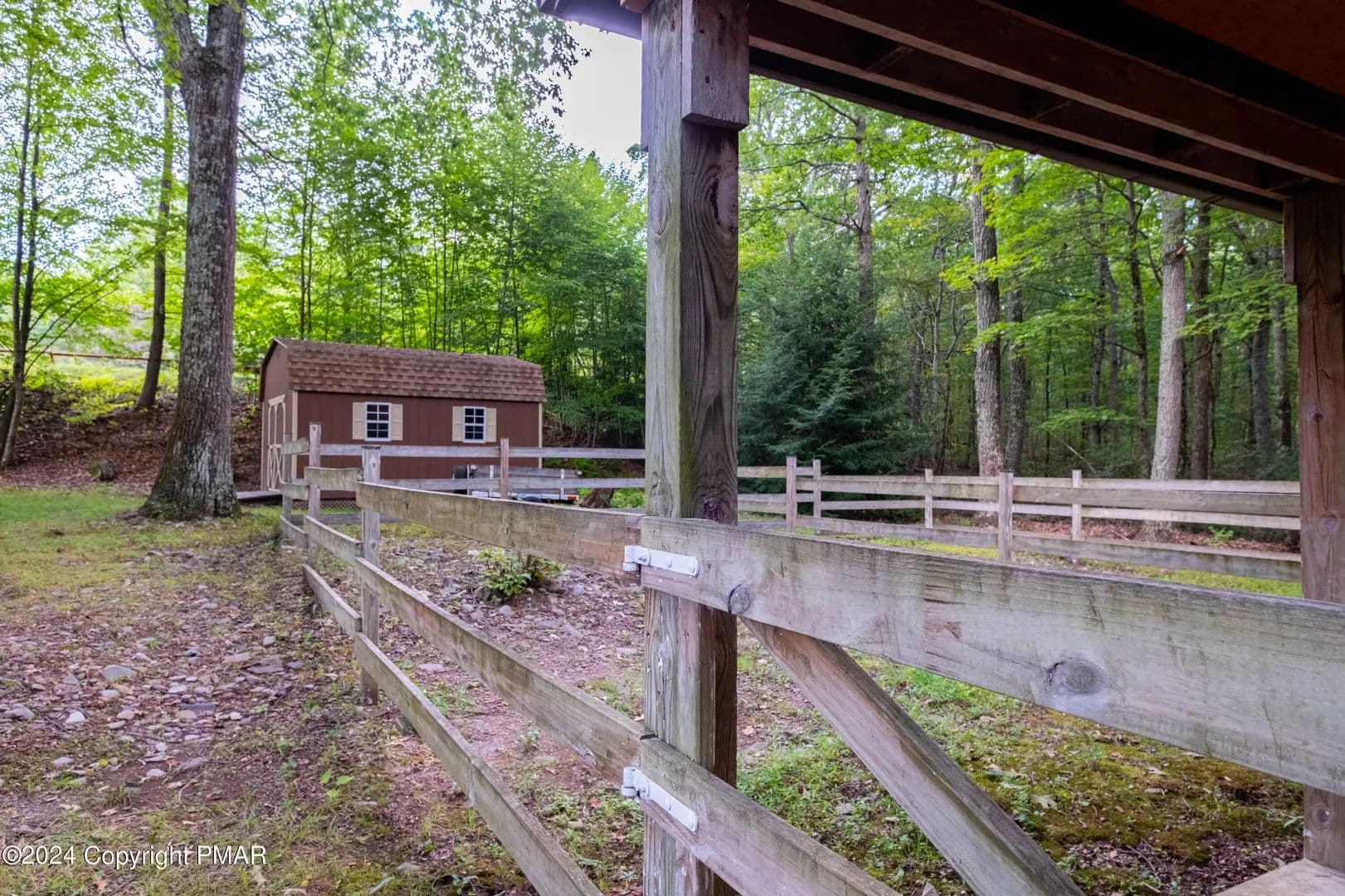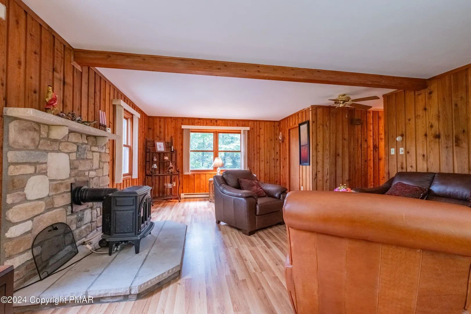 Escape to this 10.33 acres Serene Pocono Mountain Estate, perfect for Horse Enthusiasts and nature lovers! This stunning property boasts a horse stable, riding pastures, hiking trails, all nestled next to STATE GAME LANDS-*FEATURES*- Horse stable with 2 stalls and tack room- 2 acre Riding pastures and trails for endless horseback riding- Trout Stream and hiking trails for exploration and relaxation- Private and secluded setting with breathtaking mountain views-Spacious 2-bedroom, 1,1/2-bathroom home with hardwood floors, stone propane fireplace in Living room and wood burning Fireplace in Master bedroom for cozy winter nights. Kitchen features large granite counter top with connecting island. Property is approved for CLEAN&GREEN Benefits, Close proximity to Camelback ski resort & Outlet