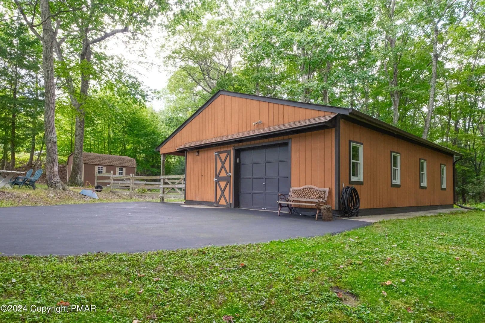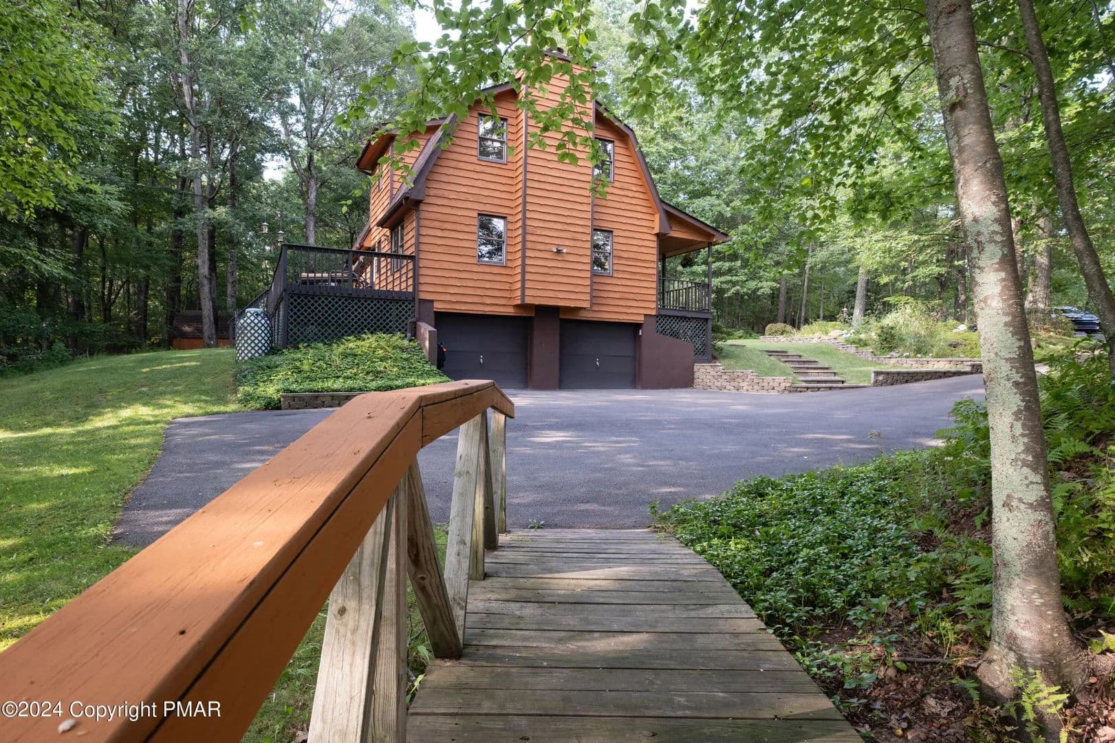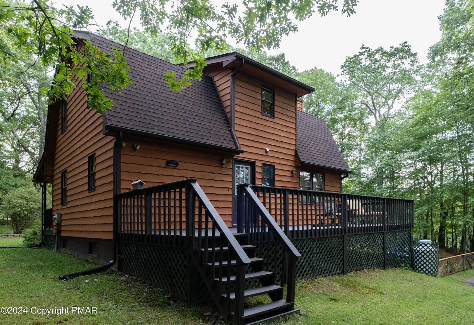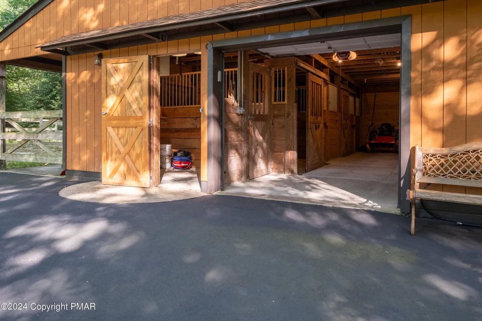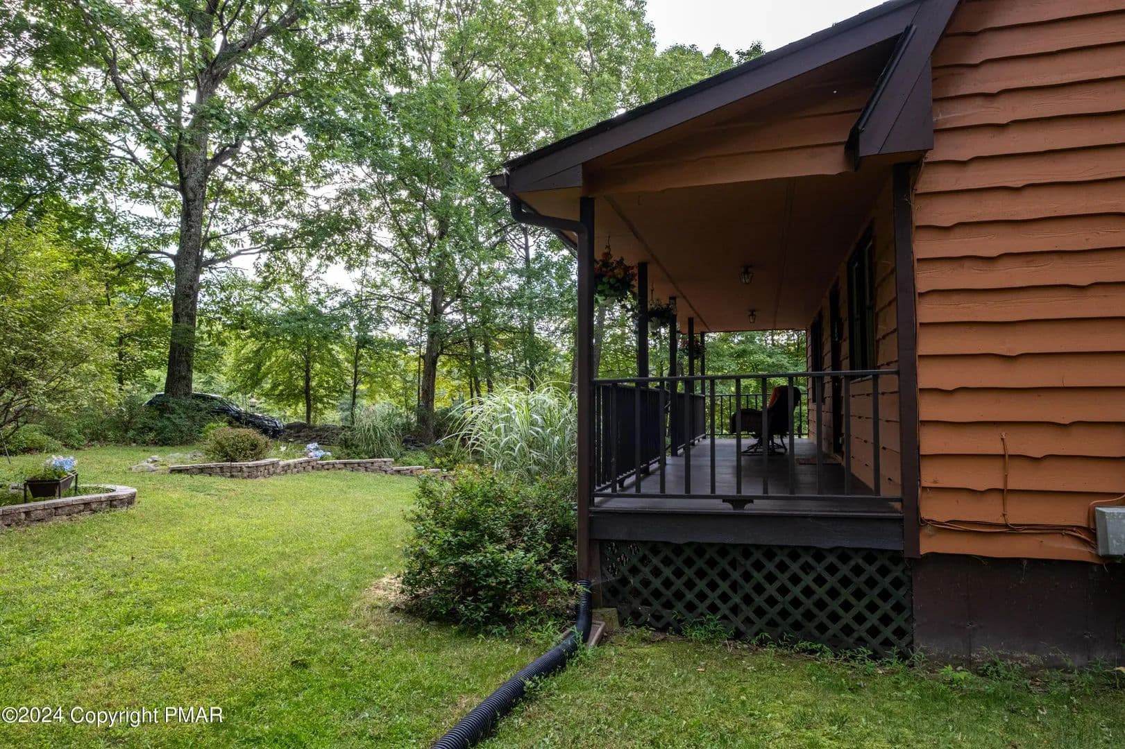 Escape to this 10.33 acres Serene Pocono Mountain Estate, perfect for Horse Enthusiasts and nature lovers! This stunning property boasts a horse stable, riding pastures, hiking trails, all nestled next to STATE GAME LANDS-*FEATURES*- Horse stable with 2 stalls and tack room- 2 acre Riding pastures and trails for endless horseback riding- Trout Stream and hiking trails for exploration and relaxation- Private and secluded setting with breathtaking mountain views-Spacious 2-bedroom, 1,1/2-bathroom home with hardwood floors, stone propane fireplace in Living room and wood burning Fireplace in Master bedroom for cozy winter nights. Kitchen features large granite counter top with connecting island. Property is approved for CLEAN&GREEN Benefits, Close proximity to Camelback ski resort & Outlet