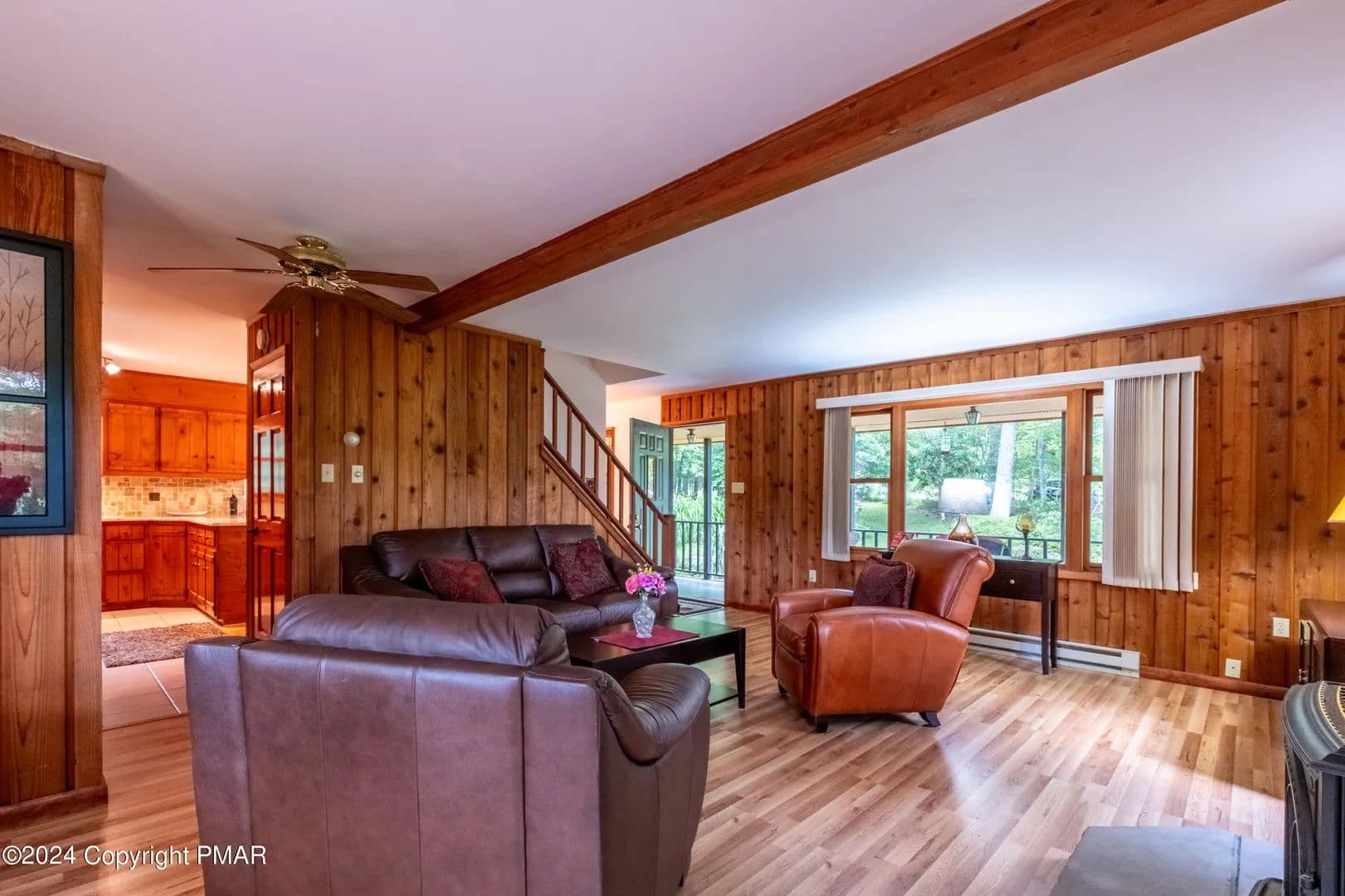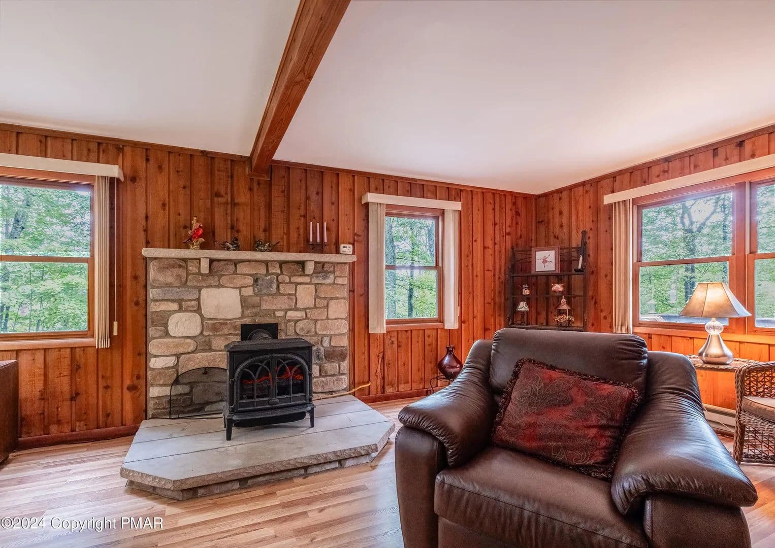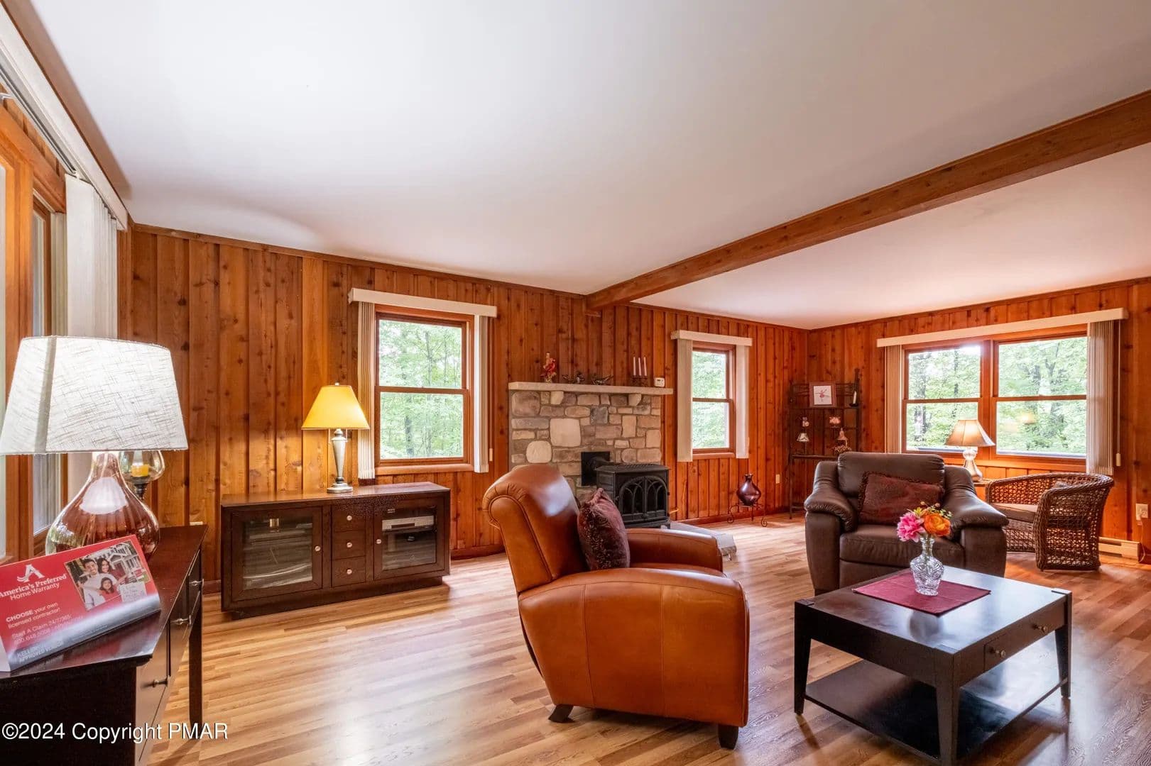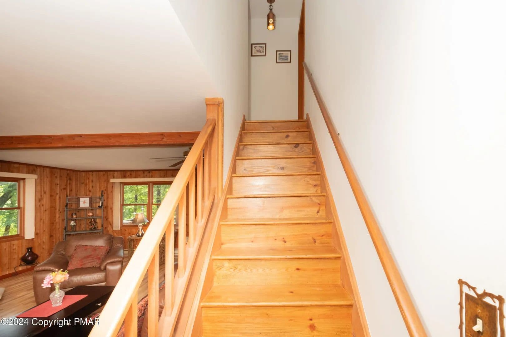Escape to this 10.33 acres Serene Pocono Mountain Estate, perfect for Horse Enthusiasts and nature lovers! This stunning property boasts a horse stable, riding pastures, hiking trails, all nestled next to STATE GAME LANDS-*FEATURES*- Horse stable with 2 stalls and tack room- 2 acre Riding pastures and trails for endless horseback riding- Trout Stream and hiking trails for exploration and relaxation- Private and secluded setting with breathtaking mountain views-Spacious 2-bedroom, 1,1/2-bathroom home with hardwood floors, stone propane fireplace in Living room and wood burning Fireplace in Master bedroom for cozy winter nights. Kitchen features large granite counter top with connecting island. Property is approved for CLEAN&GREEN Benefits, Close proximity to Camelback ski resort & Outlet
