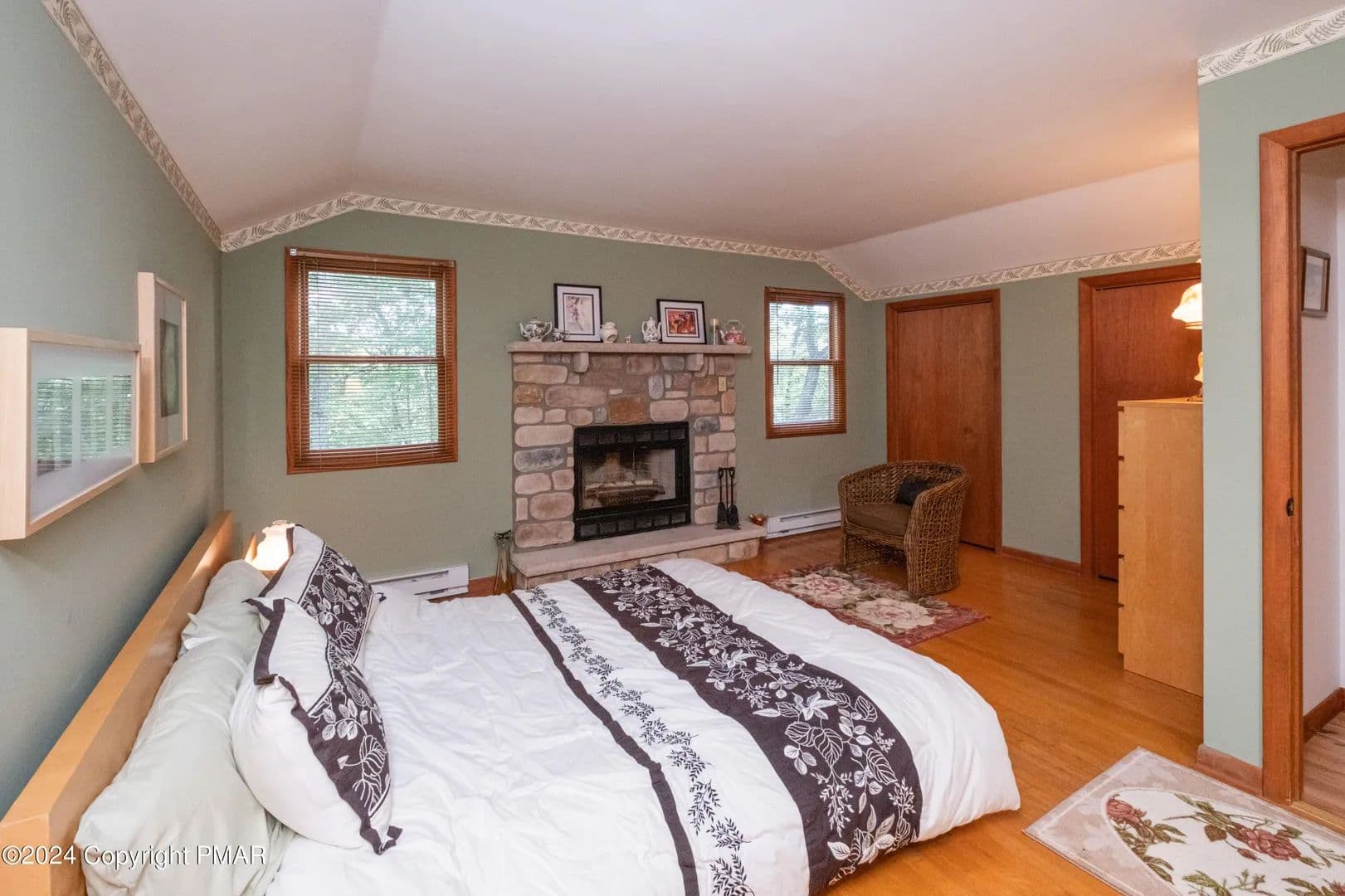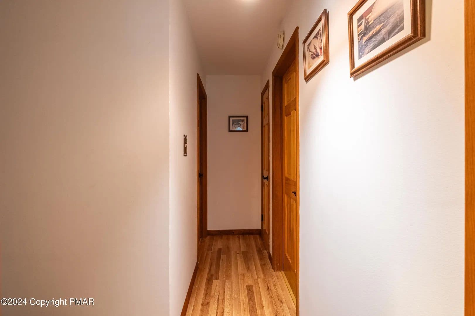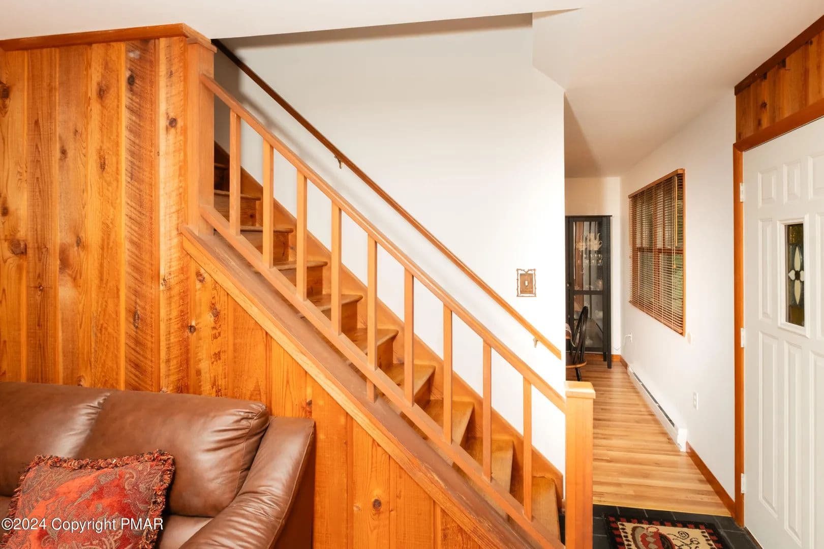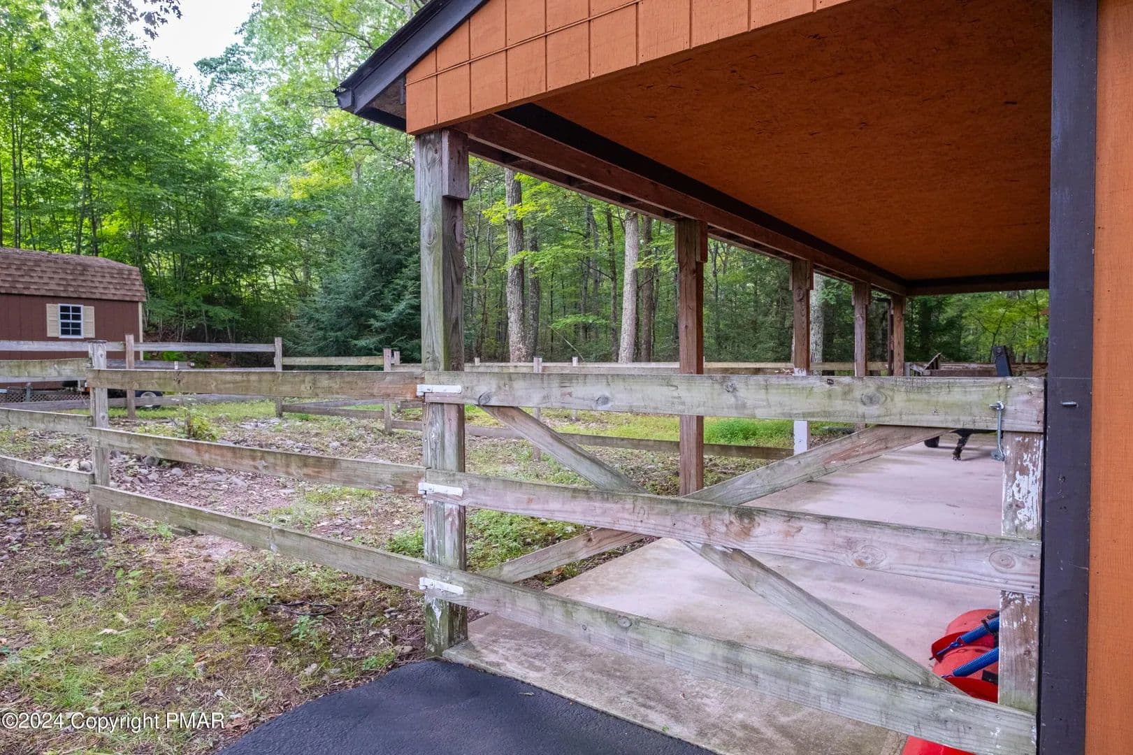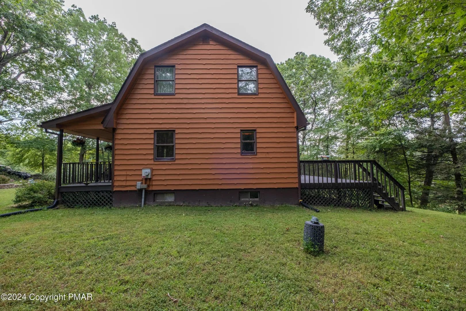 Escape to this 10.33 acres Serene Pocono Mountain Estate, perfect for Horse Enthusiasts and nature lovers! This stunning property boasts a horse stable, riding pastures, hiking trails, all nestled next to STATE GAME LANDS-*FEATURES*- Horse stable with 2 stalls and tack room- 2 acre Riding pastures and trails for endless horseback riding- Trout Stream and hiking trails for exploration and relaxation- Private and secluded setting with breathtaking mountain views-Spacious 2-bedroom, 1,1/2-bathroom home with hardwood floors, stone propane fireplace in Living room and wood burning Fireplace in Master bedroom for cozy winter nights. Kitchen features large granite counter top with connecting island. Property is approved for CLEAN&GREEN Benefits, Close proximity to Camelback ski resort & Outlet
