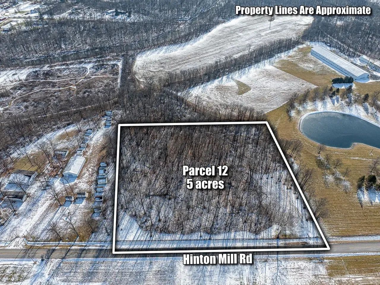 Parcel 12 - 5± AcresIdeal for residential home construction in an all-wooded setting. Approximately 485± feet of frontage along Hinton Mill Road.