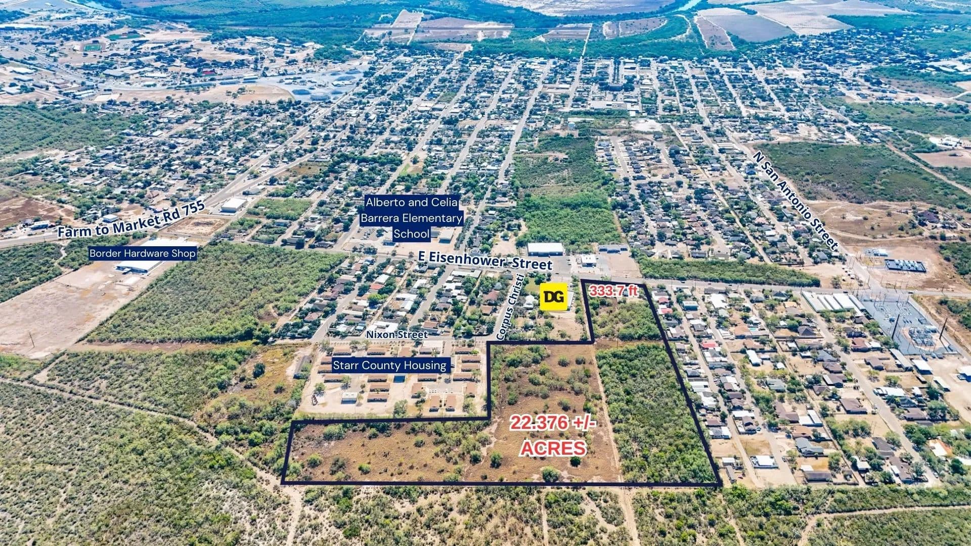 This property is adjacent to platted subdivisions, low income housing, two blocks from North Grammer Elementary School and across the street from the United States Post Office. Subject Property has a 2,184 square foot building (Presently Rented), approximately 333 foot of frontage on Eisenhower Street, a major East-West traffic artery in Rio Grande City. This property is also accessible thru North Corpus Street, off of Eisenhower Street. This property is 6 to 7 blocks west of Flores Street/FM 755, a North-South traffic artery leading to downtown Rio Grande City and the FM 755 Loop. This tract of land is an excellent site for future single family residential and Commercial Development with all the infrastructure located at Eisenhower Street, North Corpus Street and the neighboring subdivisions.