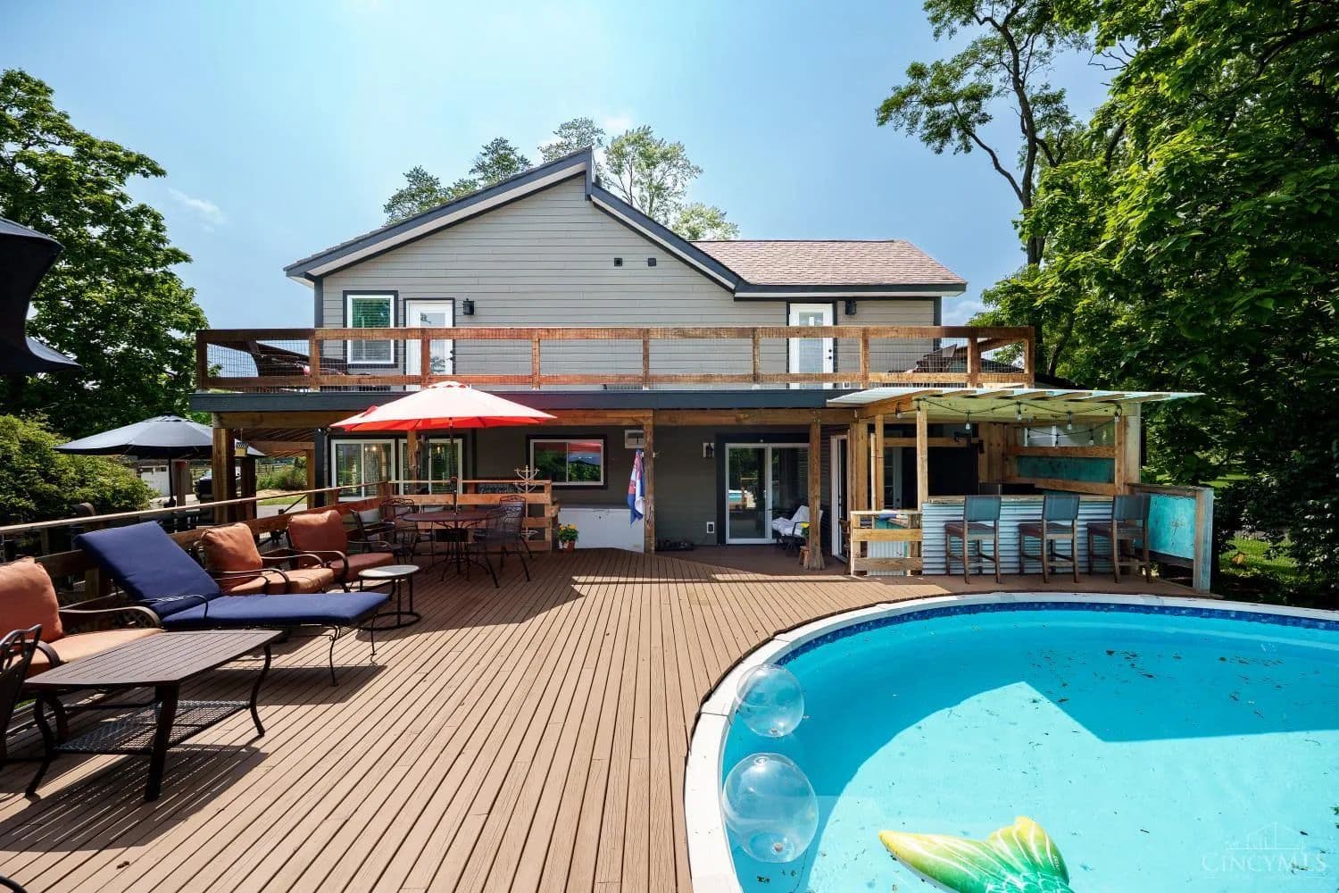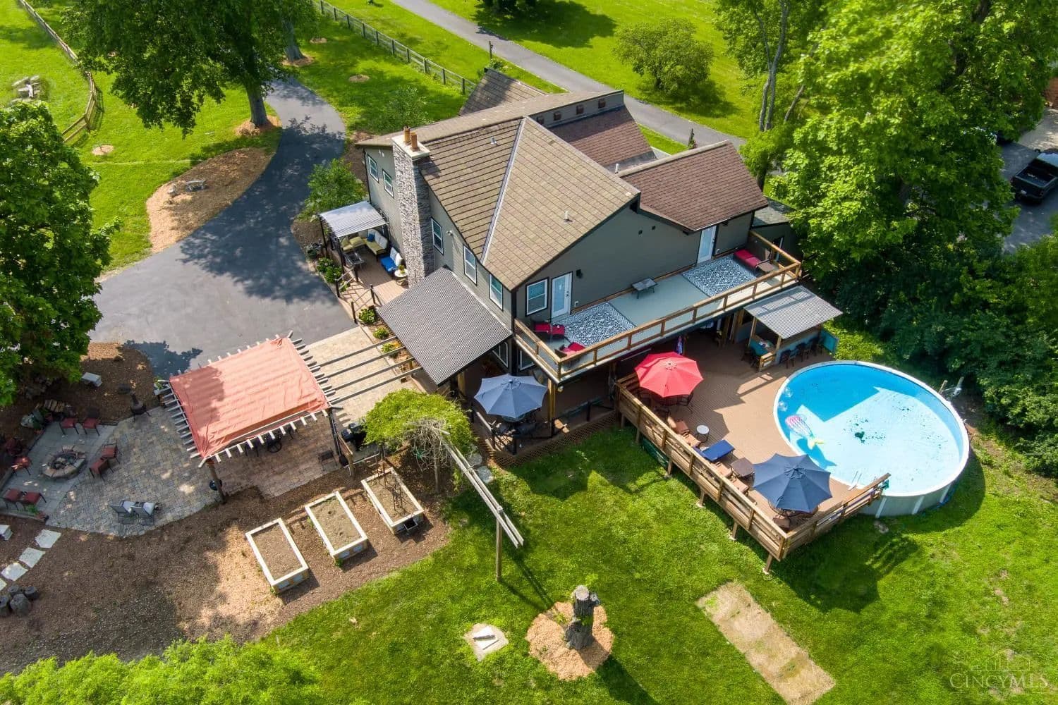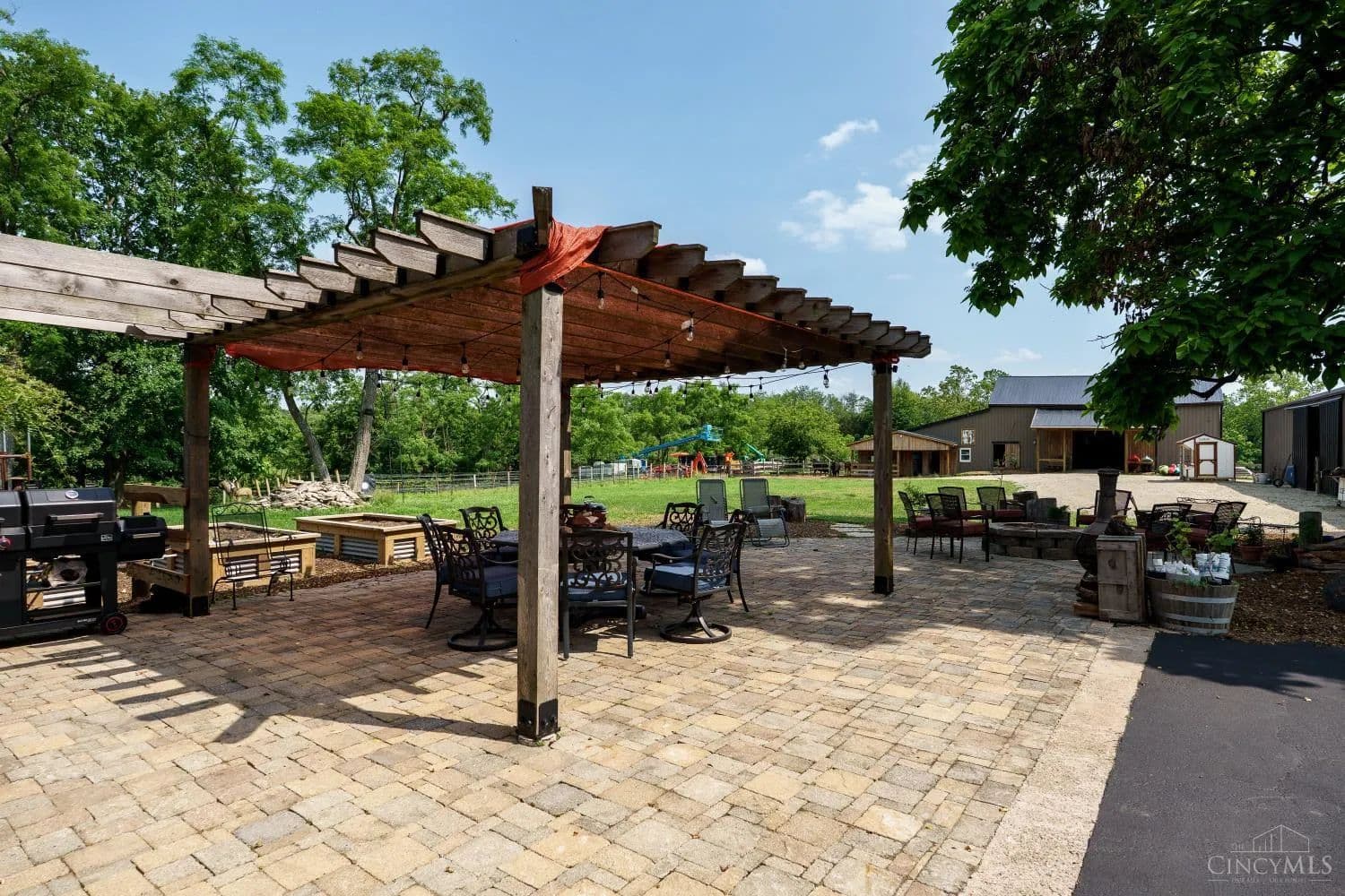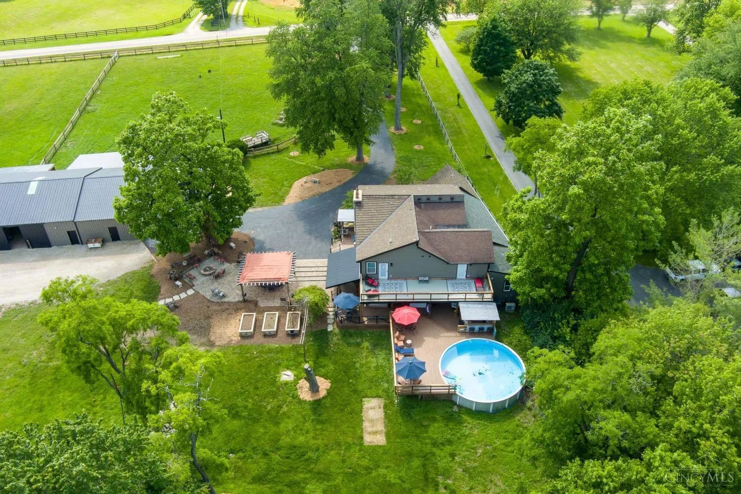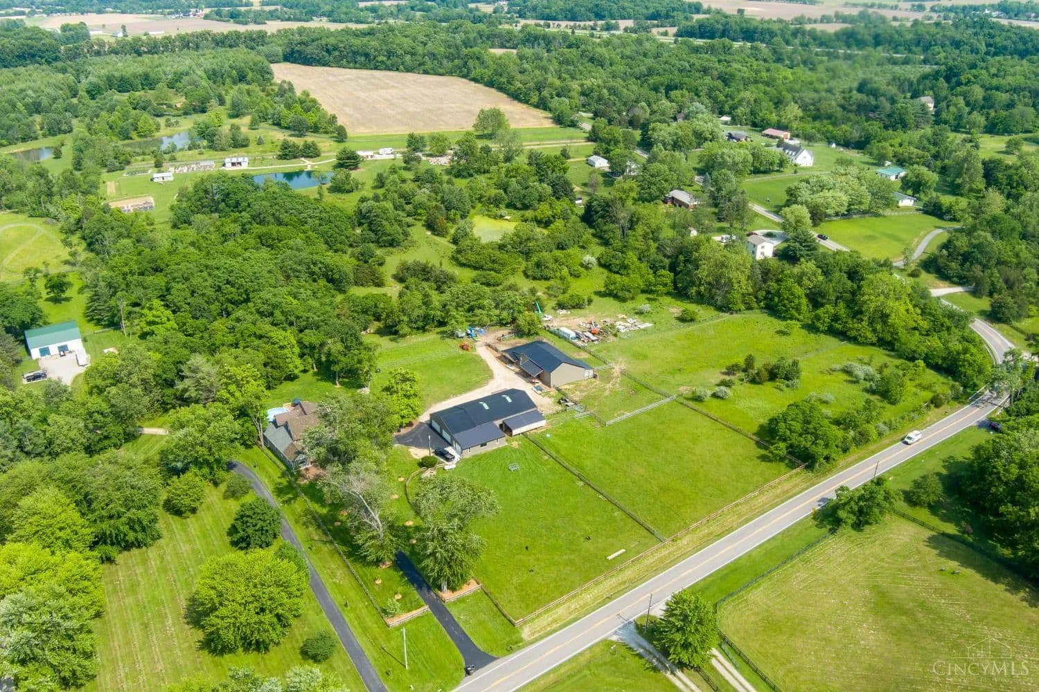 Welcome to you own private oasis! This beautiful unique 4 bed/4-1/2 bath modernized and expanded farmhouse has over 4163 sf with new addition that could be MIL or primary suite! Structures include 4 car garage, 2 barns, and addition that is currently a workout room. 15.667 fully fenced acres has 6 separate pastures including back area wooded along with a creek and fishing pond. Vineyard planted in 2023 with grape vines. Recent improvements include painting of all structures including house, new roof on wooden barn, stained decks/porches, driveway seal, gravel, and pressure washing barn interiors and paint. Above ground pool with cabana, fire pit, gazebo, and wrap around porch make for excellent entertaining spaces. Close to 71, Caesar's Creek, and the Little Miami River! Too much to list! See Today! Coming soon! Agent related to sellers