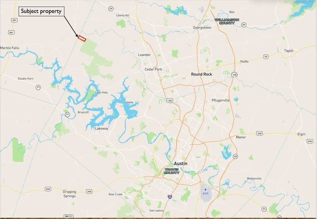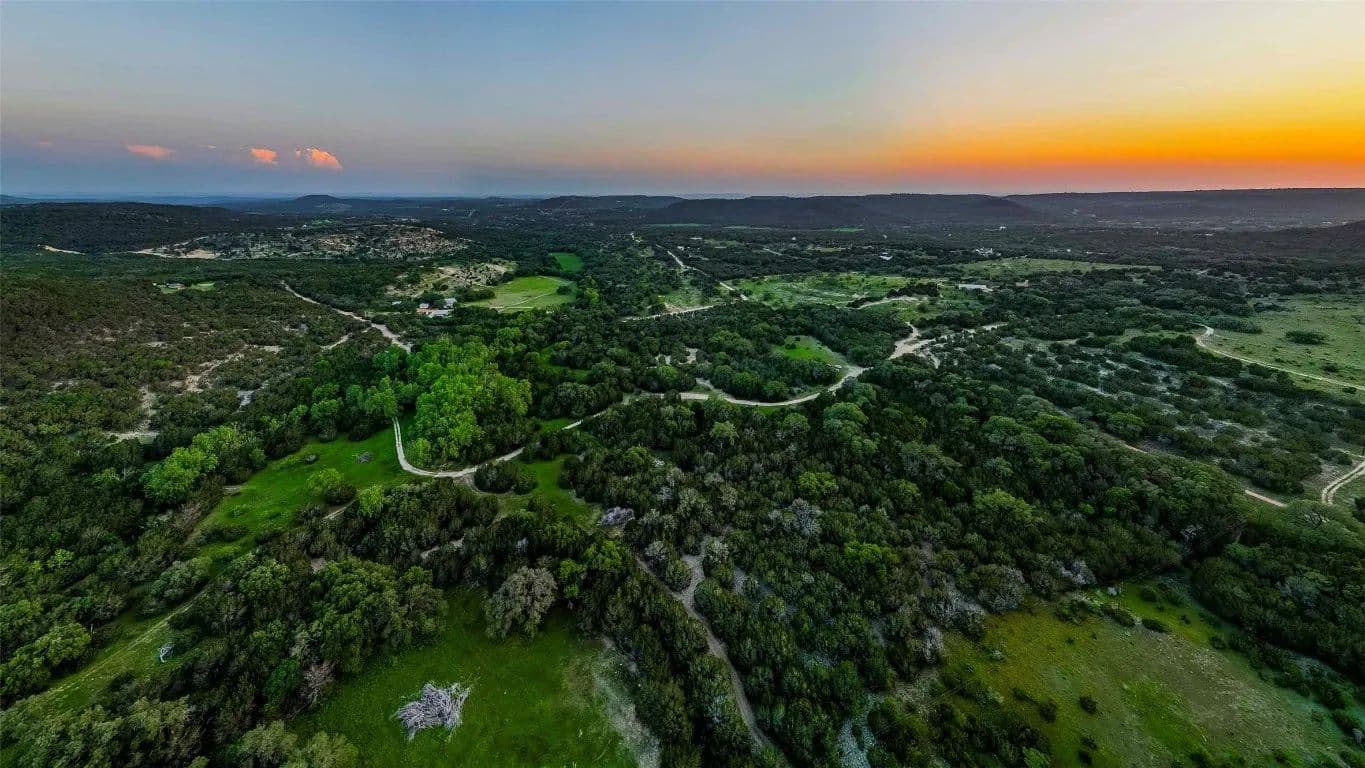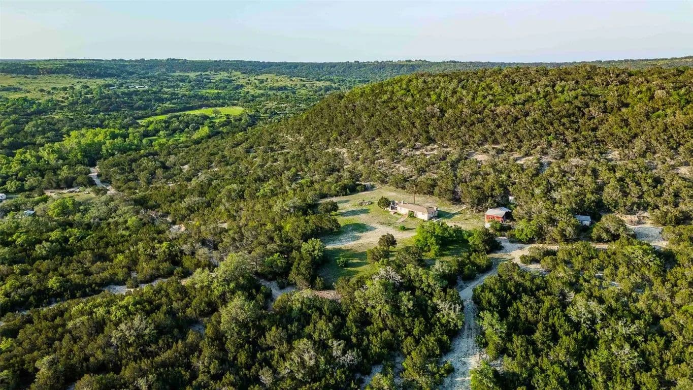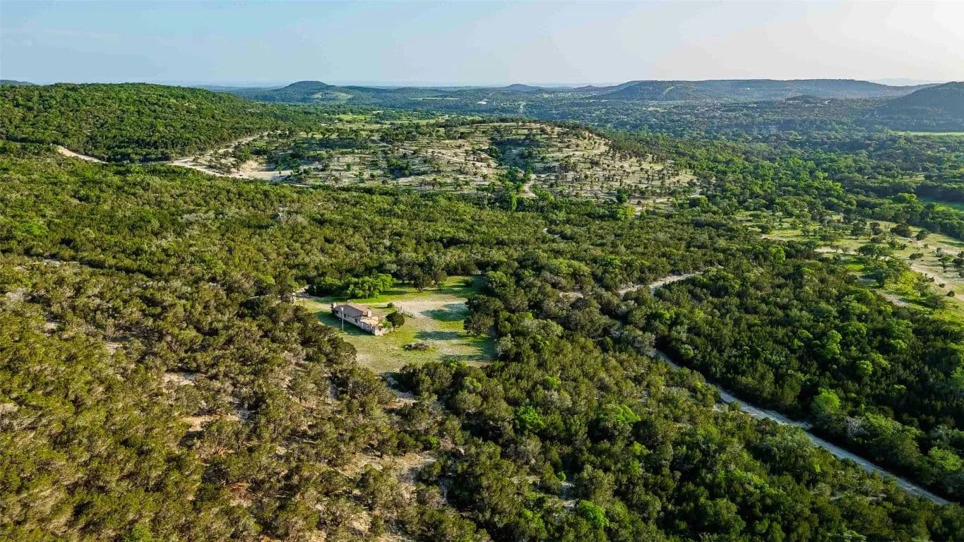This 405-acre Hill Country ranch is surrounded on two sides by the Balcones Canyonlands National Wildlife Refuge. The property is located in the Balcones Canyonlands area, just east of Marble Falls and just on the western edge of Travis County. The area is well known for its spectacular Hill Country views and scenic countryside and this property has it all. It is unrestricted, rugged and ready for new ownership. Potential uses include a family recreational ranch or homesite, subdivision into large tract homesites or commercial operations such as glamping, rental cabins or other recreational type development. The property includes a 1400 sqft livable cabin with water well, electric and septic and two smaller, approximately 500 sqft cabins that need work.