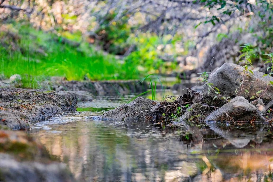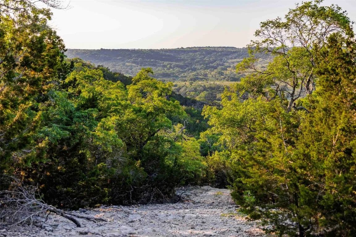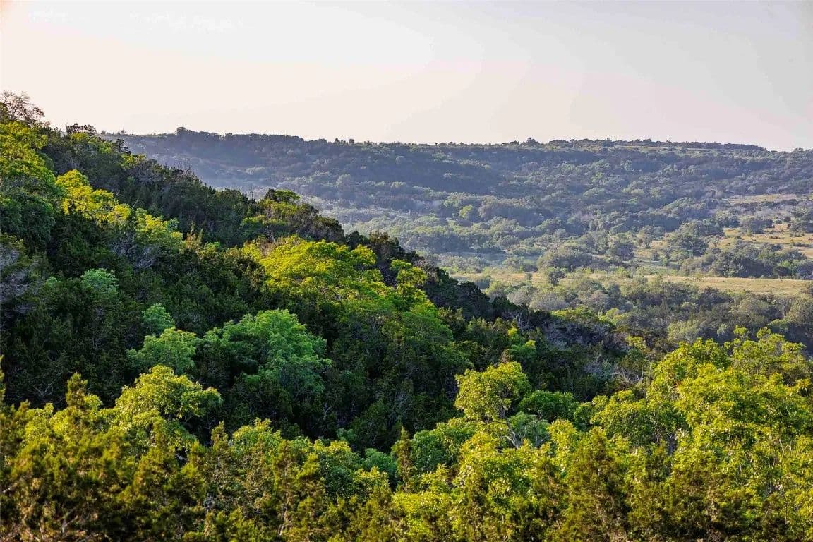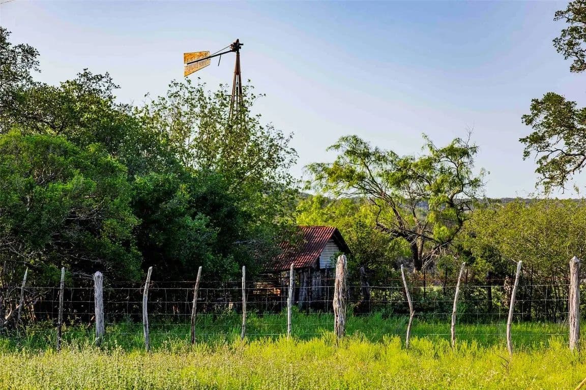 Wet weather Cottonwood Branch Creek runs through the property and drains into the well-known live water Cow Creek not far away. Elevations range over 320 feet on the ranch from a low of 1,020 feet at the bottom of Cottonwood Branch on the south side of the property to a high elevation of 1,340 feet on the northeast part of the property. These elevations allow for panoramic views of the surrounding Hill Country with multiple high locations and multiple canyons. The terrain is rough, rocky and dramatic and includes some very interesting limestone shelfs and outcrops. The soil supports native oak, elm, juniper, and mesquite trees as well as native grasses and other vegetation. Wildlife includes whitetail deer, coyotes, turkeys, mourning dove, and many other native wildlife species. The property is currently used for grazing and recreation.