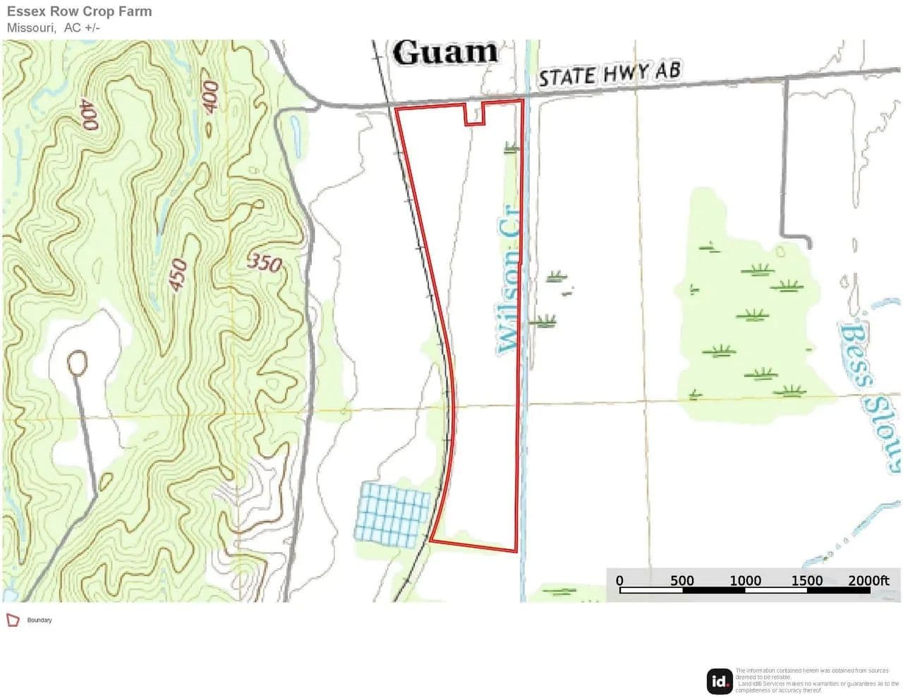 55+/- acres of tillable row-crop ground located in Stoddard County near Essex, Missouri, with frontage along State Highway AB. This mostly open, workable tract offers excellent agricultural use and investment potential. The land is well suited for continued row-crop production and provides easy access for equipment and farming operations. Conveniently located in Southeast Missouri’s prime farming region, this property is ideal for farmers looking to expand acreage or investors seeking quality tillable ground.
