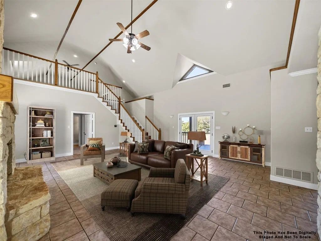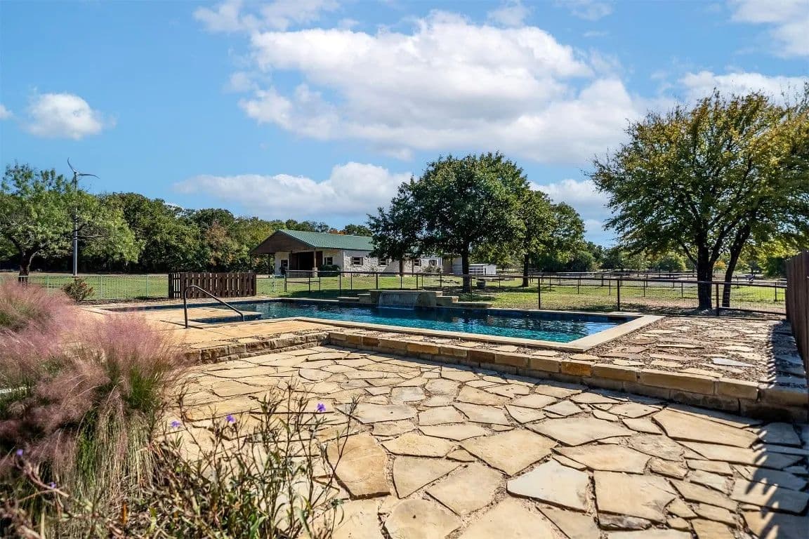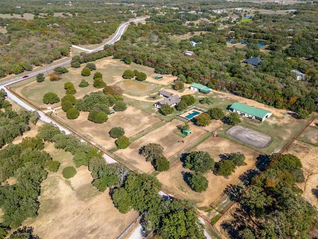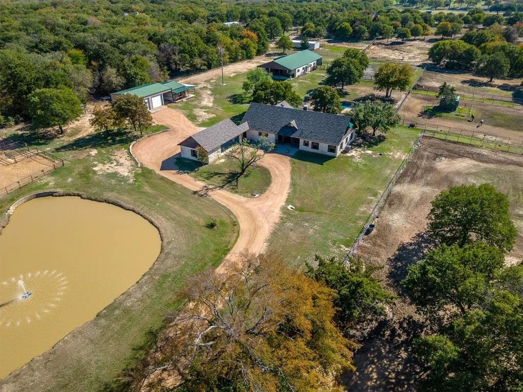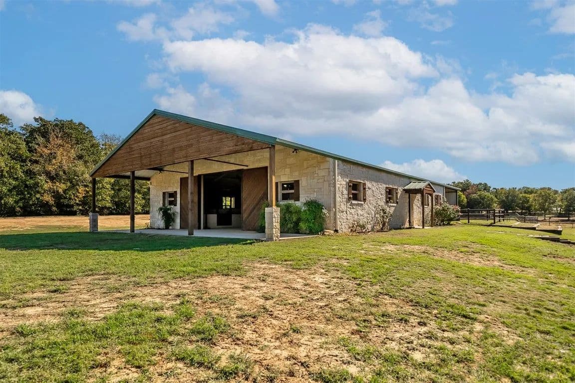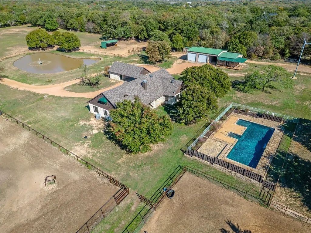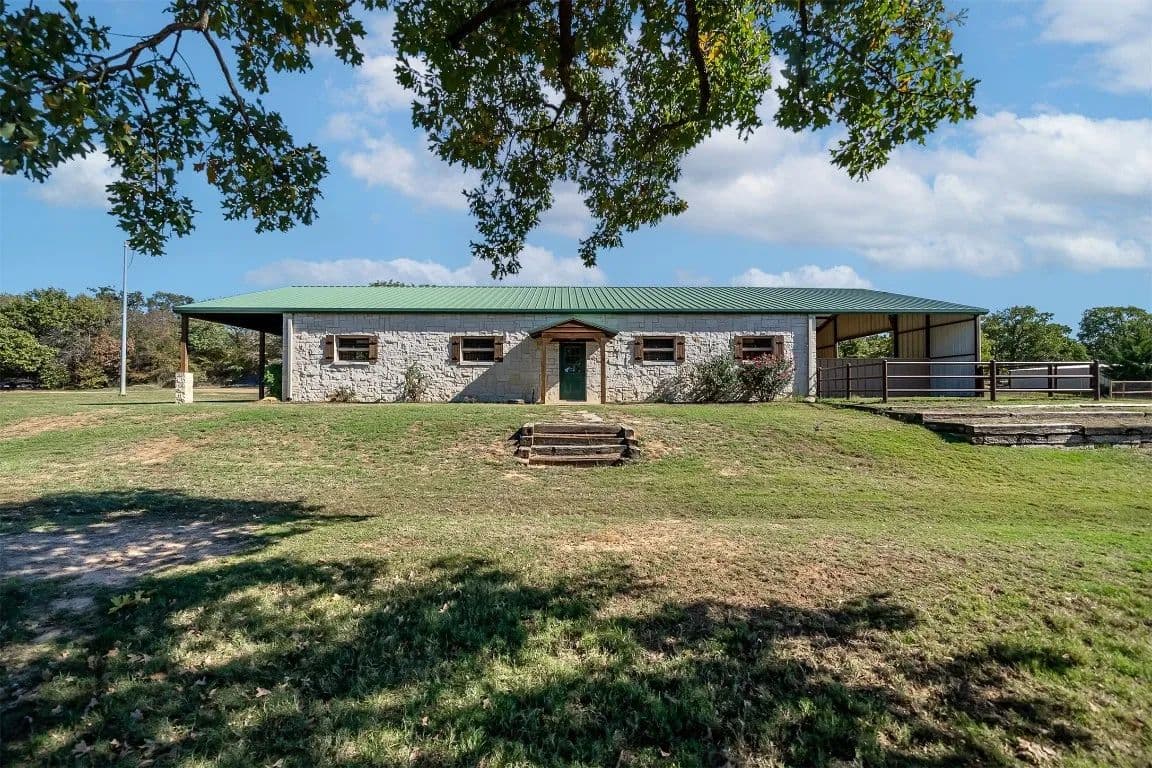Perfect for equestrian enthusiasts, this meticulously maintained 10-acre horse property features an impressive Austin Stone home, a sparkling in-ground pool, and a top-notch insulated 5-stall block barn equipped with all the amenities, bathroom, and extra storage area. The residence features an inviting open atmosphere, three spacious ensuite bedrooms, and a loft that overlooks the main living area with a stone fireplace. Additionally, the property offers multiple pipe turn-out lots with loafing sheds, an outdoor arena, a well-appointed insulated workshop with two overhead doors, a covered storage area, and an adjoining studio complete with half-bath, heat & air, and addl storage. A pond, a deep private water well, and community water further enhance the appeal of this exceptional property. Conveniently situated approximately 5 miles east of I-35 and just 1 mile west of Johnson Branch State Park on Lake Ray Roberts, this property boasts a prime location with frontage along Lone Oak Rd.