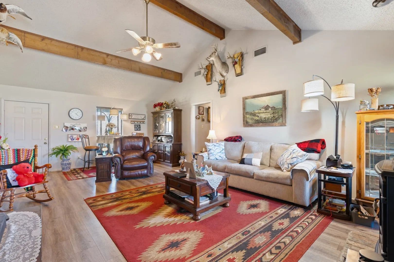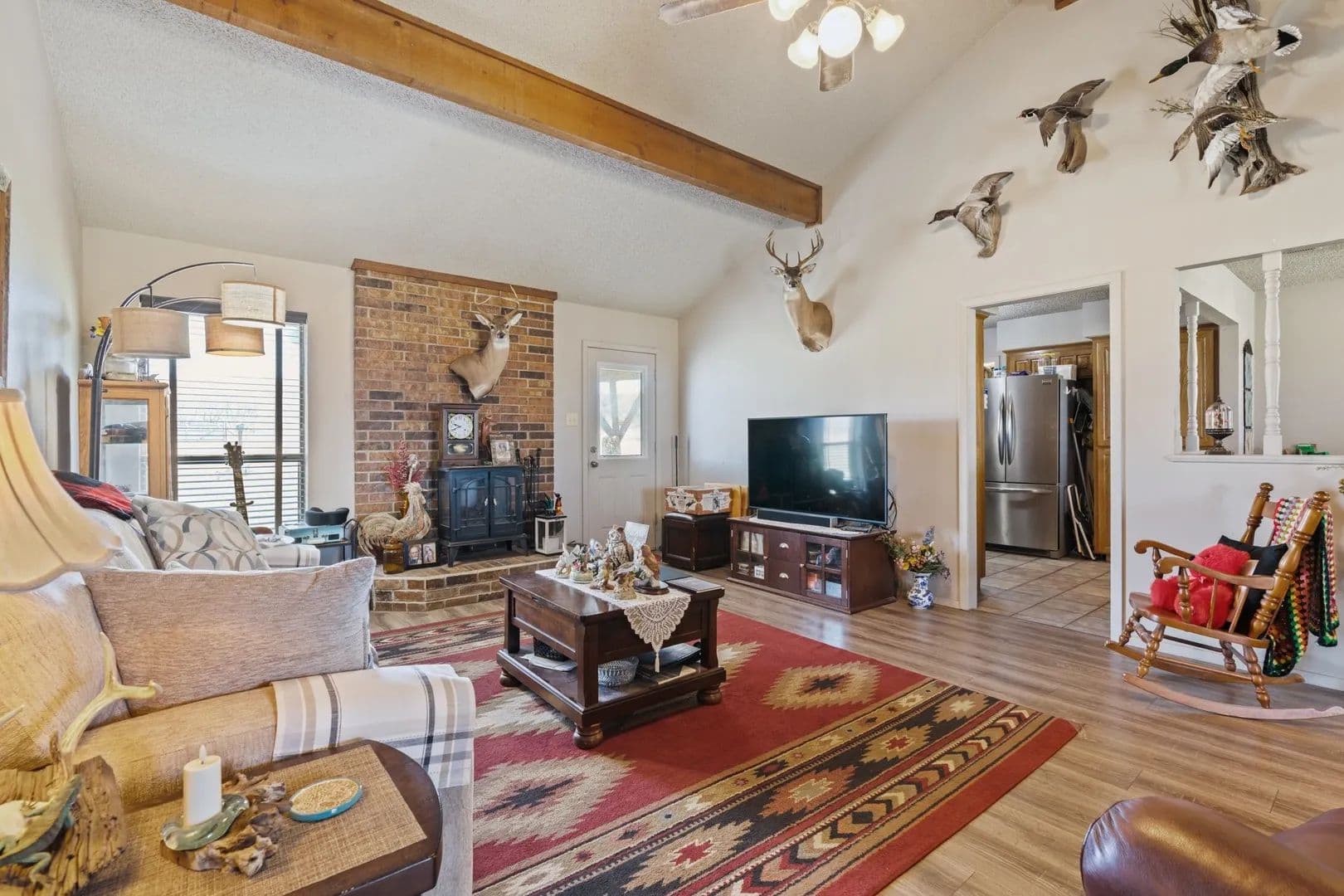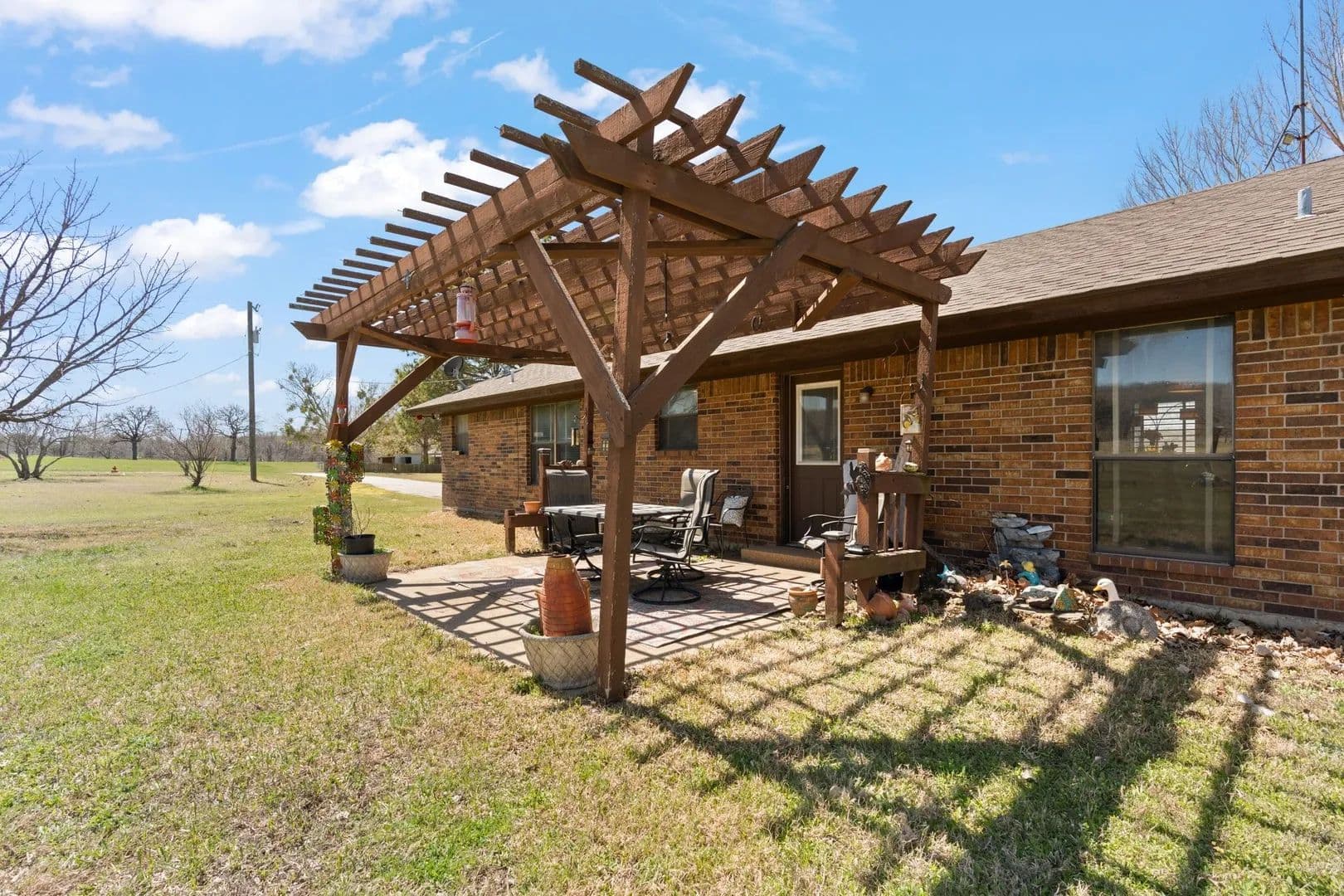 Discover the perfect blend of country living and modern comfort on this stunning 62-acre ranch. This property features a 3-bedroom, 2-bathroom home with a spacious kitchen that seamlessly opens to a cozy breakfast room. The formal dining room is open to living area that has an electric stove, raised ceiling with exposed beams and this layout is ideal for both everyday living and entertaining. Great size bedrooms down the hall with storage space. Primary bedroom has walk in closet and ensuite bath with shower. Large vanity in second bathroom. Step outside to enjoy the pergola-covered back patio, perfect for relaxing and taking in the peaceful surroundings. The land itself is a dream, offering a mix of open pasture, mature trees, and a pond, ideal for livestock, horses, or recreation. Cross-fencing is already in place, providing easy management of animals. Hunters dream, dear, turkey and more on the property. The front has costal pastures used to cut hay.