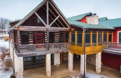 On this immaculate 3.5 acre lot just outside of Washington, Missouri sits this one-of-a-kind home that was built to stand out. Upon entering the 6,800 sq ft living space you’ll notice several breathtaking features including the reclaimed, hand-cut old growth logs from the 1700’s. Authentic is an understatement in Allenhaus estate. The kitchen and living room flow together with custom finishes, high end appliances, and 1 of 4 beautiful fireplaces. The kitchen is a chef’s dream. Complete with Vermont soap stone counters, Rutt cabinets, Danby marble counter-island, and a butlers pantry with a second refrigerator. Enter into the bright and cozy living room perfect for entertaining family and guests. The custom Clark Glaser masonry fireplace is perfectly constructed and draws your attention right away. If 4 fireplaces aren't enough, this home is equipped with warm board radiant heating in the floors on the main level as well as geothermal and zoned forced air. The master suite is the perfect place to relax and rejuvenate with it’s spa quality bathroom with a custom shower and large walk-in closet with washer and dryer hookups. Two other bedrooms, office, and mudroom complete the main floor while the upstairs hosts three more bedrooms, and a beautiful sitting area overlooking the kitchen below. The lower level is pristine with stamped concrete throughout, a kitchenette, and the perfect place to build and infinity pool out back. There is also plenty of space in the 2 story workshop for your tools and hobbies. Allenhaus Estate is made of the only architectural grade sandstone in the Midwest. The decking is all aromatic Eastern Red Cedar complete with a screened in porch with another custom fireplace to keep you warm year round. This beautiful home is your opportunity at one of a kind luxury living.