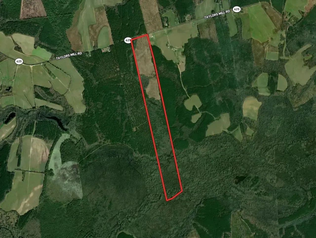 Welcome to an exceptional opportunity to own a sprawling 107-acre parcel conveniently located near I-95. With 700 feet of frontage along Taylors Mill Road, this property offers the perfect setting for your dream home, a weekend getaway cabin, or a private recreational retreat. Soil maps indicate a strong possibility for a conventional septic system, making development straightforward and cost-effective.