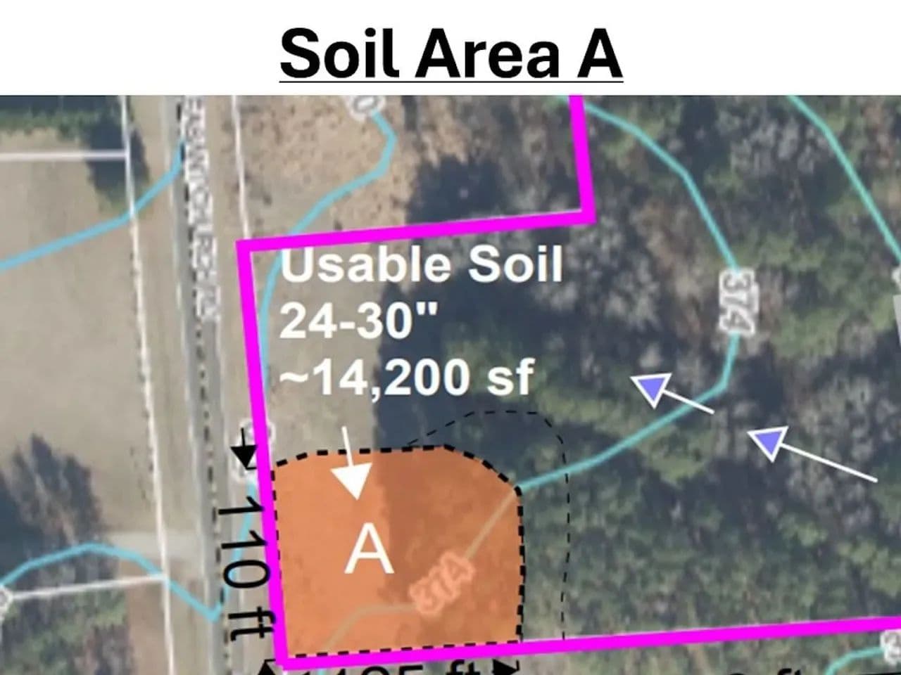 A recent soil study shows two areas of viable soils for up to a four bedroom conventional septic system along the southern boundary of the property. These were the only two areas tested leaving the chance that more acceptable soils could be found in the central and northern areas. Not only does this bode well for a single family residence, but it shows there is the option for development possibilities as well.
