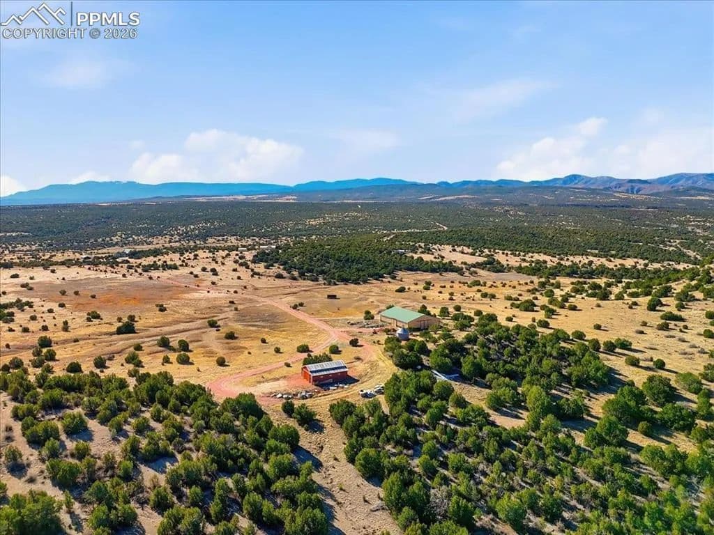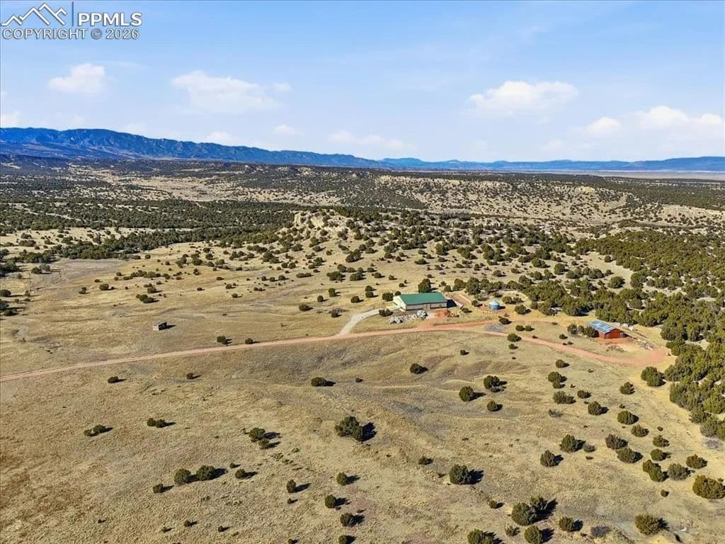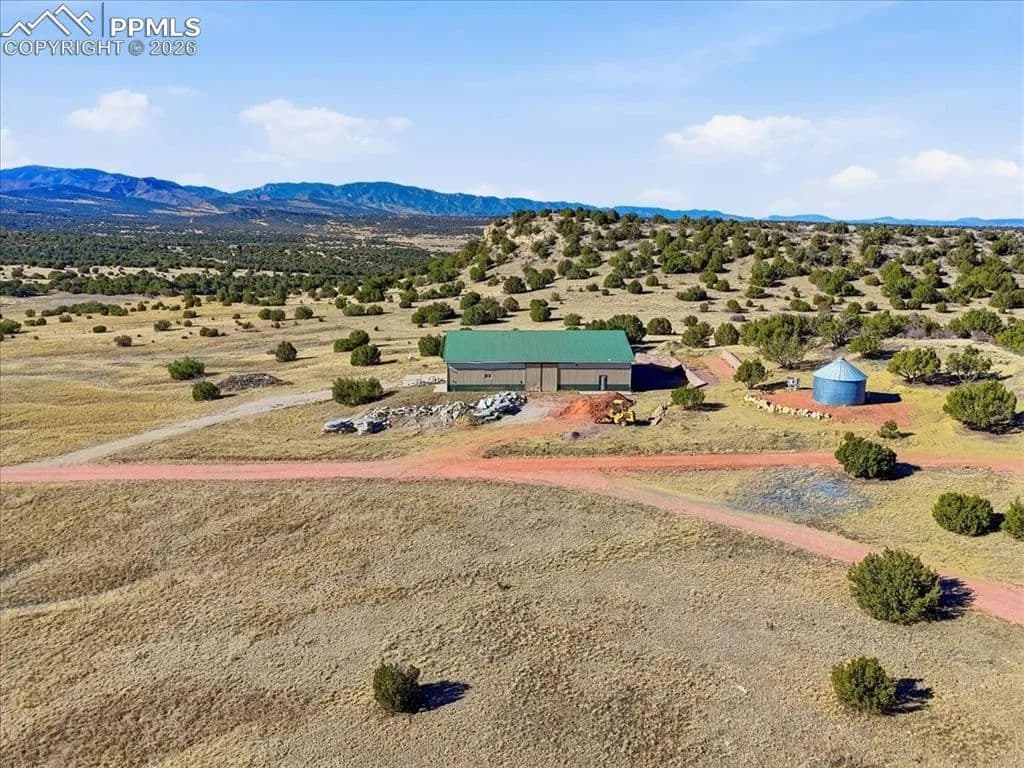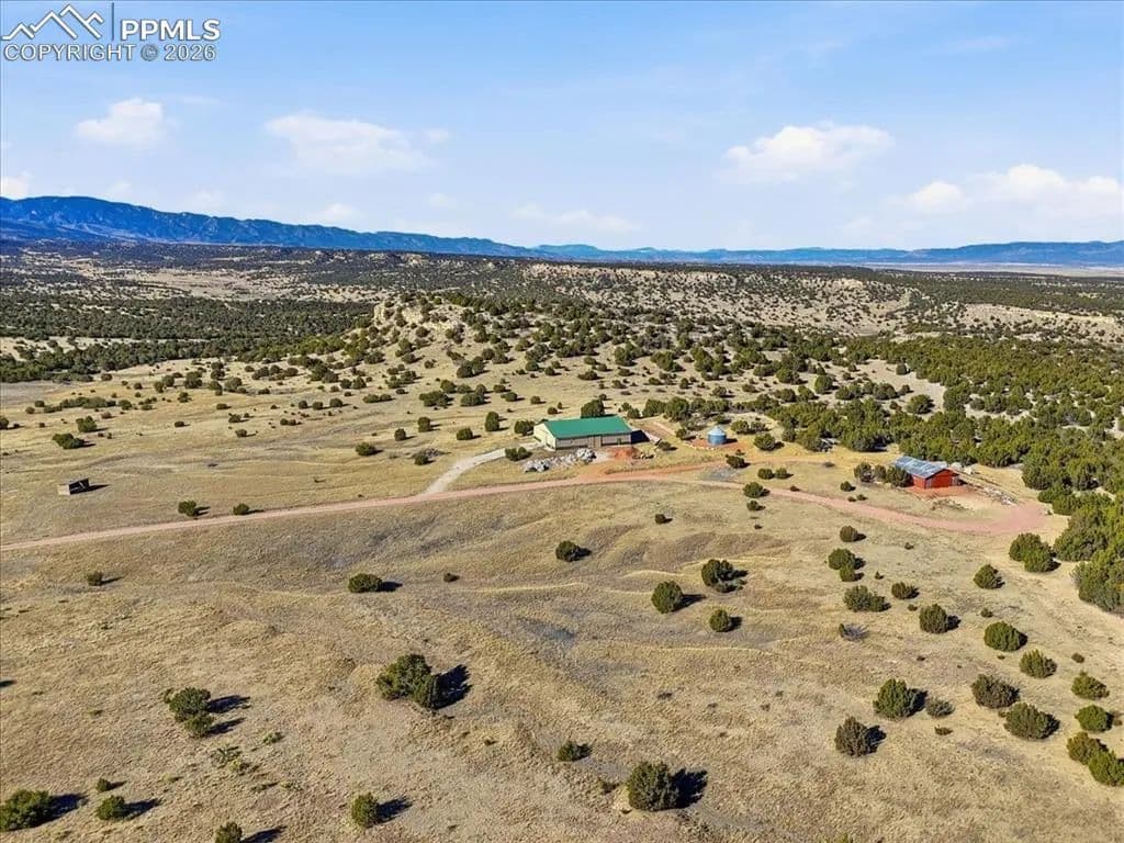Scenic investment property with expansive mountain views, featuring Pikes Peak to the north and the Wet Mountains to the southwest. Property includes a 4,800 SF pole barn with electricity, ideal for a barndominium conversion, equipment storage, or future income-producing use. Additional improvements include an 18’ round grain bin with electricity and a newly finished 1,280 SF dry barn with electricity and ready for water hookup. Infrastructure is in place with electricity on property, a well that feeds a 2,000-gallon cistern, and perk holes dug and ready for a septic inspection, reducing development time and costs. Property includes a grazing lease. Excellent opportunity for ranching, hobby farming, barndominium living, or long-term land investment.Don’t miss the opportunity to own a slice of Southern Colorado with endless possibilities!