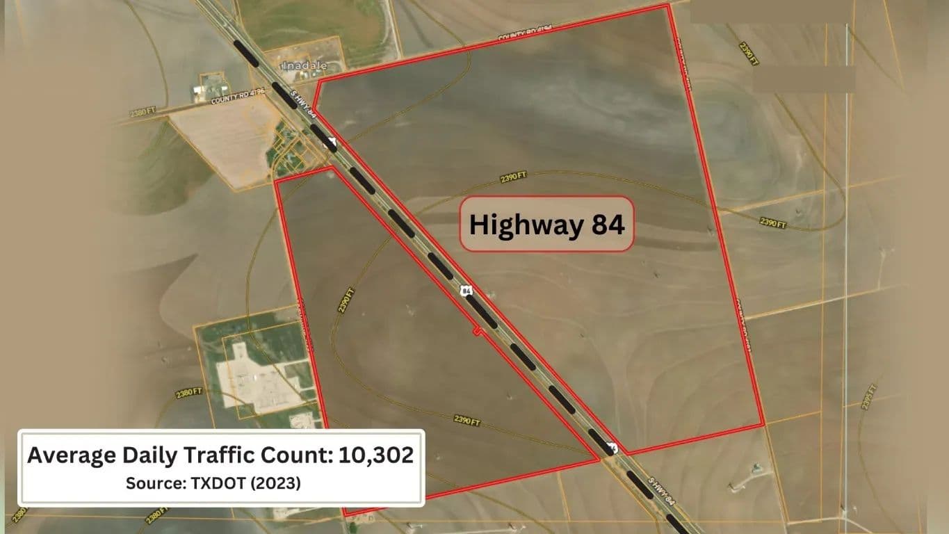 This 591-acre North Central Texas Farm is located in the southeast corner of Scurry County and on the edge of Nolan and Fisher Counties. The property is located ~17 miles NW of Sweetwater and ~20 miles SE of Snyder. It is bisected by State Highway 84 with roughly 396 acres on the NE side of Hwy 84 and 195 acres on the SW side of Hwy 84. Over 1 mile of frontage on divided State Highway 84 and 4,200 feet of frontage on County Road 466.
