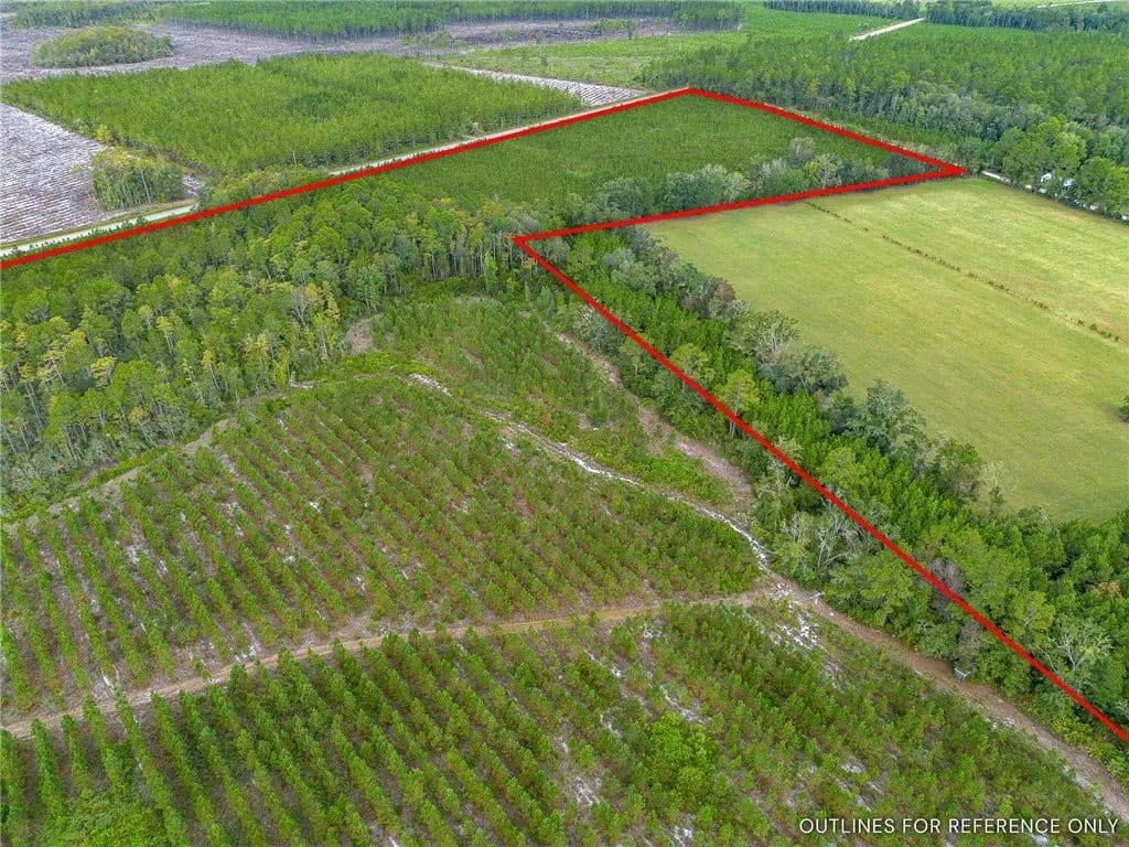 Scattered with majestic live oaks and covered mostly in young, healthy planted pines, the land provides both shade and long-term value. With plenty of road frontage, power on-site, and easy access, this property is ready for your next venture.