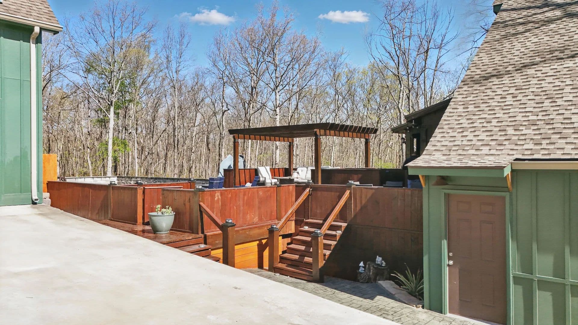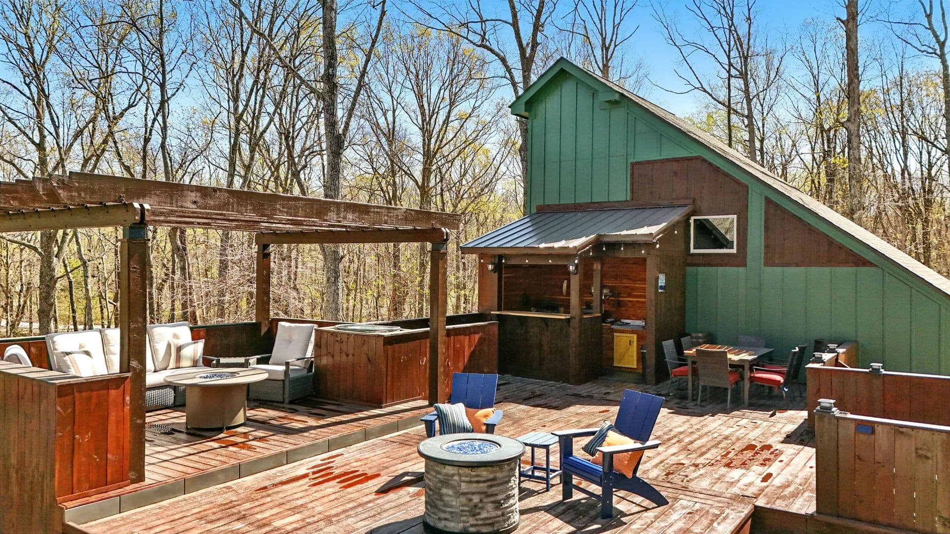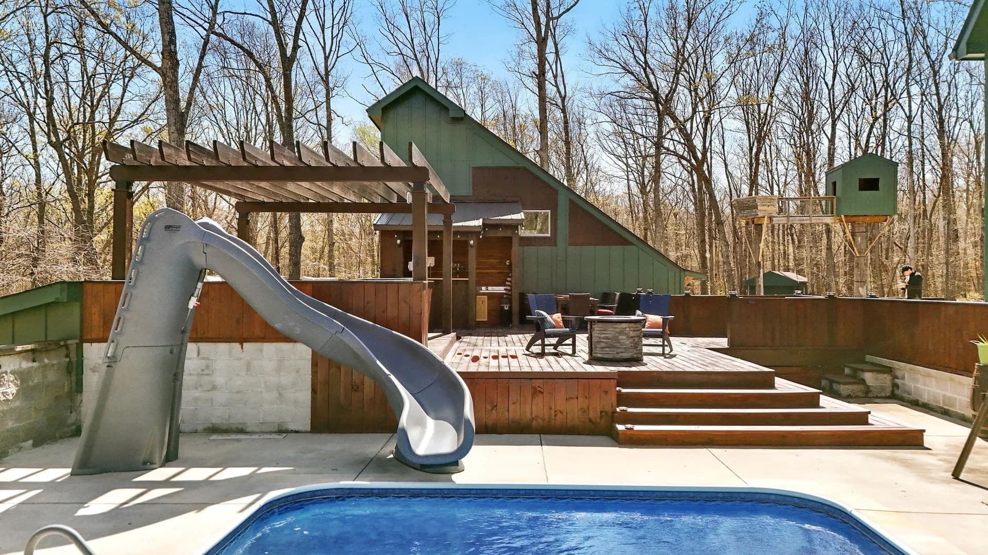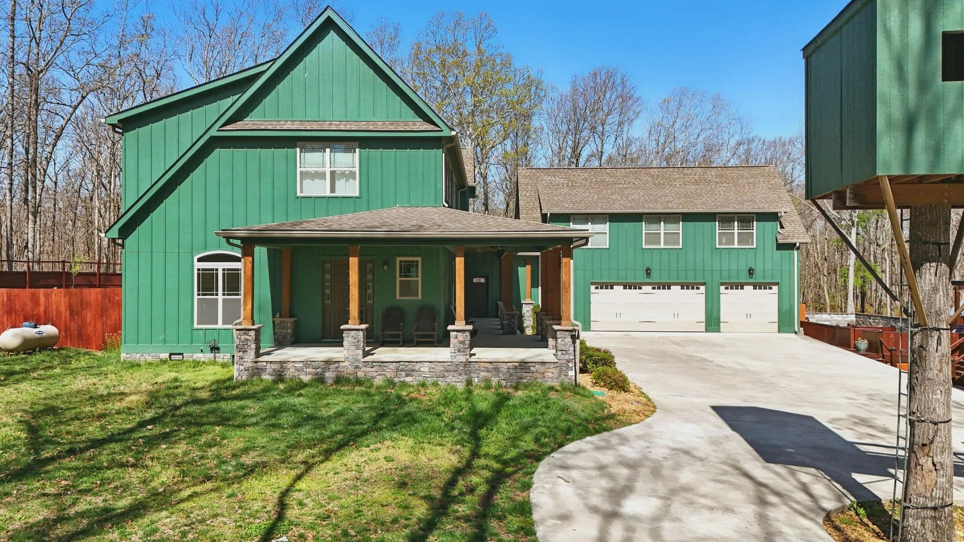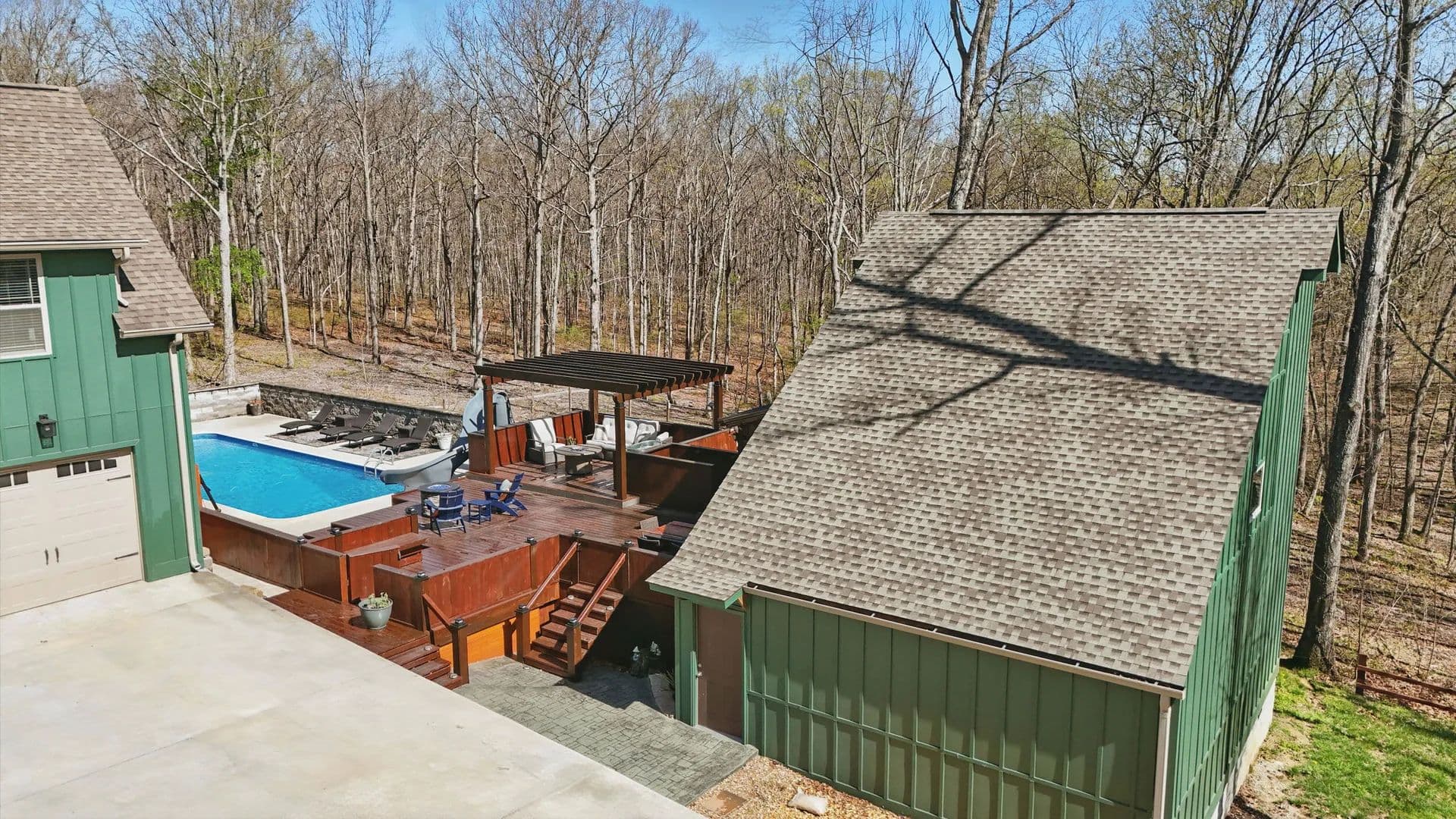 Welcome to the Daydreamer, a rustically chic mountaintop resort you're going to love! This property offers acreage and privacy with 5,000 sq. ft. of living space, including a separate apartment. Enjoy a park-like setting featuring a pool, cabana, outdoor kitchen, pergola, raised-bed organic gardens, a separate gym / sauna space / theater room, and wrap-around and screened porches—all on over seven acres with fruit trees, a ''she shed'' with power, and an actual treehouse that greets your guests at the circular drive. Additionally, there is a three acre green space with one of the community trailheads on the adjacent lot to the left of this property.