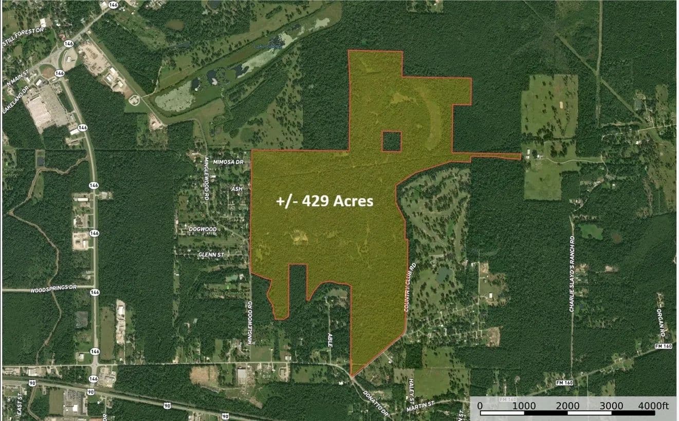 Mostly wooded acreage with development potential, fronting Liberty Municipal Golf Course and near SH-90/146 & SH-99 Grand Parkway. Located between Houston (43 mi) and Beaumont (41 mi), unrestricted, outside the floodplain, and ideal for residential, commercial, or recreational use.