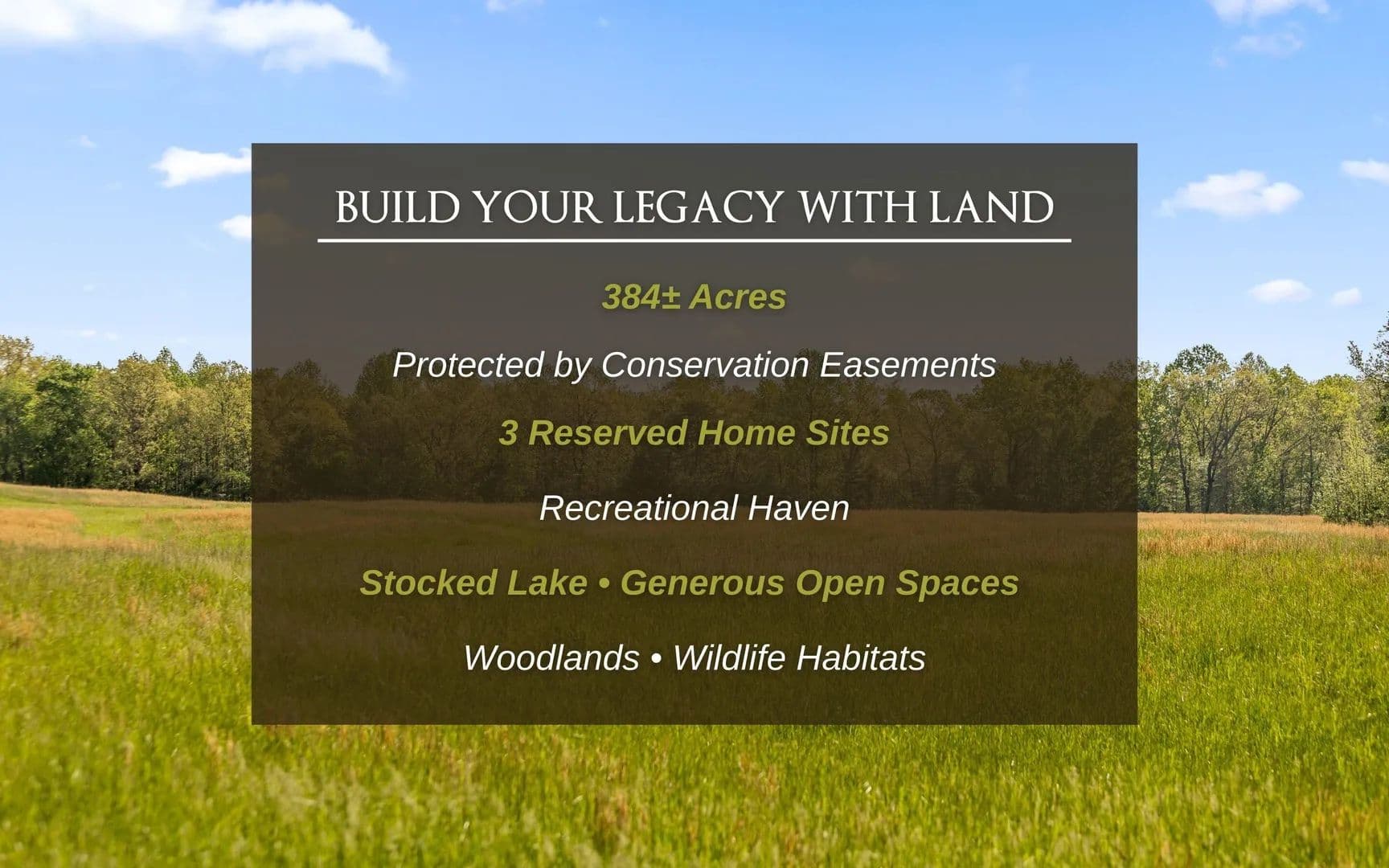 Teeming with wildlife, this property will be a haven for nature lovers, outdoorsmen, and discerning owners seeking to maximize all the unique opportunities a property of this caliber offers. Its natural beauty is protected forever through a Conservation Easement with 3 reserved building sites, giving you the freedom to build your dream home, a weekend cabin, or a gathering place for family and friends. Take advantage of the rolling topography, the open hardwoods, and immaculately-maintained lake front and pastures...immediately ready for hosting a classic Southern dove hunt, developing food plots and greenfields, or camping by the lake. Convenient to local attractions including Baggenstoss Birds and Clays, Baggenstoss Farms with campground, RV park, general store, and zip line. Just 8 minutes to I-24 and Monteagle. Explore picturesque Sewanee: home to charming shops, dining, arts, natural outdoor attractions, and acclaimed world-class liberal arts college The University of the South. Outdoor adventurers will appreciate proximity to over 8,000 acres in Franklin State Forest, Tims Ford Lake, and Mountain Goat Trail public hiking trail system...although you won't need to leave your property to embrace the East Tennessee lifestyle. Enjoy unique experiences like the Bluegrass Underground at The Caverns music venue. Less than 1 hour to Downtown Chattanooga, 1.5 hours to Nashville, and 1.5 hours to BNA Nashville International Airport.
