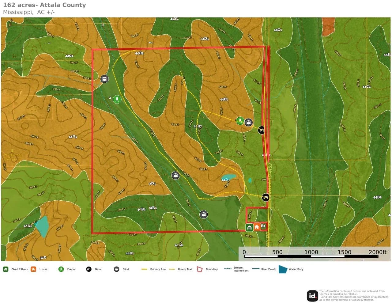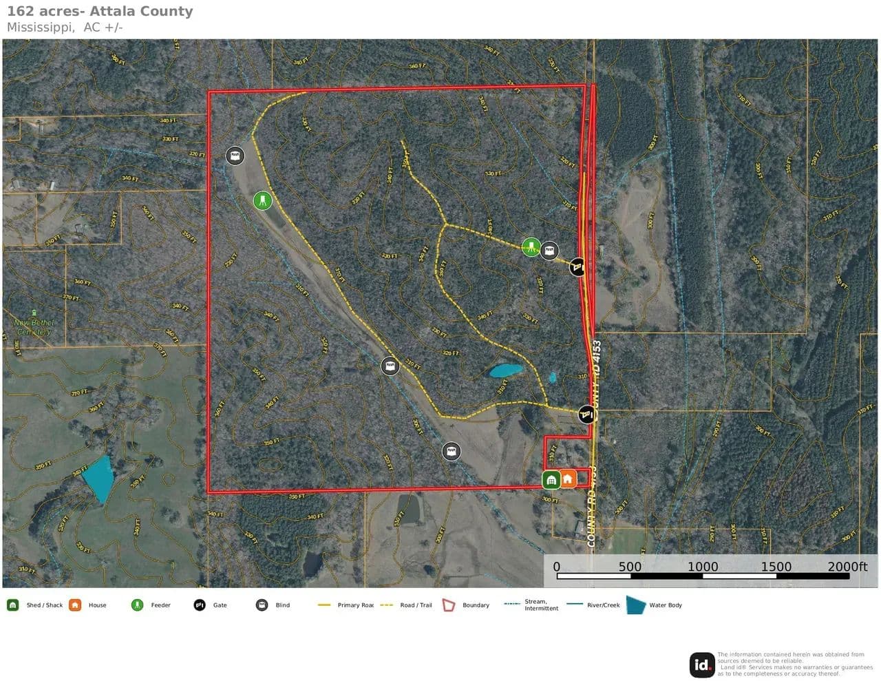 A well-maintained internal road system allows easy access throughout the property for hunting, land management, and recreation. With 2,100 feet of road frontage on Attala County Road 4153, access is convenient and flexible.