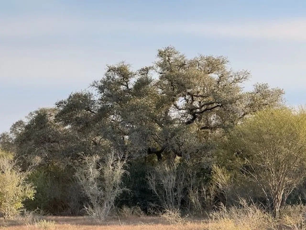 The land is relatively flat, out of the floodplain, and covered in native grasses, with an abundance of large, mature live oak trees, complemented by mesquite and scattered huisache brush. Multiple attractive building sites are available across the property, allowing buyers to position improvements to take full advantage of the oak canopy and open pasture views.