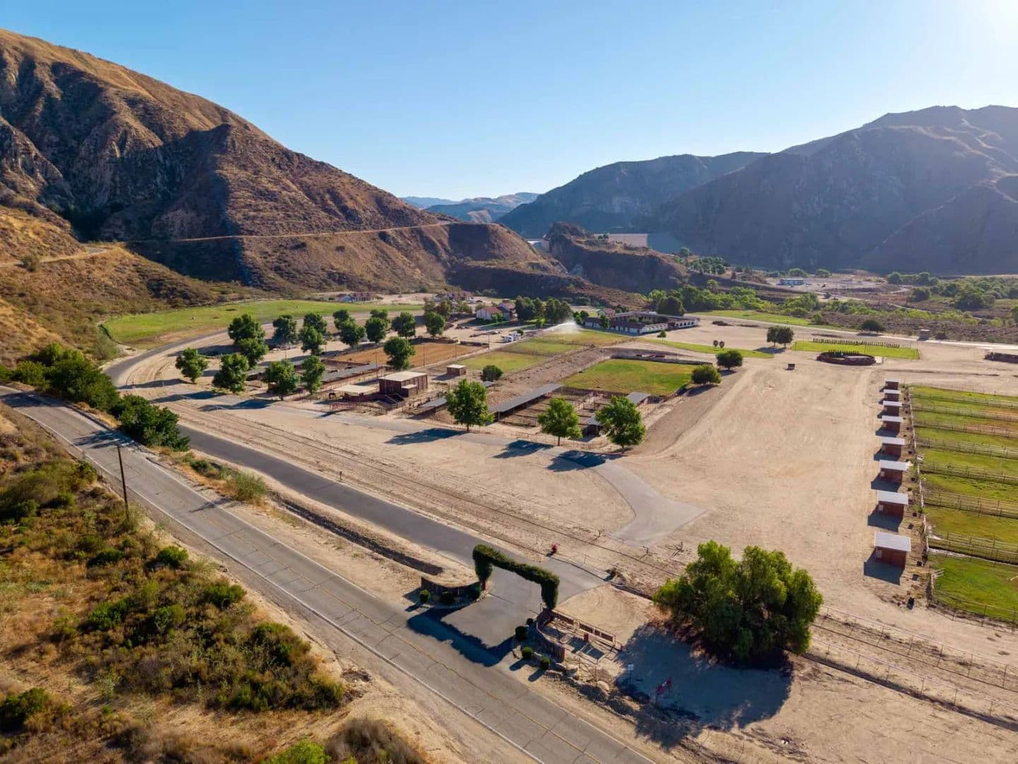 Rancho Temescal is located in Ventura County near the small community of Piru, roughly 45 minutes northwest of downtown Los Angeles and 60 miles southeast of Santa Barbara. The ranch is accessible via Piru Canyon Road, nestled in a secluded valley that rises into the surrounding foothills and mountains of the Topatopa Range and Los Padres National Forest. The terrain is diverse and visually striking, with sweeping meadows, oak-studded hills, citrus and avocado orchards, creek beds, and mountain vistas-all contributing to its unique and highly photogenic character. The ranch comprises over 5,620+/- acres, offering both seclusion and proximity to major southern California markets. The ranch benefits from a variety of income streams, including agriculture, oil and gas production, equestrian operations, an event venue, and film. Its sprawling landscape and location in the TMZ (the "Thirty Mile Zone") create strong incentives for Hollywood to use the ranch as a convenient and compelling filming location.