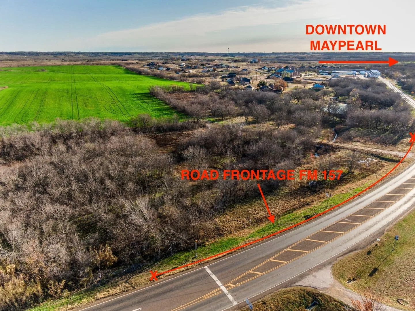 Located in the heart of Maypearl, this 10-acre lot offers the perfect blend of small-town charm and prime location AND 400 feet of road frontage off FM 157. Situated across the street from the high school and football stadium, and just minutes from downtown, this expansive property is brimming with potential. Whether you envision building your dream home, creating a private retreat, or exploring development opportunities, this lot delivers space, convenience, and endless possibilities. Don’t miss your chance to own a piece of Maypearl—this gem is the opportunity you've been waiting for!