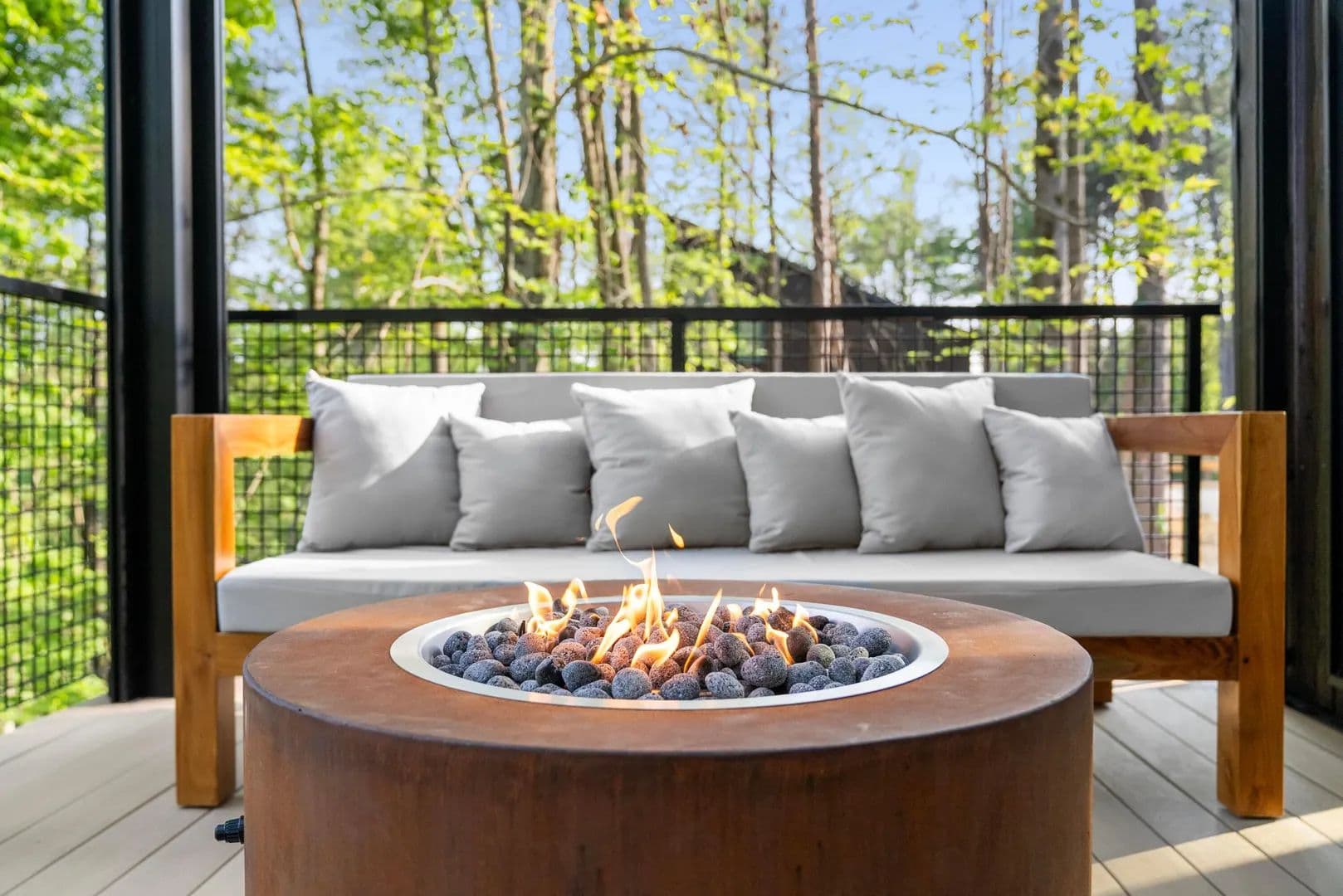Inside, you'll find a meticulously curated space featuring top-of-the-line designer furnishings, expansive open-concept living areas, and two elevated decks—perfect for morning coffee or sunset gatherings. Enjoy a private hot tub, a gas fire stand, and the immersive experience of nature from every room.