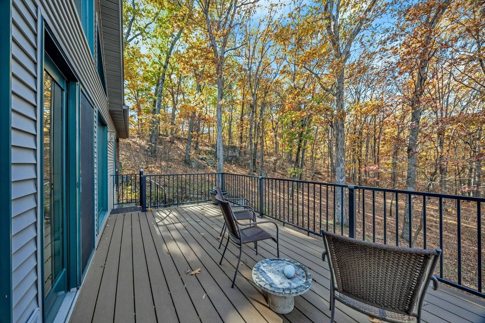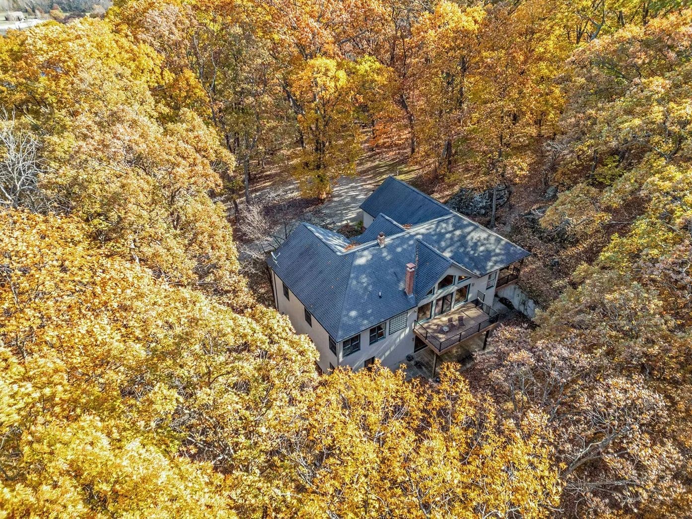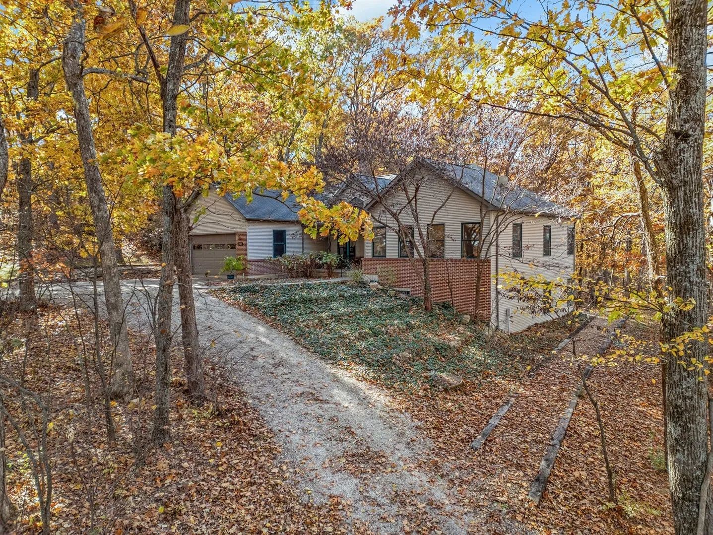 Experience peaceful country living in the Black Forest Subdivision just outside Hermann, Missouri. This inviting home rests on 24± wooded acres overlooking a stunning valley and offers access to a large, shared lake. Designed for comfort and efficiency, the home features 2x6 insulated walls, a geothermal HVAC system, and underground utilities. Inside, a welcoming foyer opens to a spacious common area that connects the living room, kitchen, and dining area, offering breathtaking woodland views. The main level offers convenient living, featuring a master suite, laundry area, and two additional bedrooms, along with an oversized two-car garage for easy access. The finished lower level features a family room, two additional bedrooms or office spaces, a workshop, and ample storage. Wood stoves on both levels provide cozy warmth in winter. Natural landscaping, bluffs, and boulders create a park-like setting where wildlife abounds, your own private forest retreat just minutes from Hermann.