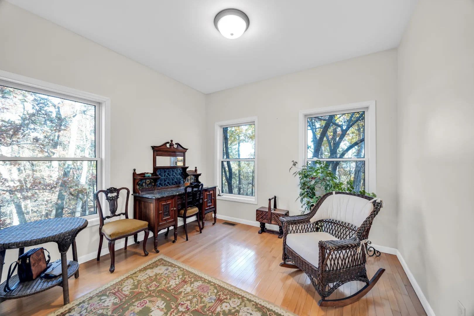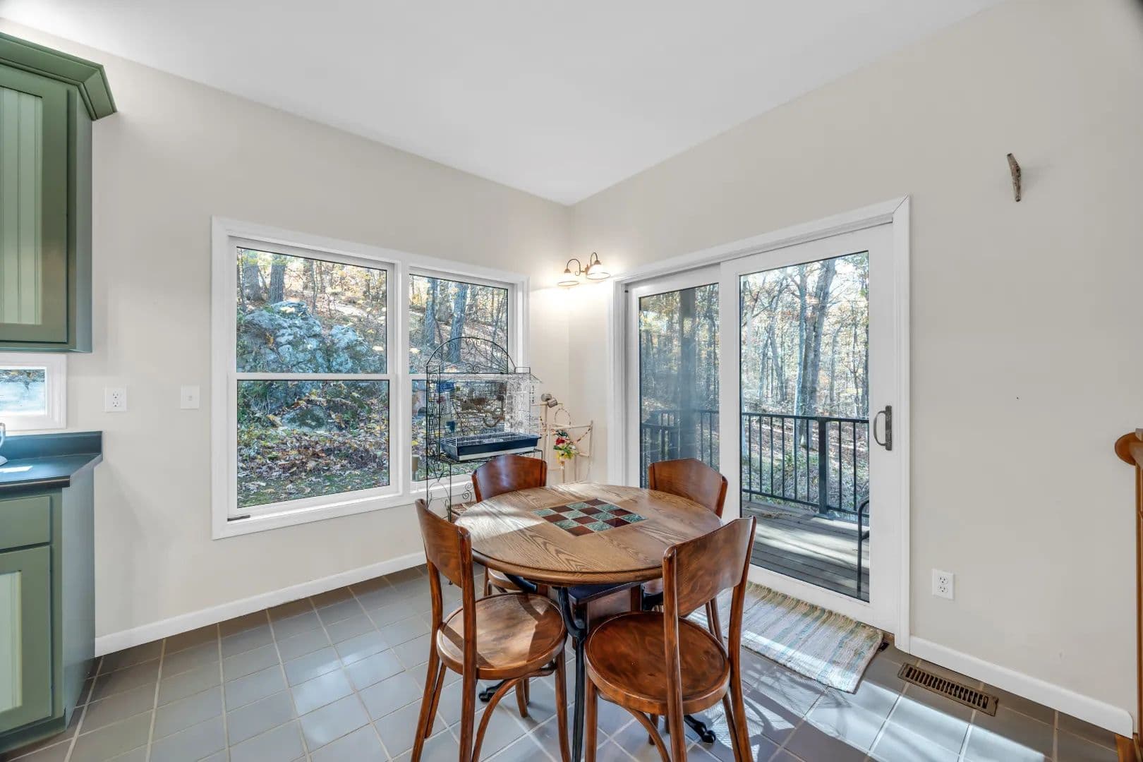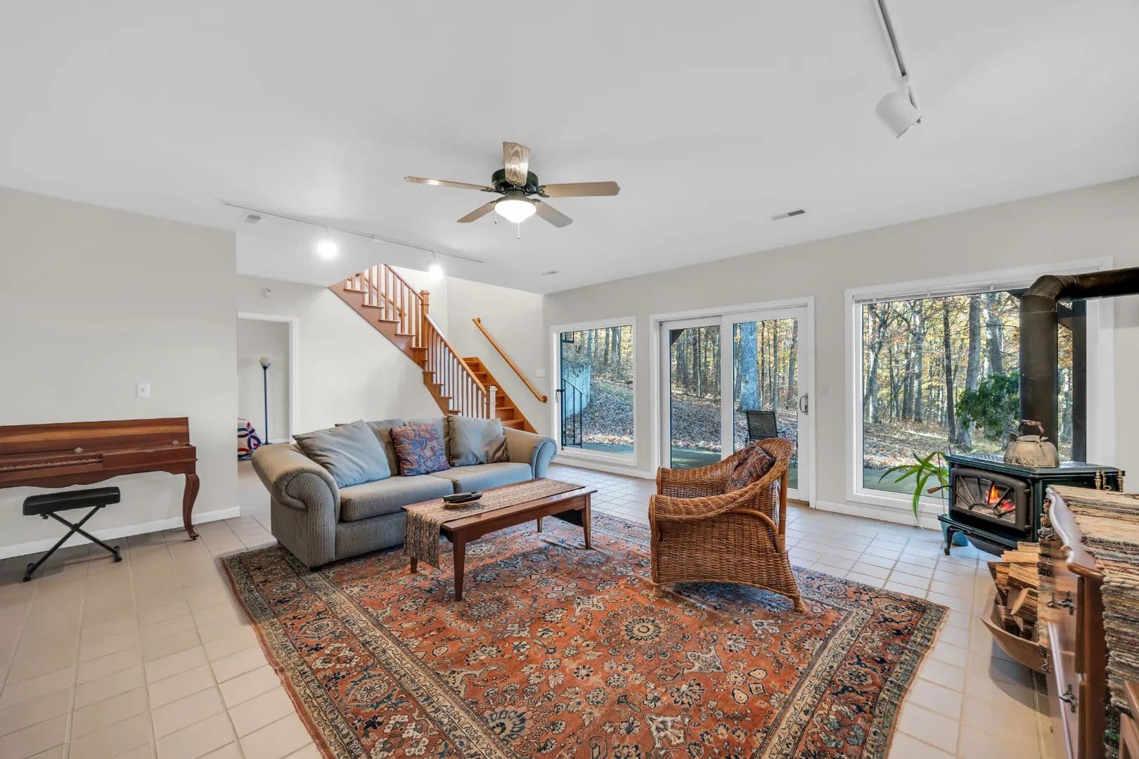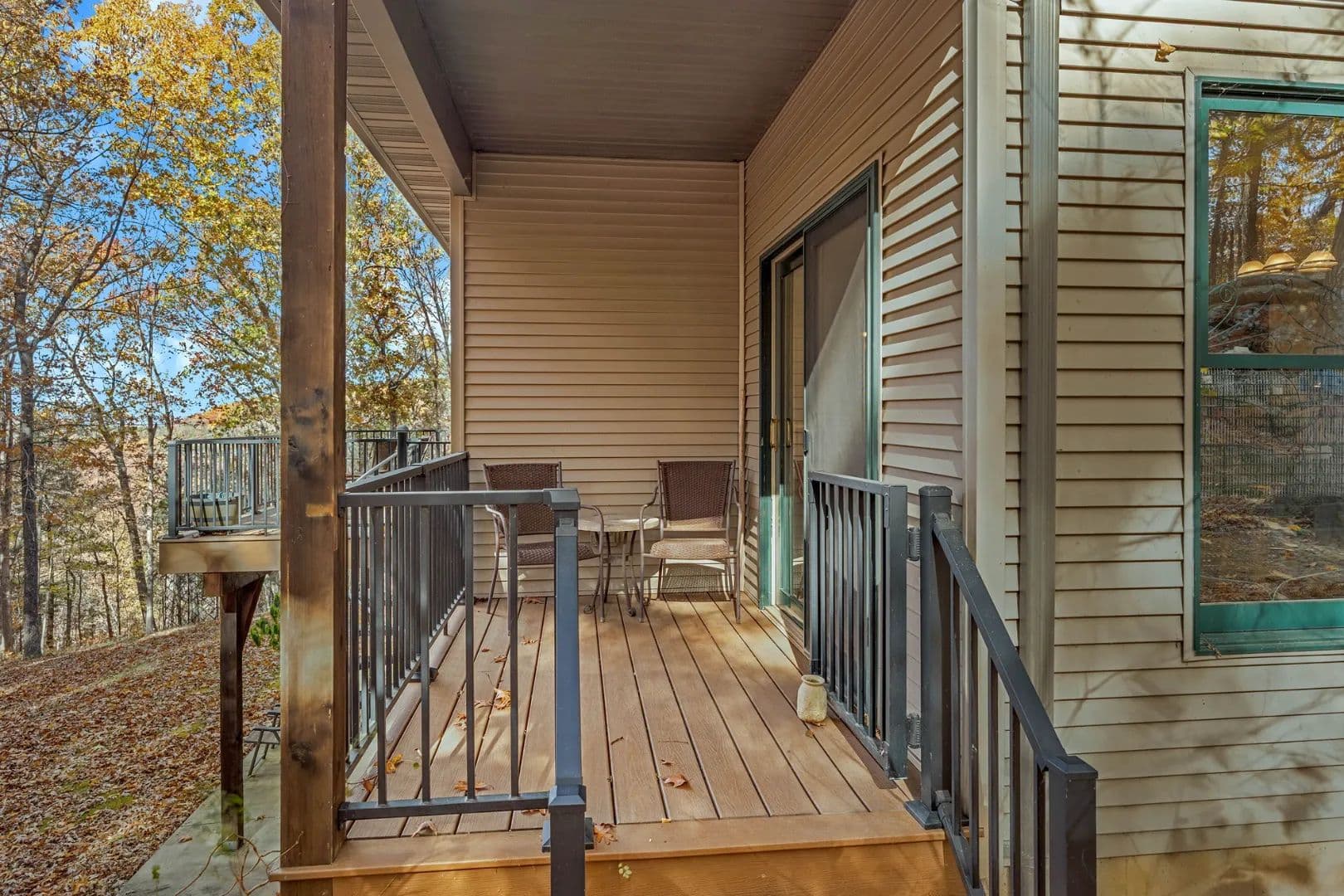 Experience peaceful country living in the Black Forest Subdivision just outside Hermann, Missouri. This inviting home rests on 24± wooded acres overlooking a stunning valley and offers access to a large, shared lake. Designed for comfort and efficiency, the home features 2x6 insulated walls, a geothermal HVAC system, and underground utilities. Inside, a welcoming foyer opens to a spacious common area that connects the living room, kitchen, and dining area, offering breathtaking woodland views. The main level offers convenient living, featuring a master suite, laundry area, and two additional bedrooms, along with an oversized two-car garage for easy access. The finished lower level features a family room, two additional bedrooms or office spaces, a workshop, and ample storage. Wood stoves on both levels provide cozy warmth in winter. Natural landscaping, bluffs, and boulders create a park-like setting where wildlife abounds, your own private forest retreat just minutes from Hermann.