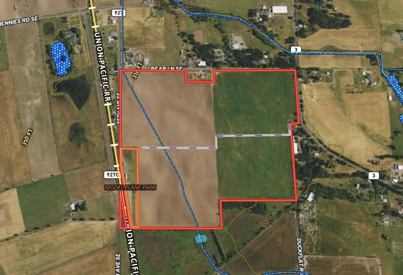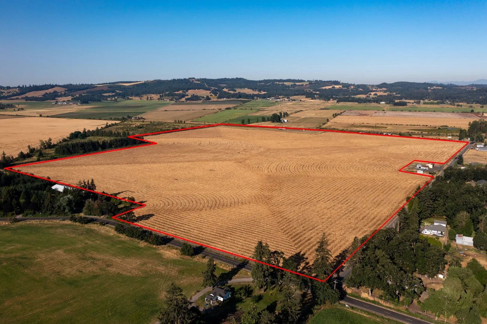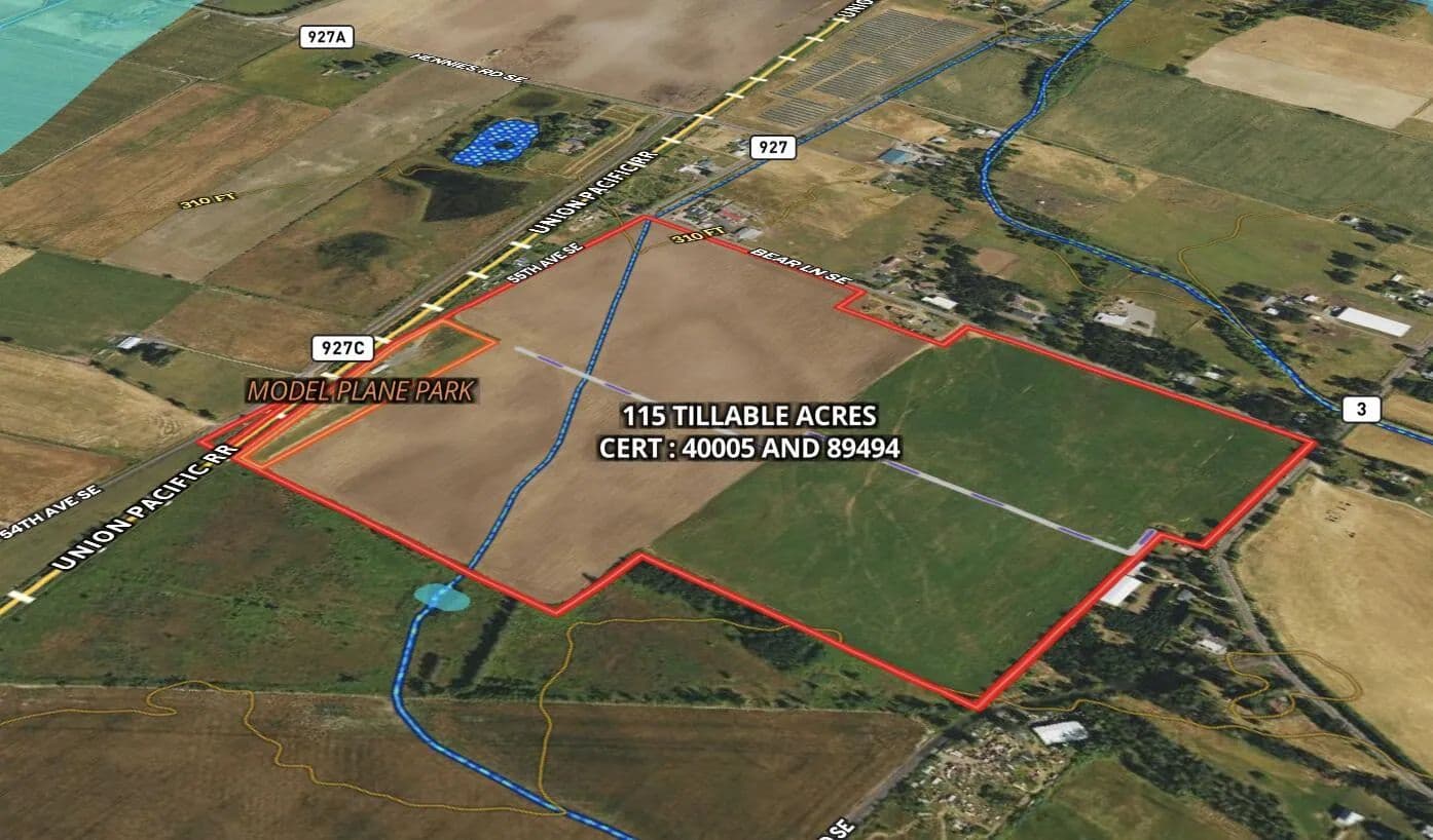 This 122-acre parcel with 115 tillable acres and zoned EFU (Exclusive Farm Use), providing a strong foundation for your next farm/ranch activities. Currently planted in grass seed, the land is well-maintained and productive, making it an ideal investment. The property has an irrigation well with 220 power. Two water rights equalling 124 acres cover the property. The outbuilding is leased to a model airplane race track.