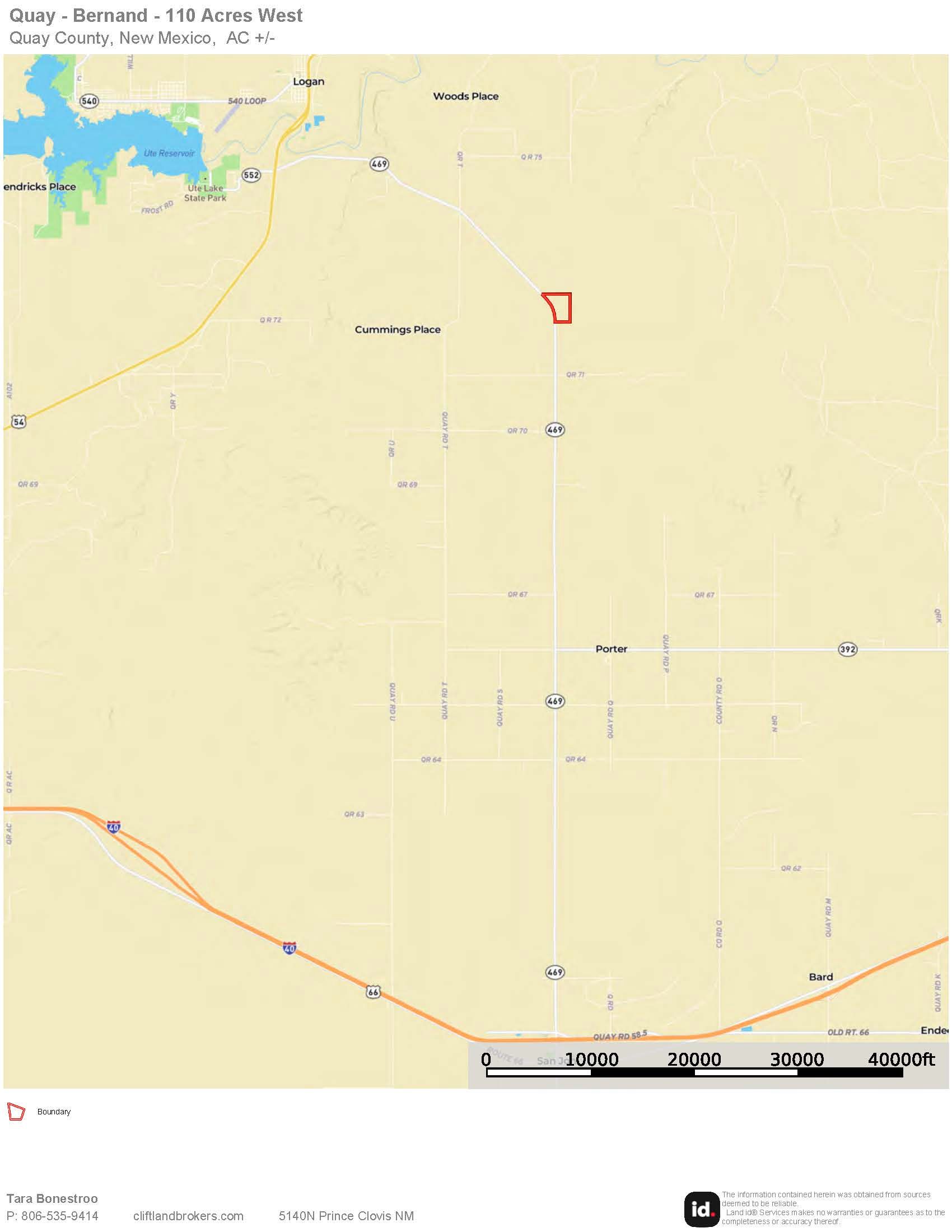 Located in Quay, New Mexico, approximately 14 miles north of San Jon, this ±110-acre tract offers established grassland currently enrolled in the Conservation Reserve Program (CRP). The property generates an annual rental payment of $19.57 per acre, providing steady income while preserving the integrity of the land. This tract presents an excellent opportunity for investors, neighboring landowners, or those seeking long-term agricultural holding with income potential.