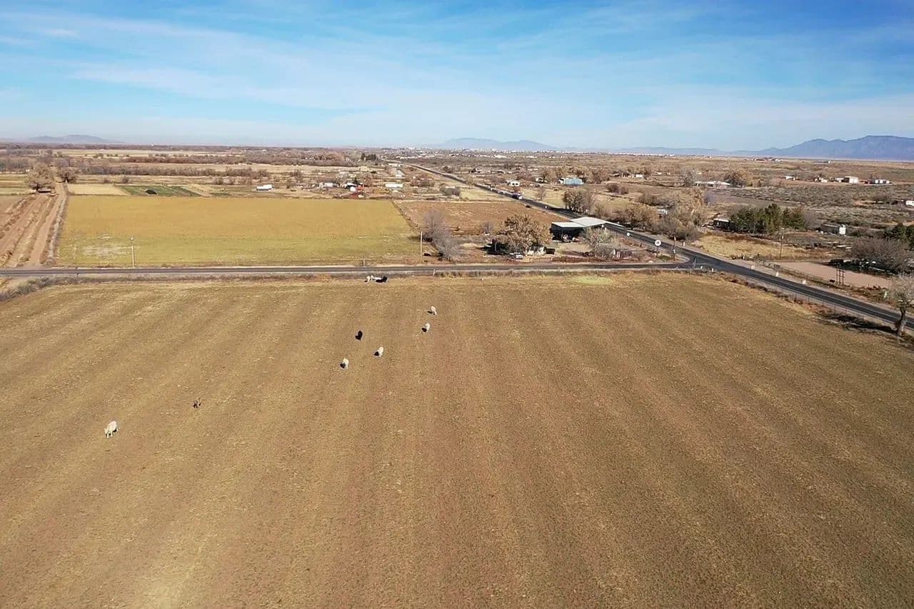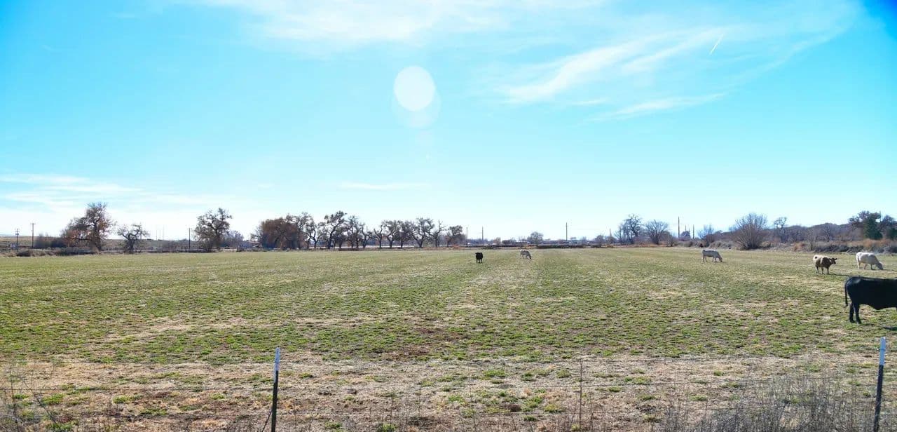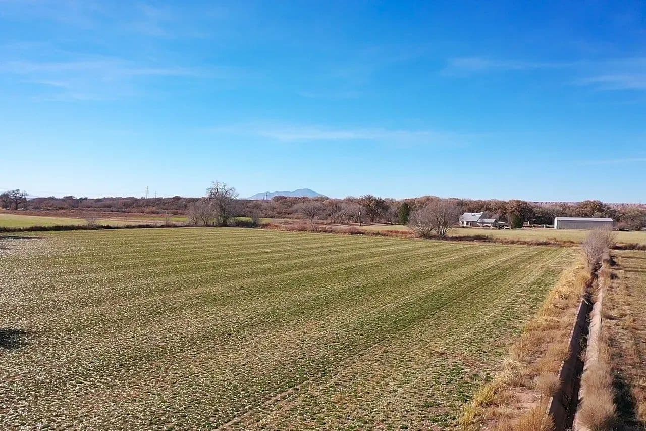 The Casa Colarada Farm sits at the southwest corner of State Highways 346 and 304 just a few minutes south of Belen, NM within the Rio Grande Valley. There are two productive fields, one 5 acre and one 10 acres. Both fields have been planted in Alfalfa for the past few years. Local farmers typically get 4 cuts per season. Irrigation water is provided by the Middle Rio Grande Conservancy District from April through October at the rate of $59 per acre watered. A concrete ditch services both fields. Currently the property is zoned Agricultural although having Highway frontage brings opportunity for commercial development as well.
