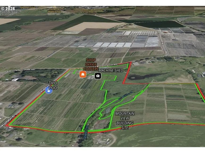 Proven, turnkey four-season cut flower nursery with a decades long record of profitability with established markets and consistent demand. Just over 46 acres featuring 34 acres of productive tillable ground planted into nursery stock and 10 additional acres leased for established peony production. TVID water rights in place. Located just outside Forest Grove city limits near Hillsboro. County suggests possible eligibility for a single-family residence. Multiple building sites offer stunning mountain views