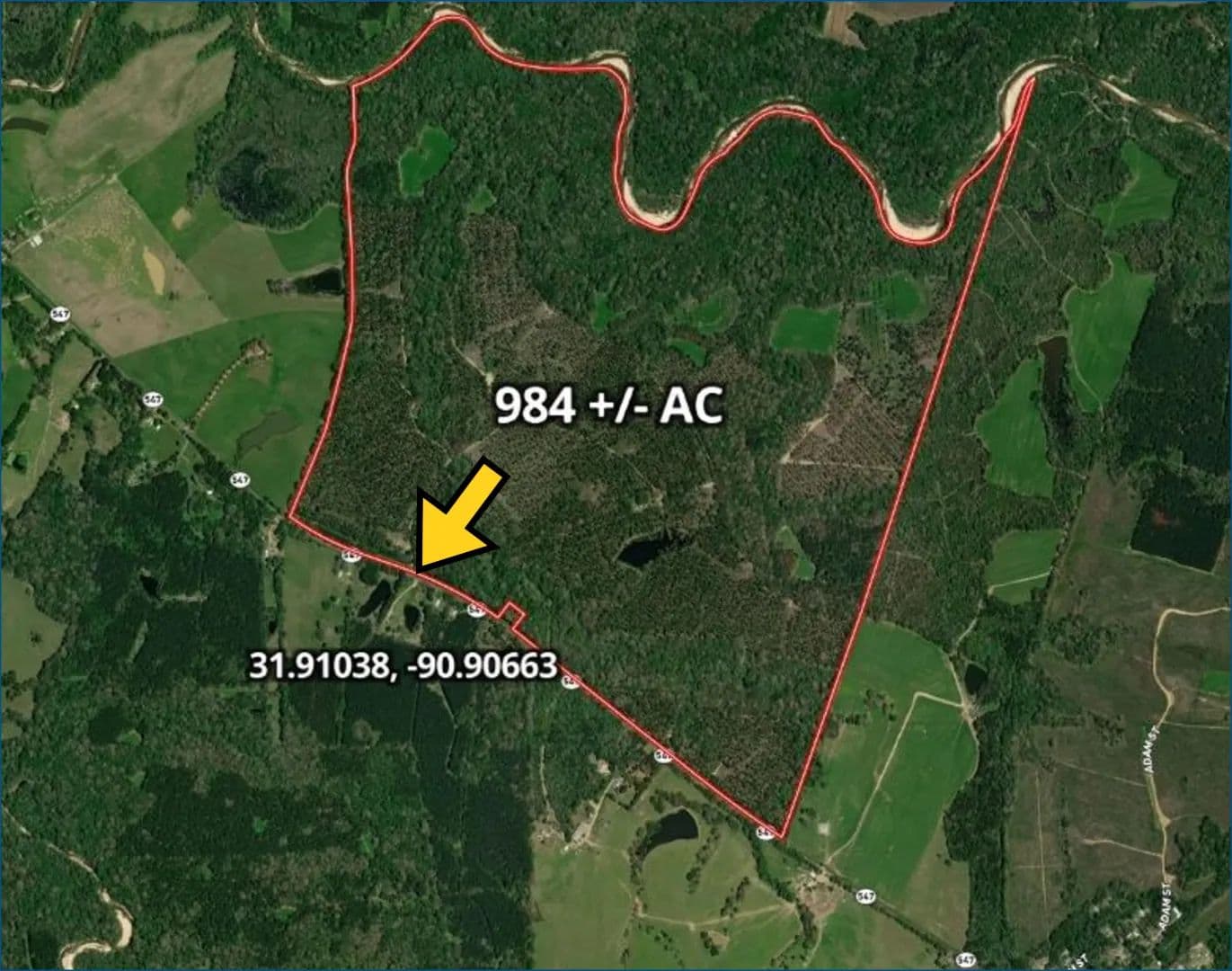 Welcome to this once in a lifetime legacy property that is a 984± acre tract located in the heart of Claiborne County, MS. With over 2.3 miles (12,150± feet) of river frontage along the Little Bayou Pierre and 1.25 miles of paved road frontage on Highway 547, this tract stands out as one of the most unique offerings in Southwest Mississippi.