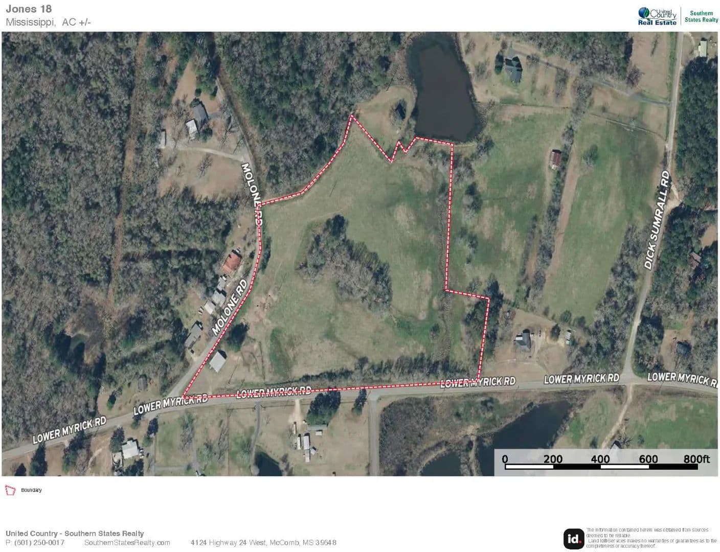 Welcome to the Jones 18 estate lot located just east of Laurel on Lower Myrick Rd. This lot is pastureland with frontage on Lower Myrick and Malone Rd. There is a brick building/shop at the entrance that could be used for multiple things. There are multiple homesites and a nice pond that is shared with the neighbors. The land is sloped well for drainage, and it's ready for its next owner. The lot could be divided into a 10-acre lot and a 7- acre lot. The possibilities with this property are endless. Call your favorite realtor and look at this one before it's gone.