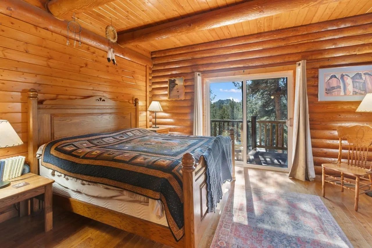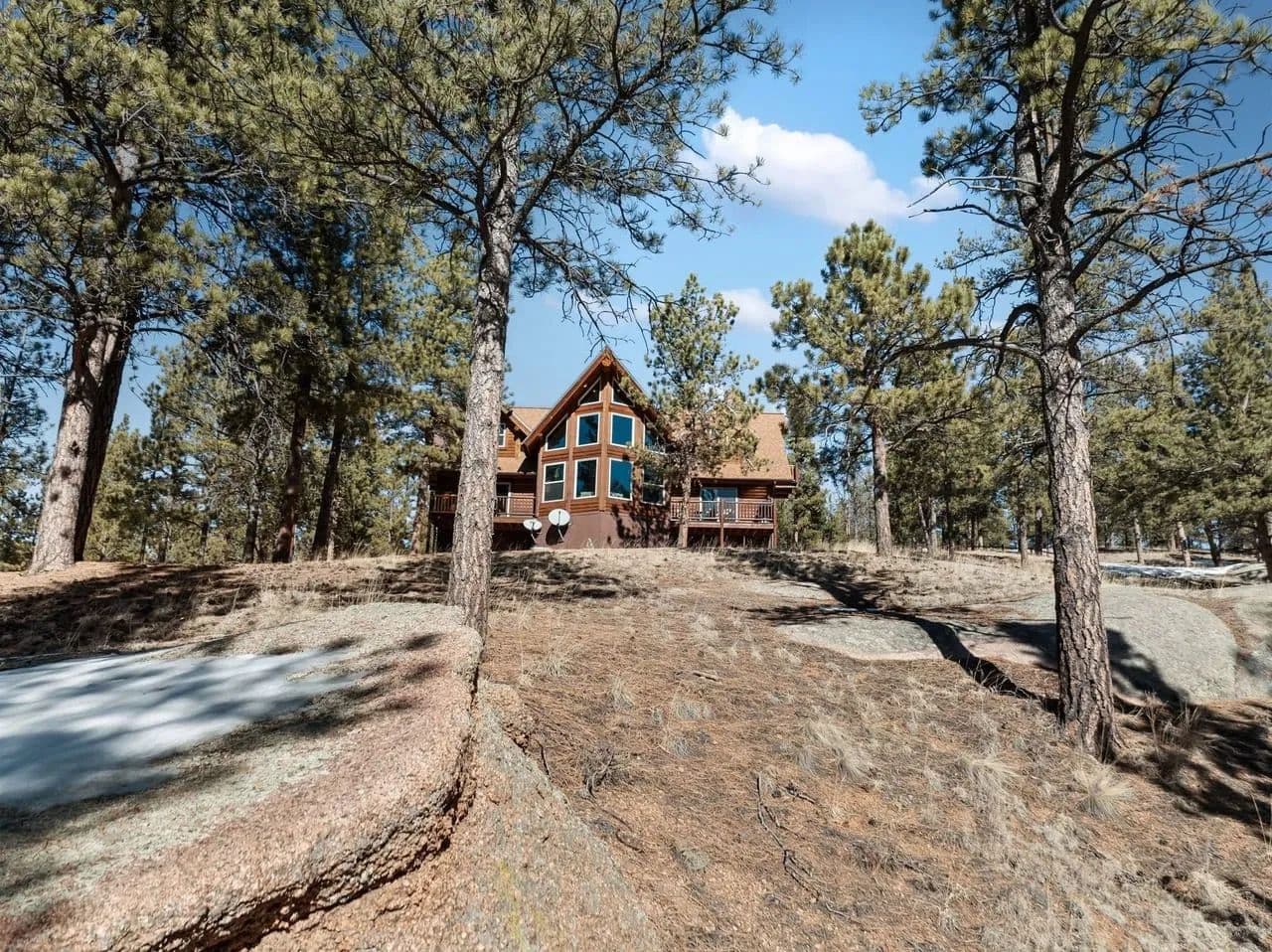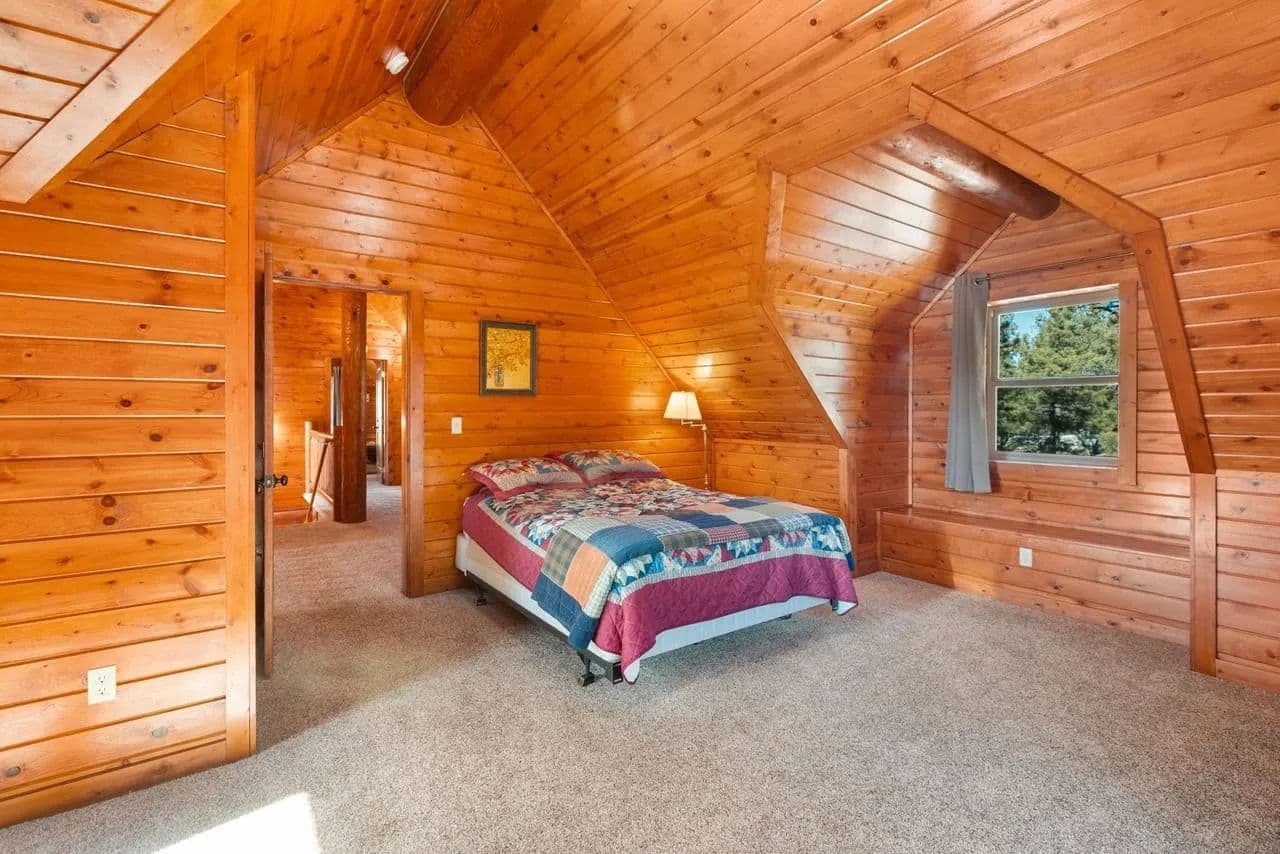 Beautiful turnkey log home on 5 plus acres. Hidden and nestled in the towering Ponderosa pines, quaking aspen and huge moss rock boulders throughout. Three bedroom, 2.5 baths. 2,476 square feet. High quality construction, vaulted ceilings, fireplace, hardwood floors and prow front. Well priced at $825,000.