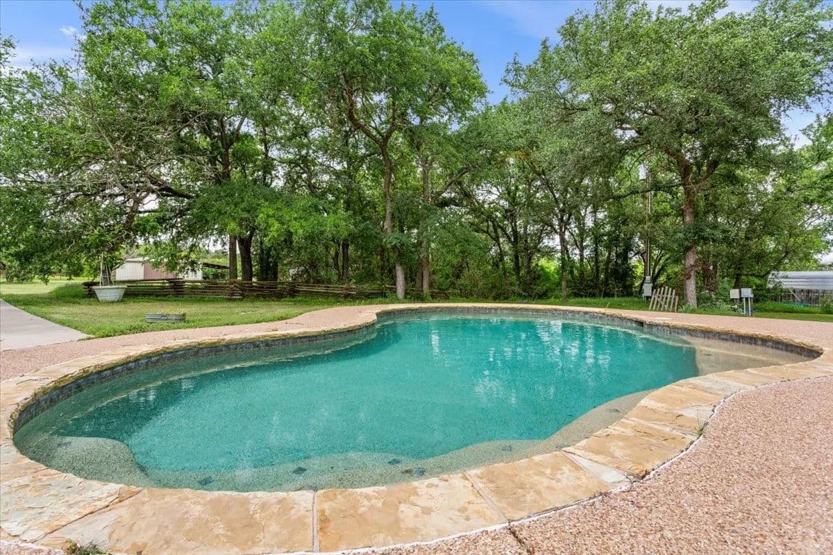 Don’t miss your chance to own a ranch that truly has it all. The 16.9 acre estate features a nicely appointed 3 bedroom 2.5 bath rock home with large primary suite on the ground floor. The property boasts an inground swimming pool, 1800sf 7 stall horse barn, 864sf two room shop with 480sf insulated garage and 384sf office with AC, and 3 identical 400sf metal open concept cabins with full bathrooms and heat and air. The land features a lovely open sandy loam field with gorgeous oak trees and abundant tree cover surrounding the property and the beautiful rock bottom Sand Branch creek. Wildlife including deer and turkey are abundant. This property is just a short drive down a county maintained road off Hwy 281. Income producing opportunities including an equestrian Airbnb or horse motel, or even a wedding venue. The ranch is centrally located between Austin and DFW. Bring your family, livestock and entrepreneurial spirit and make this ranch your home in the central Texas hill country.