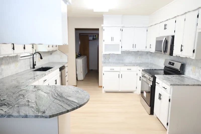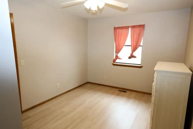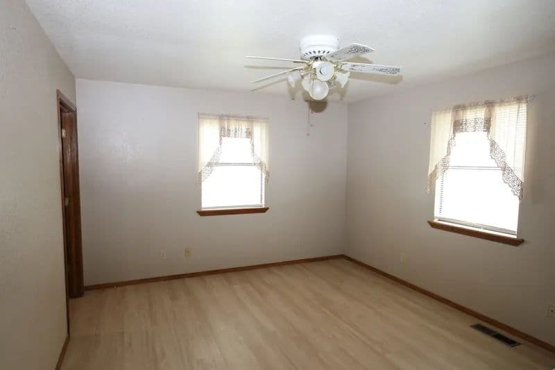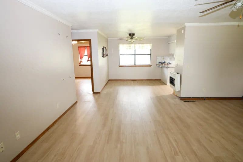 The house sits back off of the paved county road. The land is fairly level, all open and in good grass. The four acres gives you some elbow room as well as the options to raise your own vegetables, chickens, or livestock.