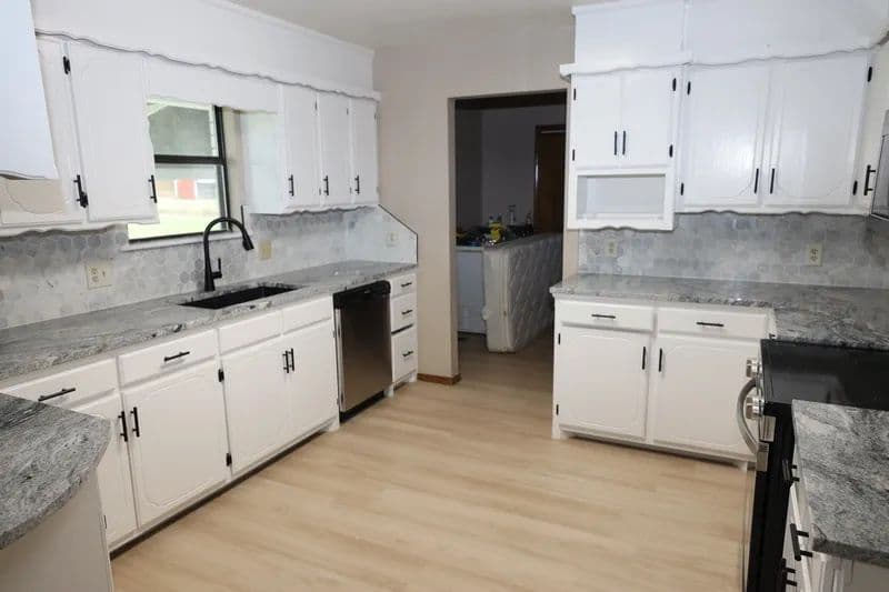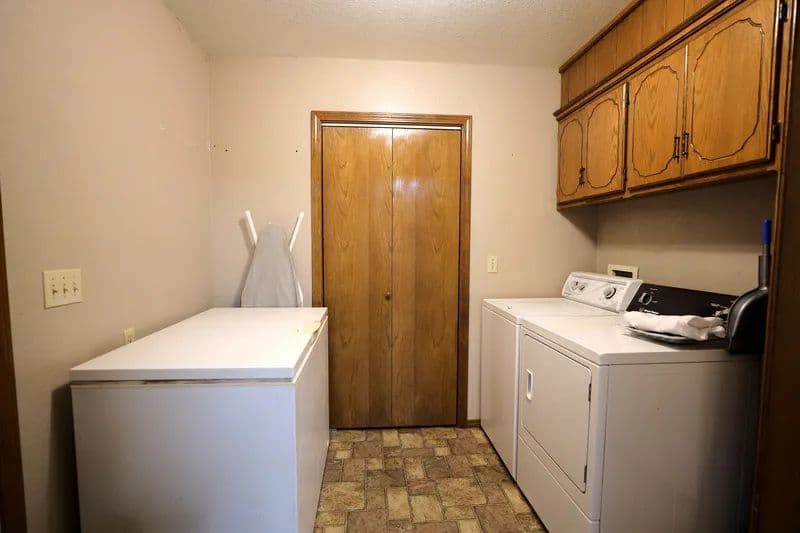 Located just one-half mile from Eufaula Lake the property features a three-bedroom two-bathroom brick home. The home contains about 1568 square feet of living space plus a two-car attached garage. The main bedroom has a walk-in closet and full bathroom. There is a laundry room with upper cabinets, pantry, and room for a chest freezer. The house also has a covered patio for outdoor living options. A new metal roof and exterior paint were completed within the last three months along with several other upgrades throughout the home. Central heat and air with a backup propane space heater provides year around comfort. A propane tank provides gas for the cookstove and backup propane space heater.