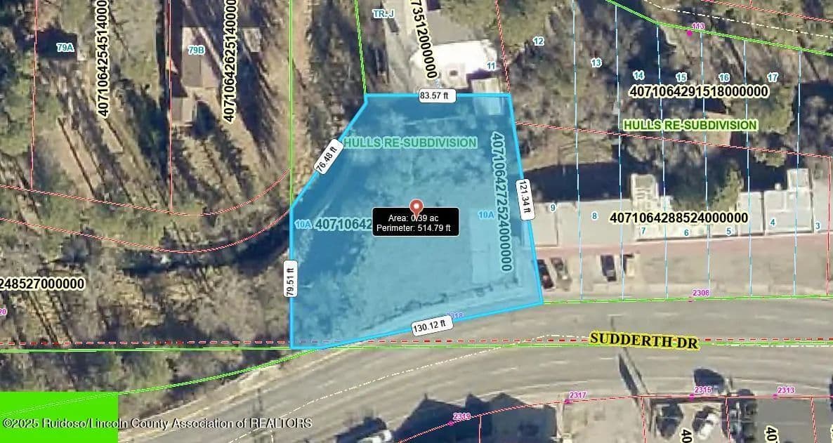 Prime .3-acre commercial lot zoned C2 located on high-traffic Sudderth Dr in the heart of Ruidoso, NM. This rare, flat and build-ready property sits along the scenic riverfront, offering both high visibility and serene natural beauty--perfect for retail, dining, or office development. The riverfront was professionally reconstructed by the Army Corps of Engineers in 2008 and has remained unaffected by recent flooding. A mature apple tree adds charm and character to this highly desirable site. With excellent frontage and utilities nearby, this is a standout opportunity in one of Ruidoso's most sought-after commercial corridors. Don't miss your chance to invest in a location with unbeatable potential!