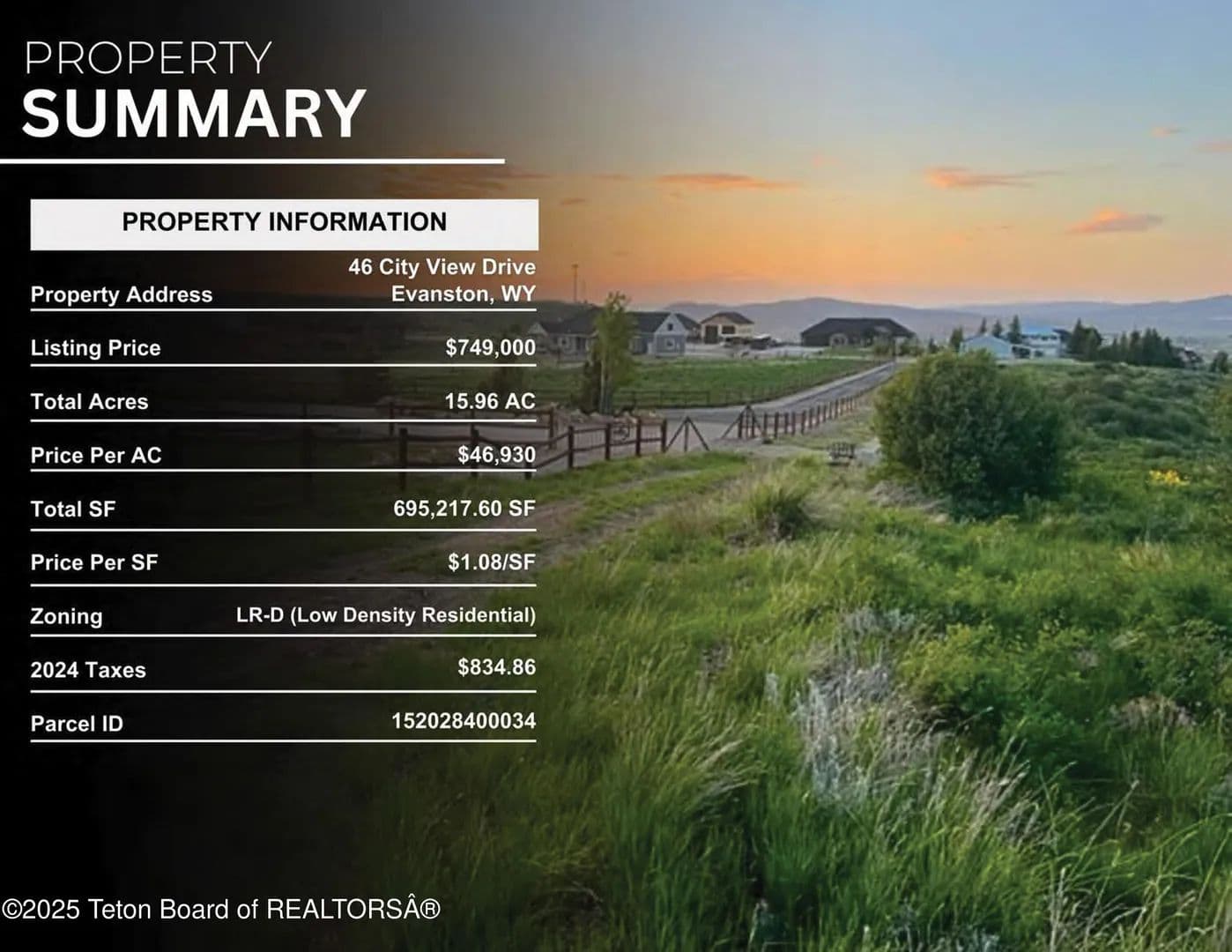 This 15.96-acre residential land in Evanston, Wyoming, offers an exceptional development opportunity with the potential for substantial returns.